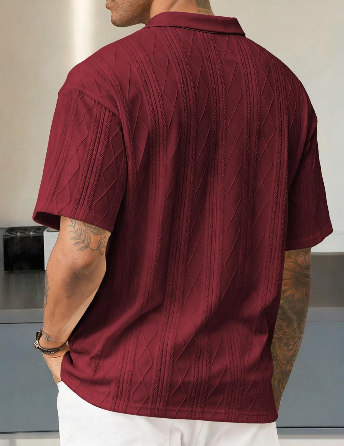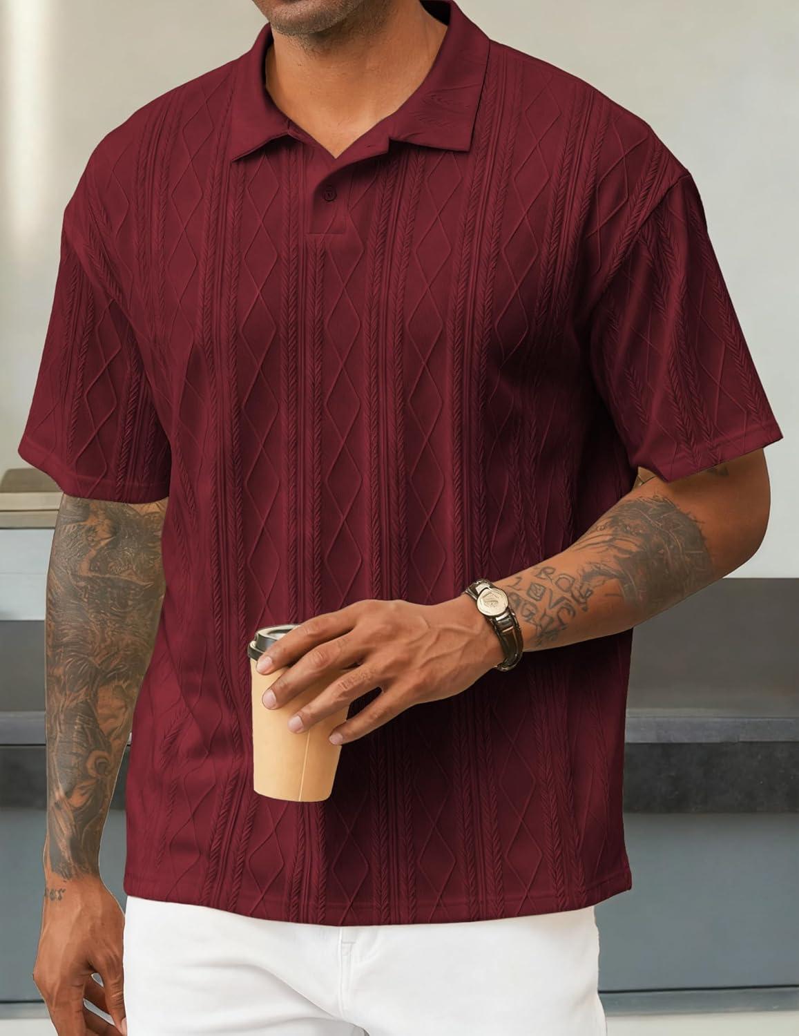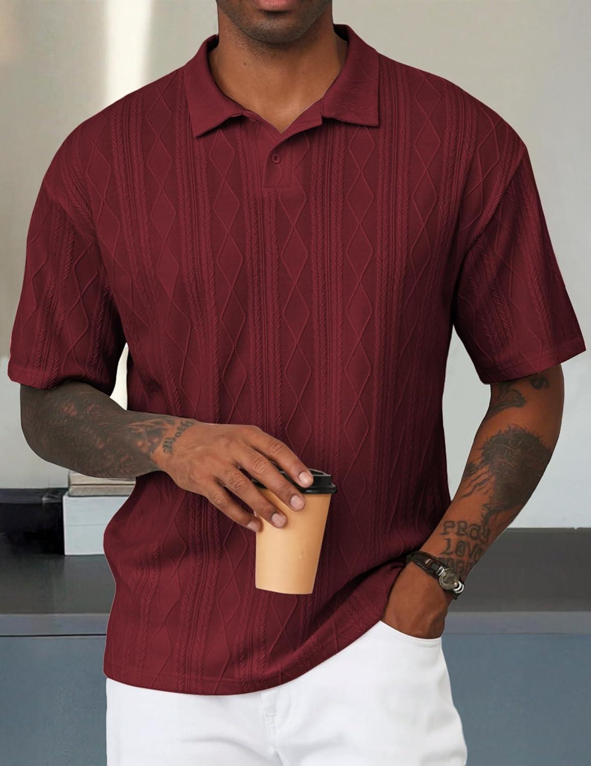JMIERR Mens Polo Shirt Knit Button Casual Short Sleeve Summer Vacation Beach Stretchy Golf Shirts(Red)