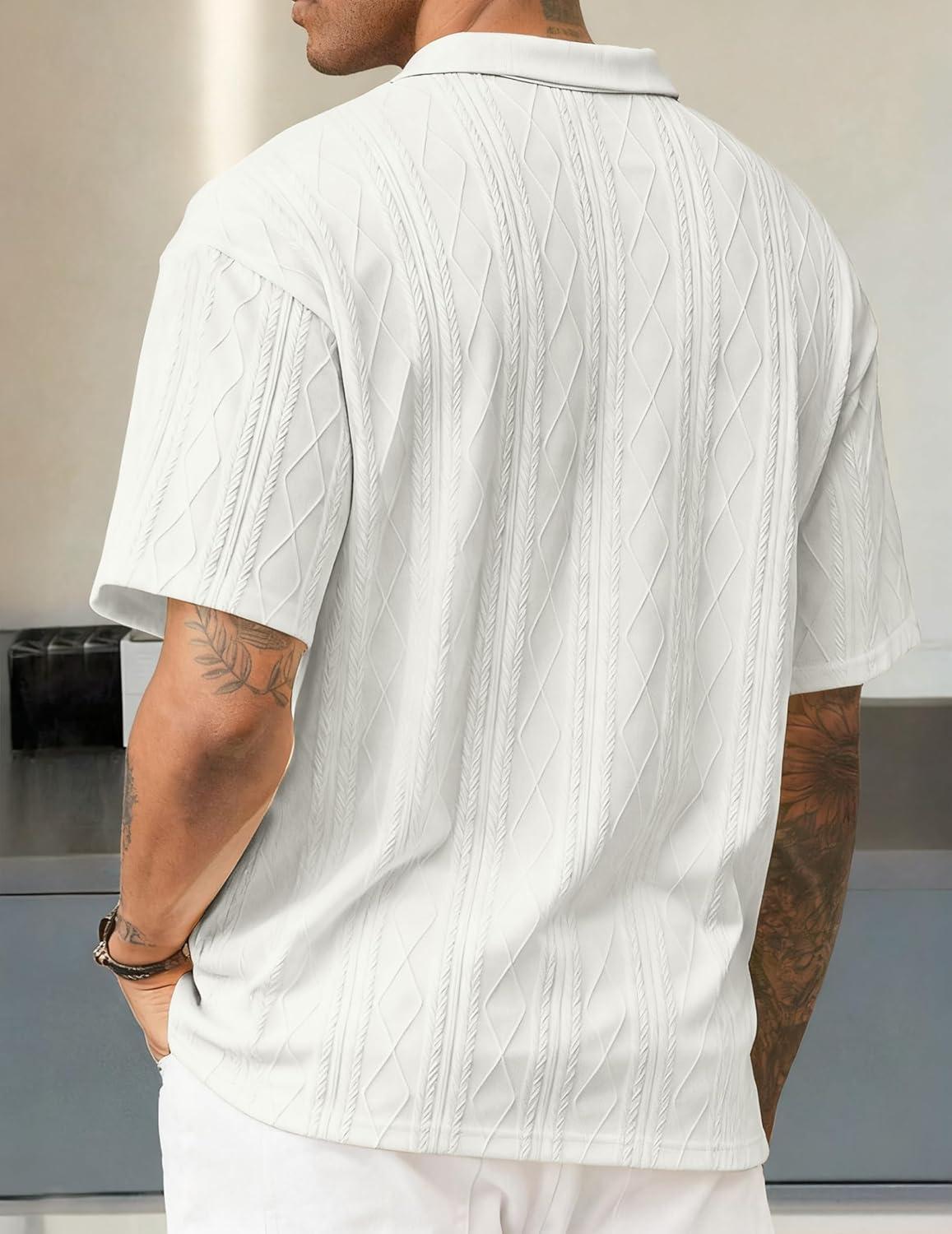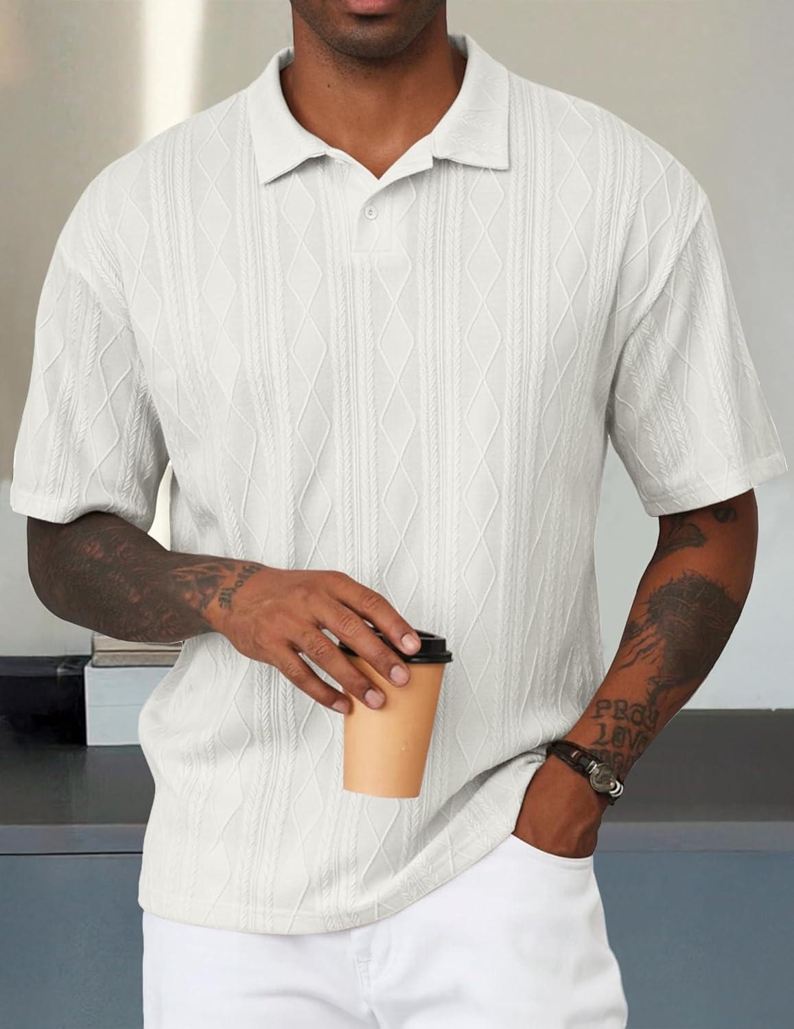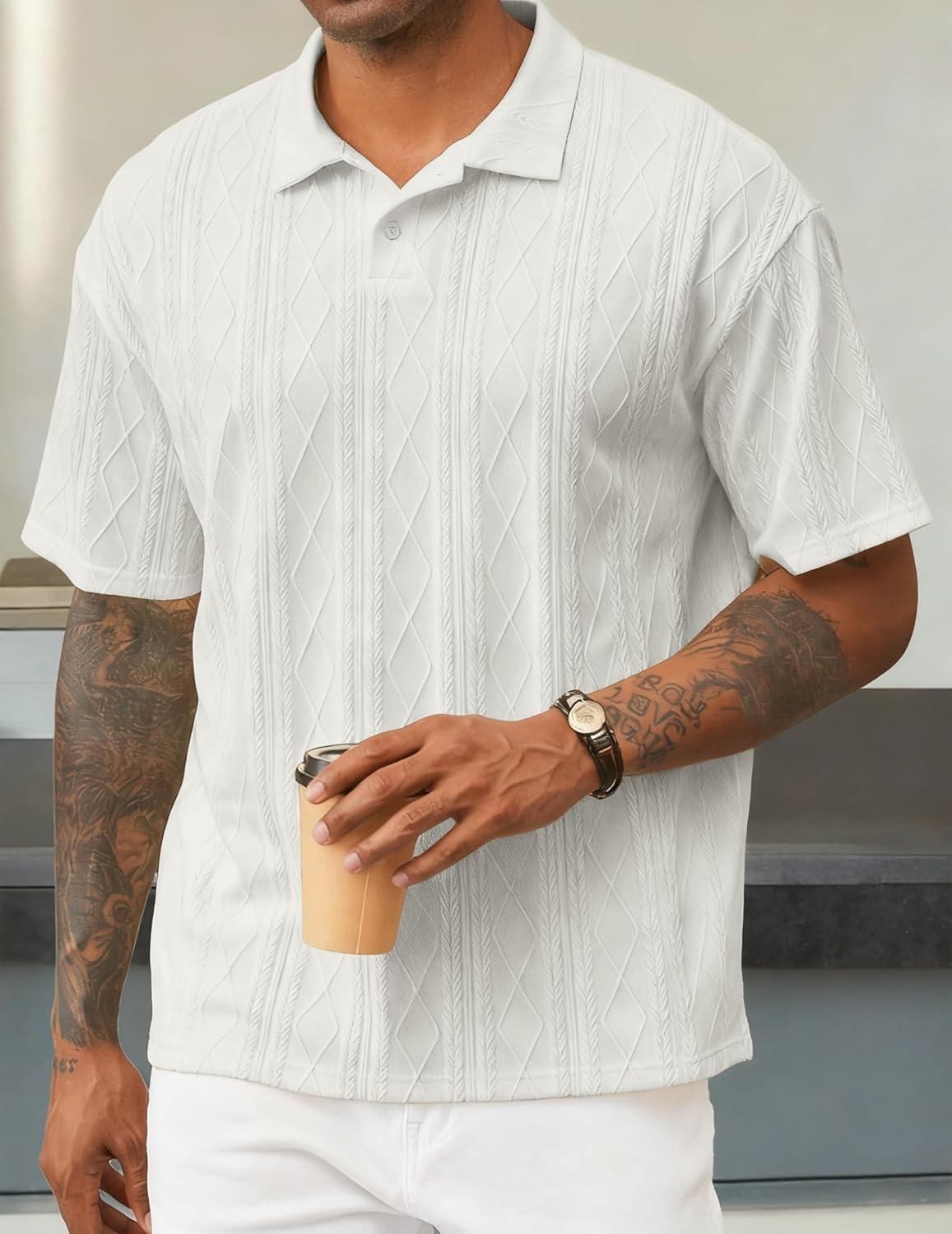 JMIERR Mens Polo Shirt Knit Button Casual Short Sleeve Summer Vacation Beach Stretchy Golf Shirts(White)