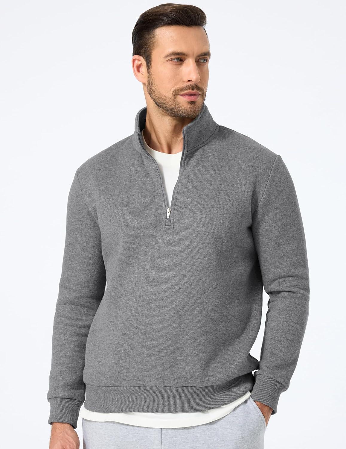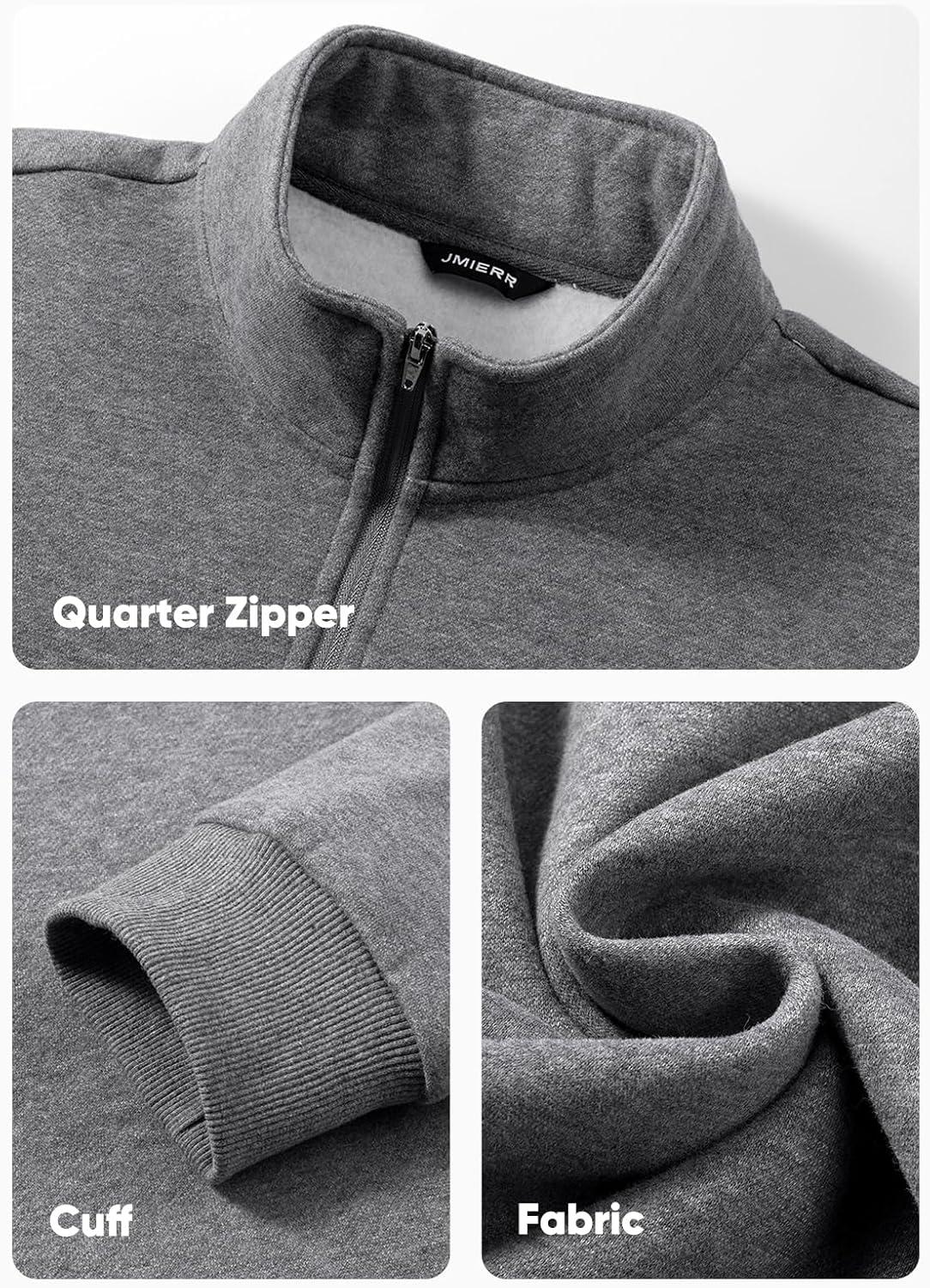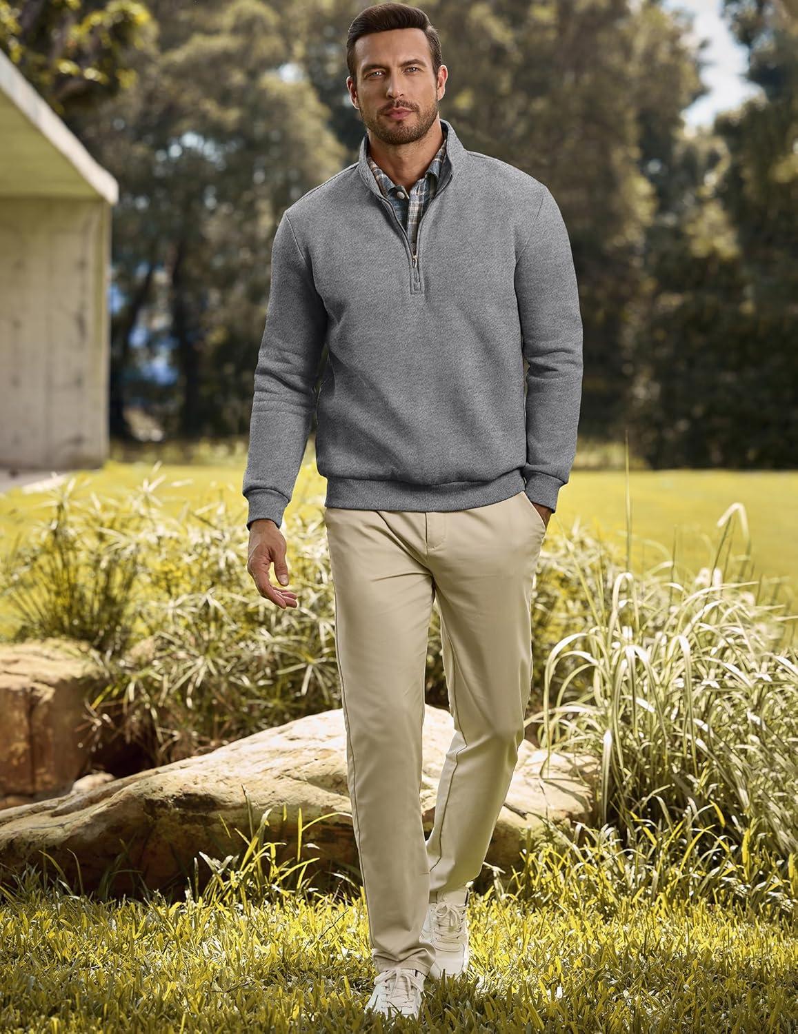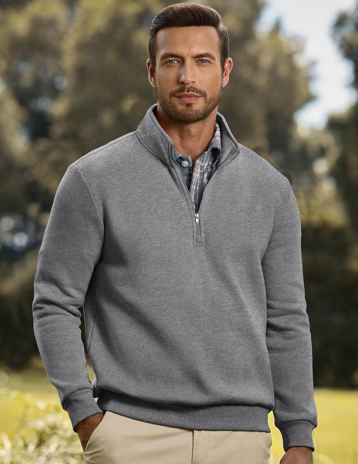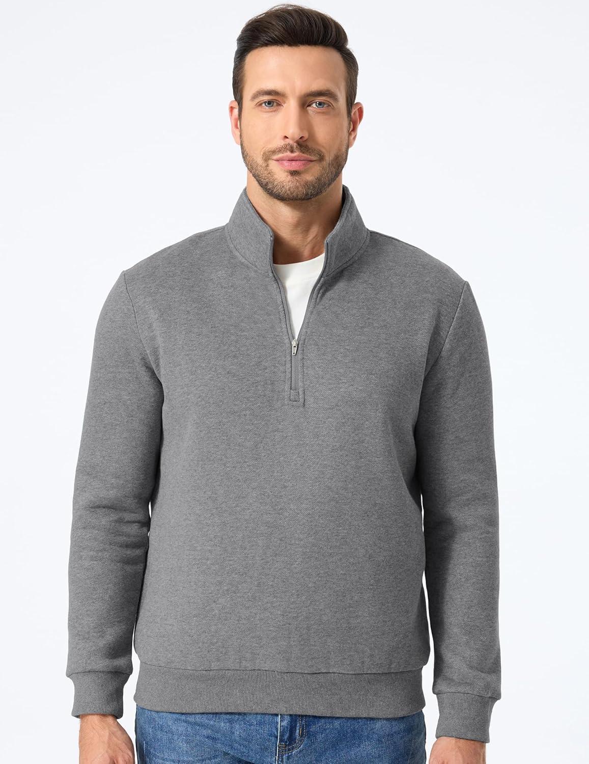 JMIERR Mens Quarter Zip Pullover Polo Sweater Mock Neck Long Sleeve Lightweight Fleece Sweatshirts(Medium Grey)