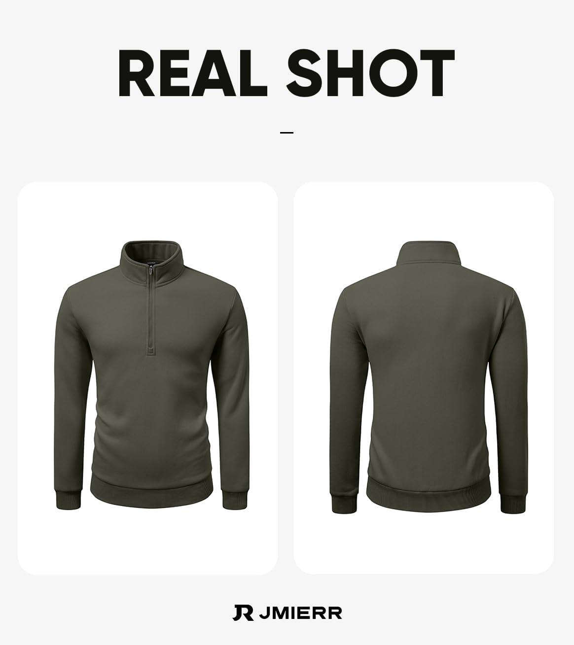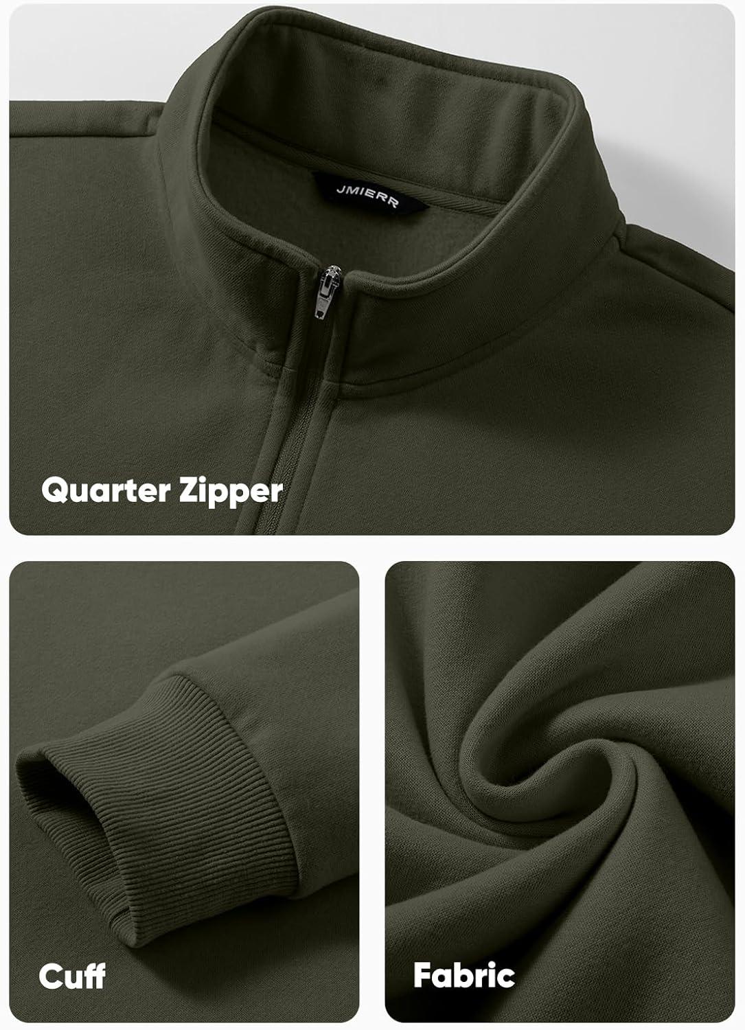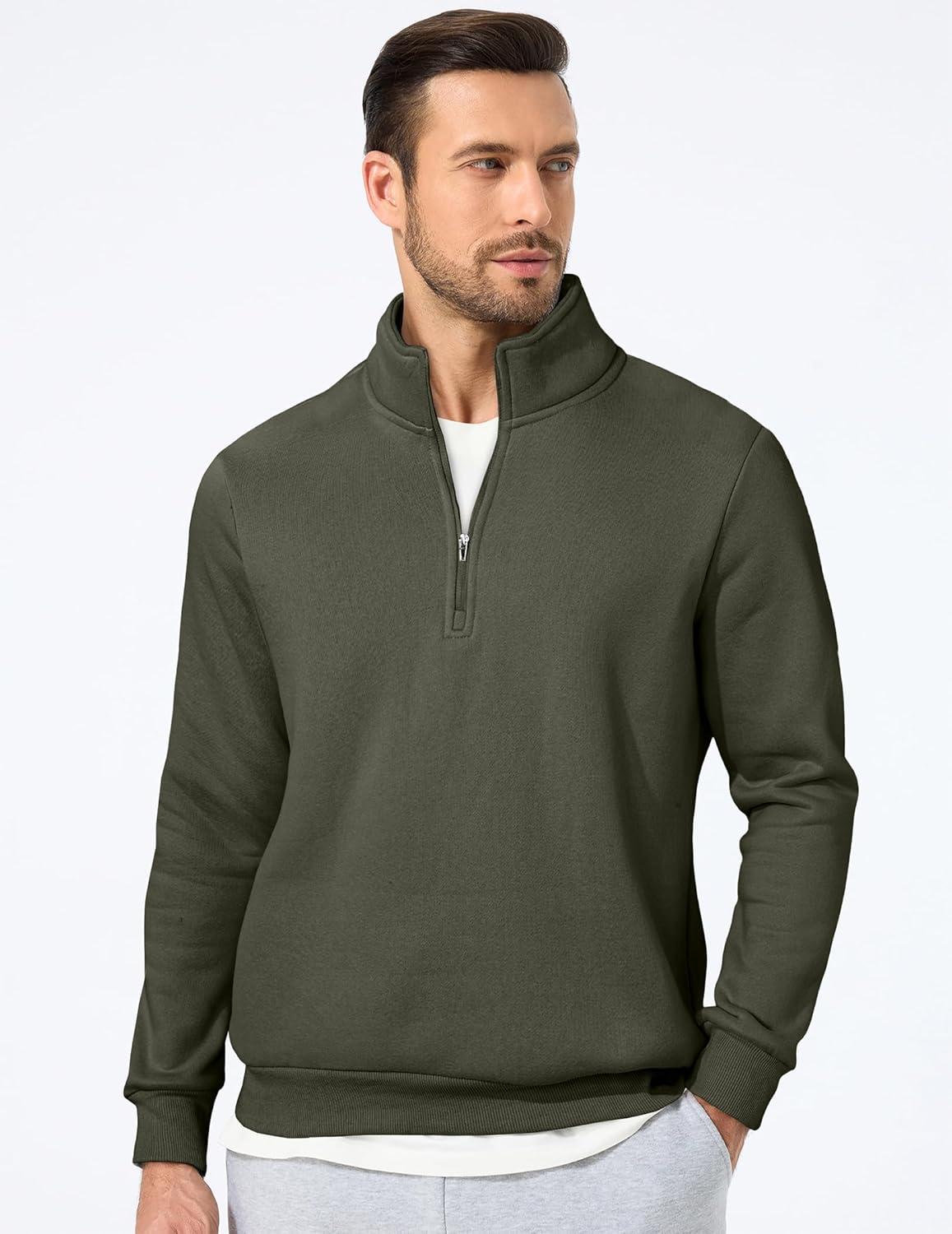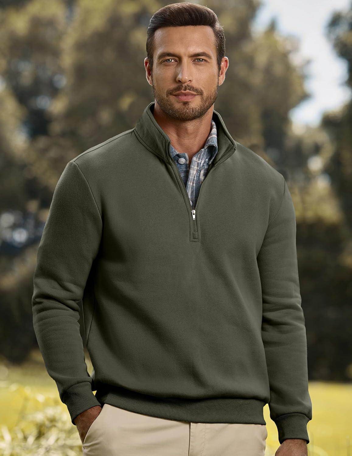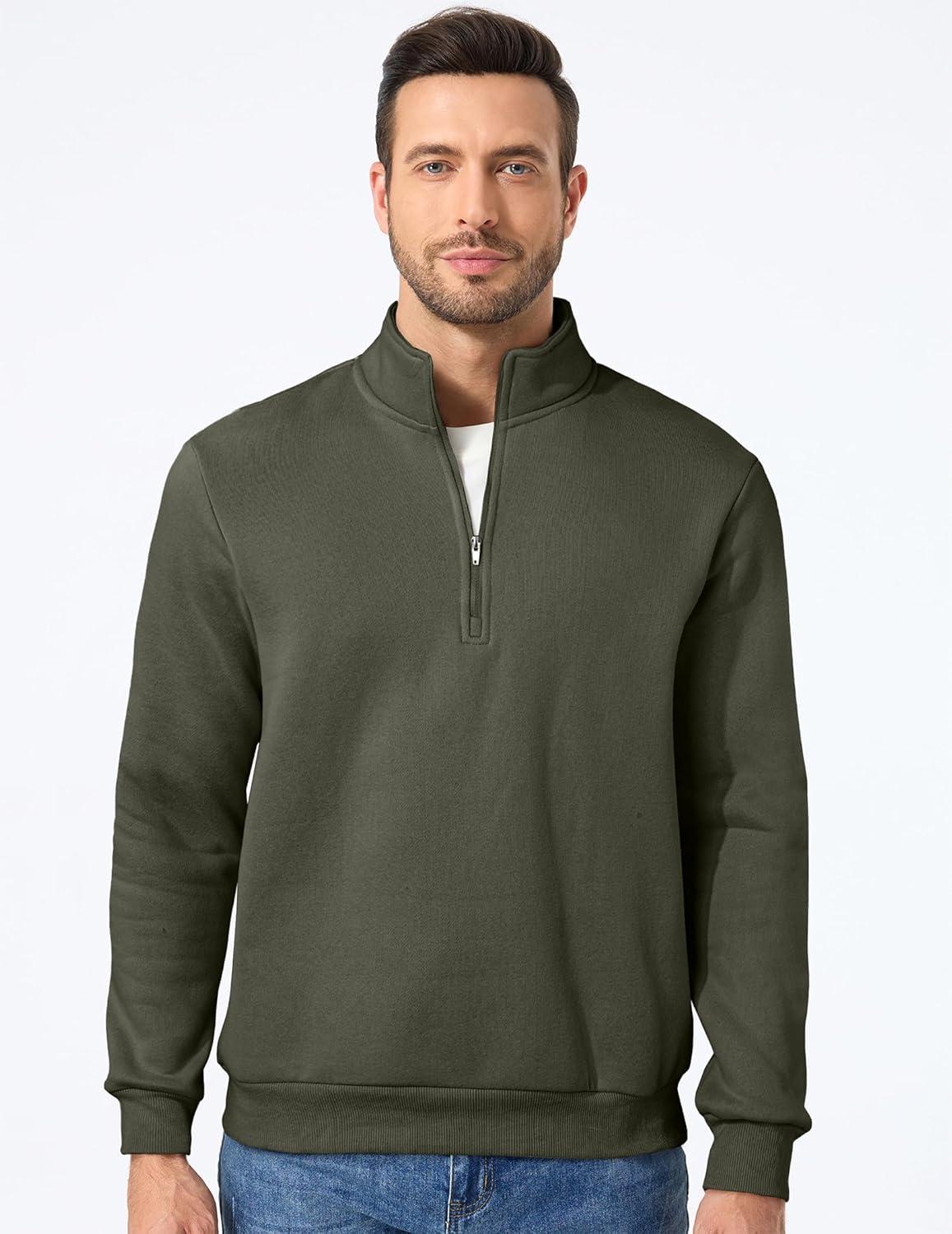 JMIERR Mens Quarter Zip Pullover Polo Sweater Mock Neck Long Sleeve Lightweight Fleece Sweatshirts(Moss Green)