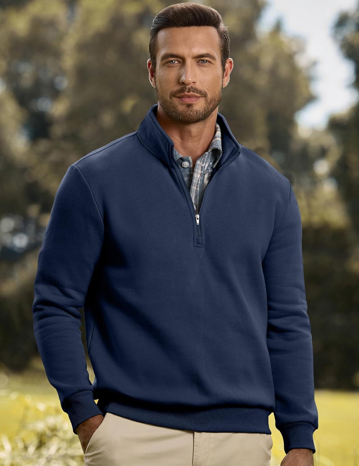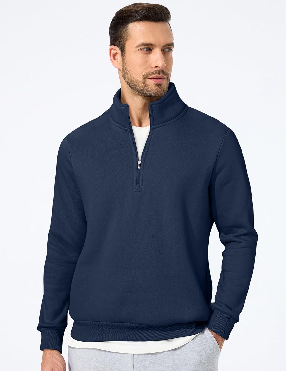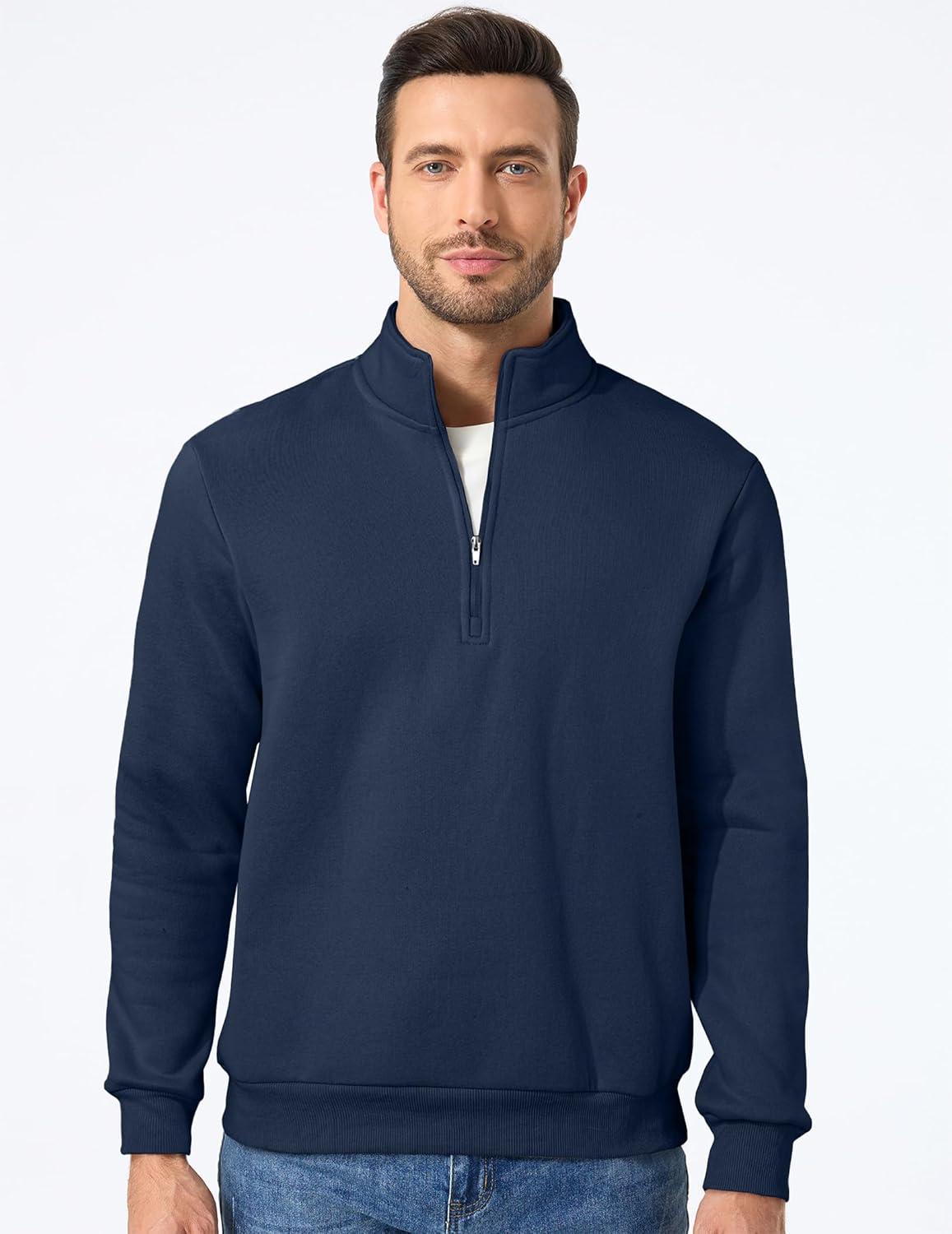 JMIERR Mens Quarter Zip Pullover Polo Sweater Mock Neck Long Sleeve Lightweight Fleece Sweatshirts(Navy Blue)