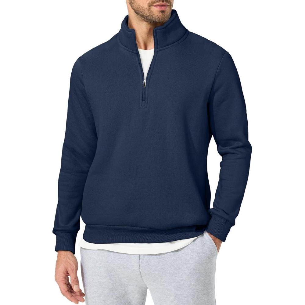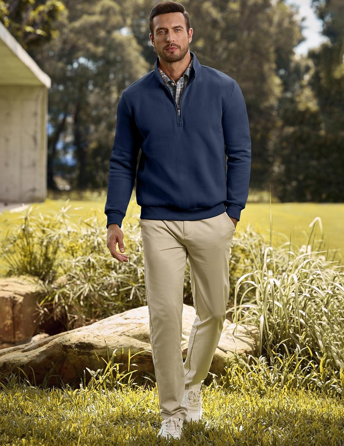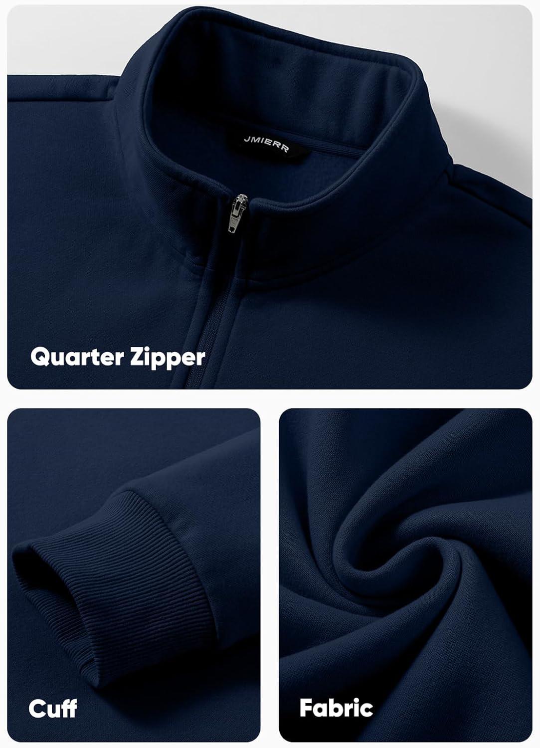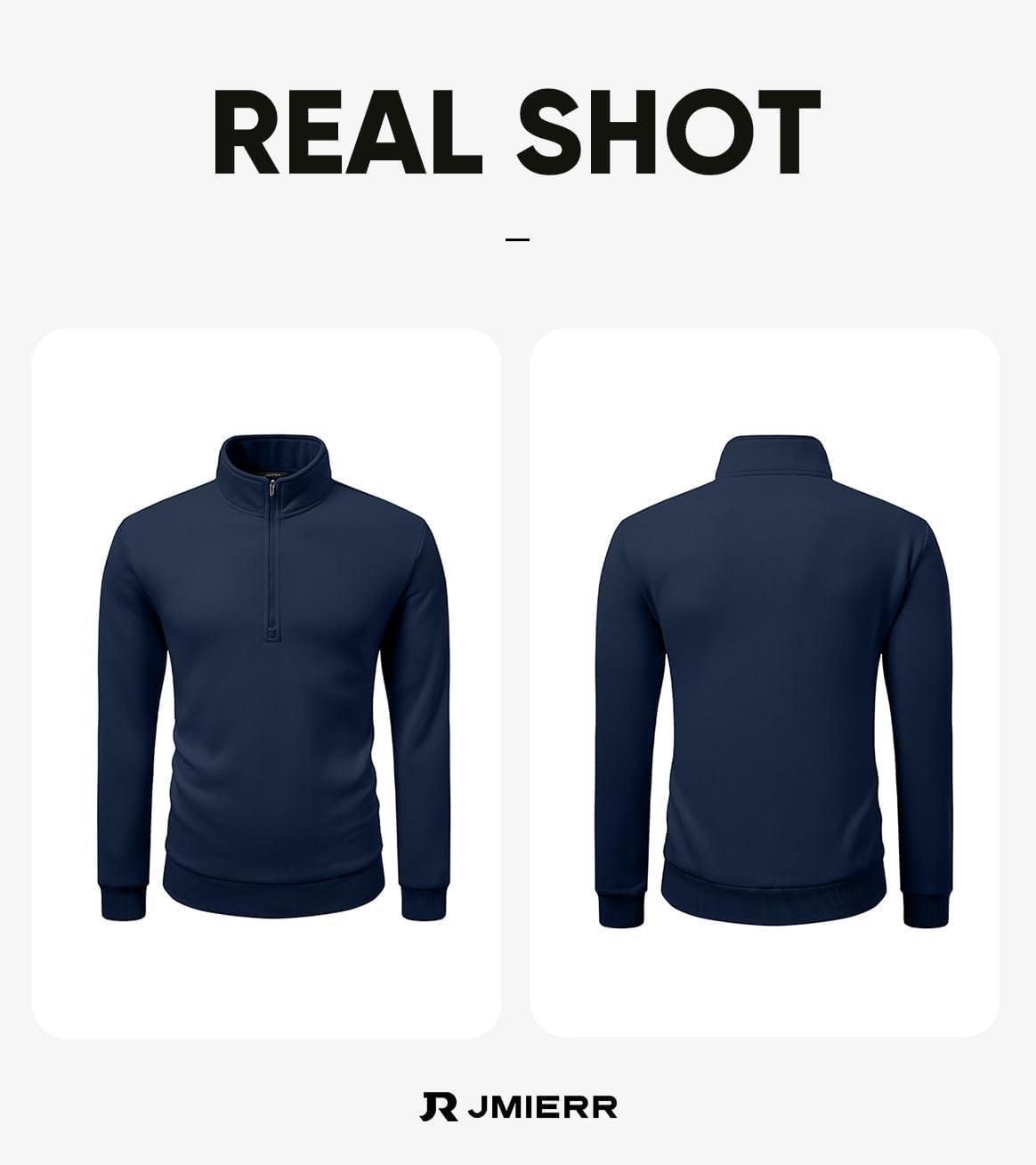 JMIERR Mens Quarter Zip Pullover Polo Sweater Mock Neck Long Sleeve Lightweight Fleece Sweatshirts(Navy Blue)