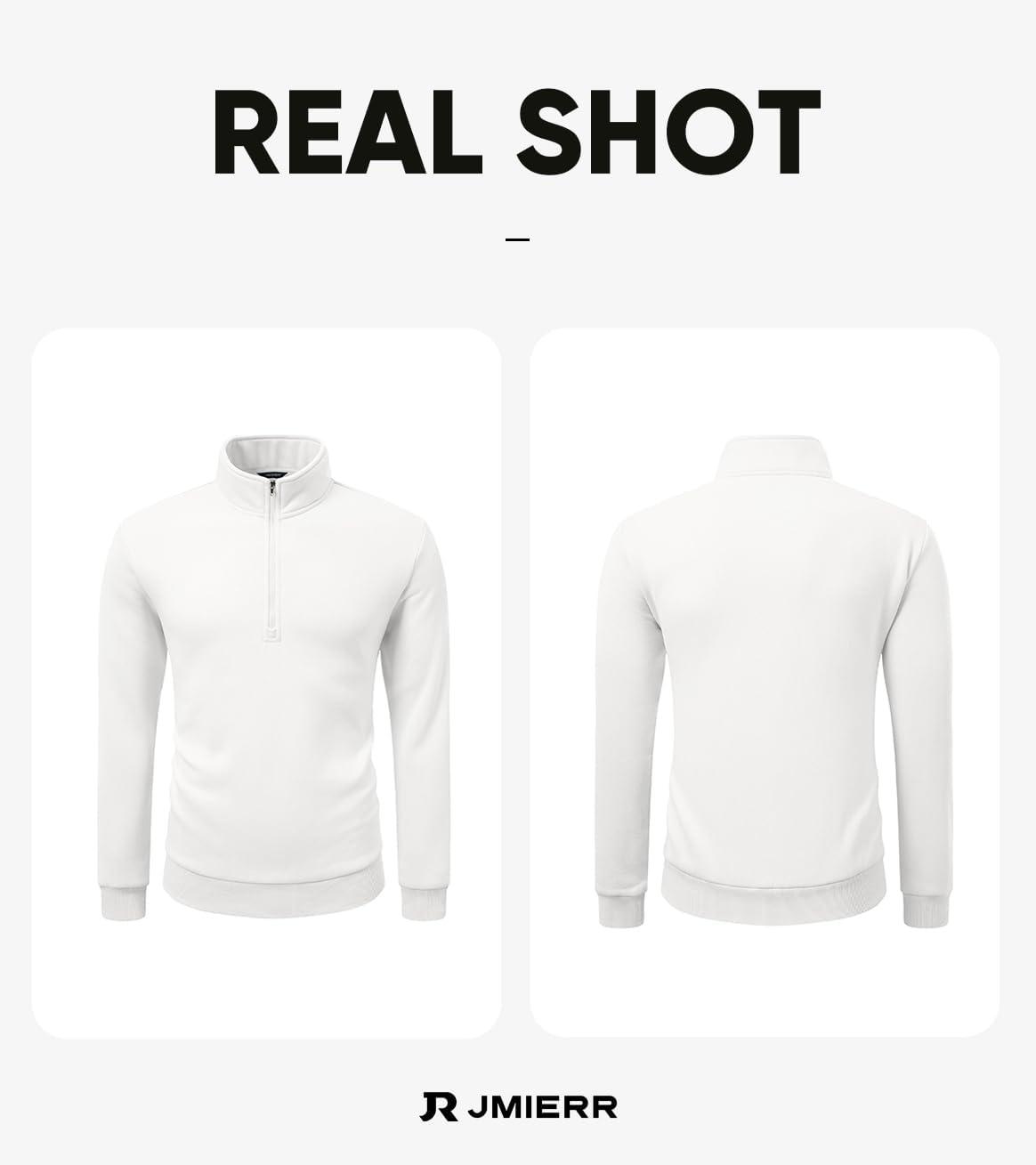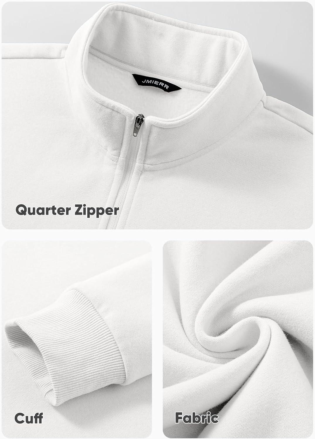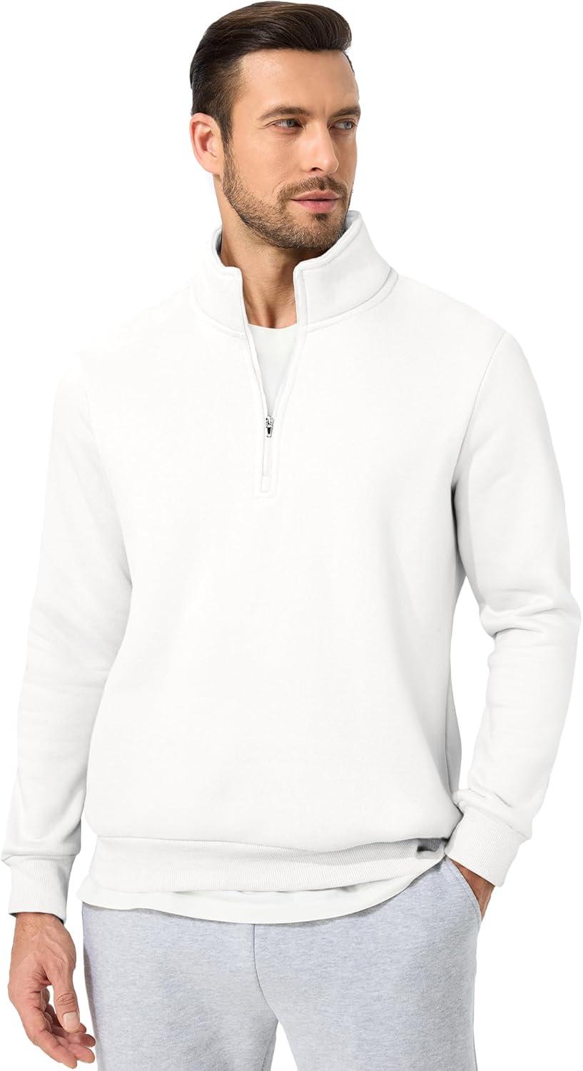 JMIERR Mens Quarter Zip Pullover Polo Sweater Mock Neck Long Sleeve Lightweight Fleece Sweatshirts(White)