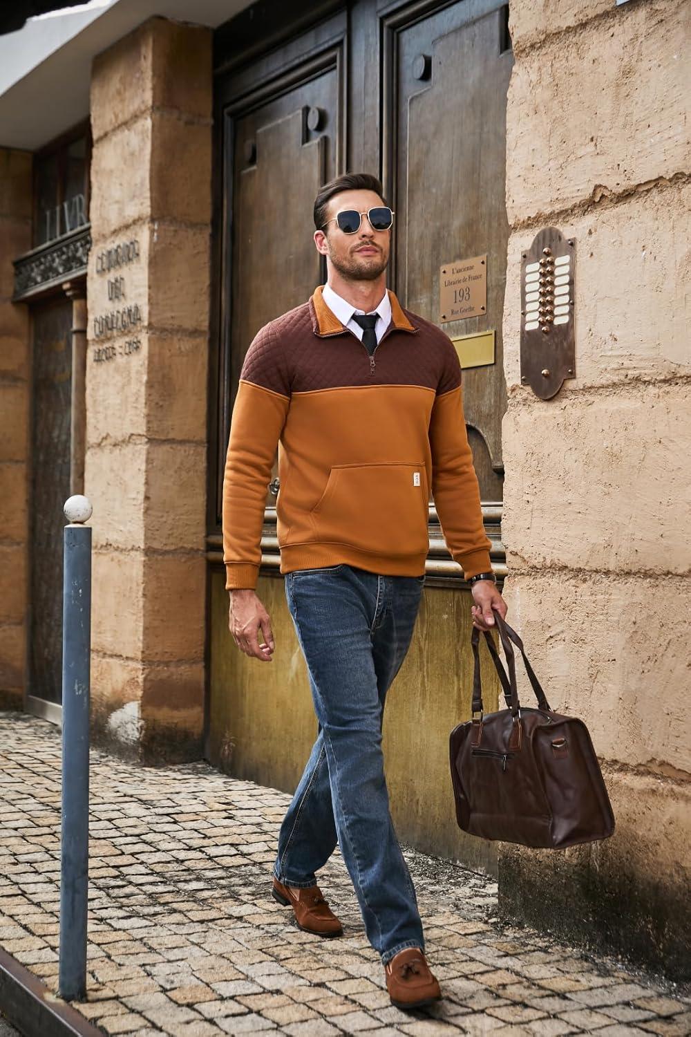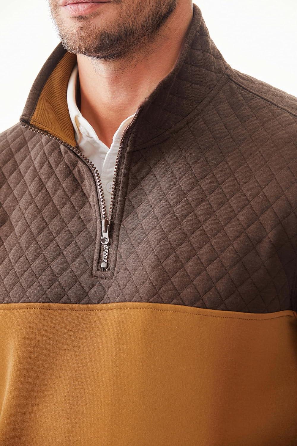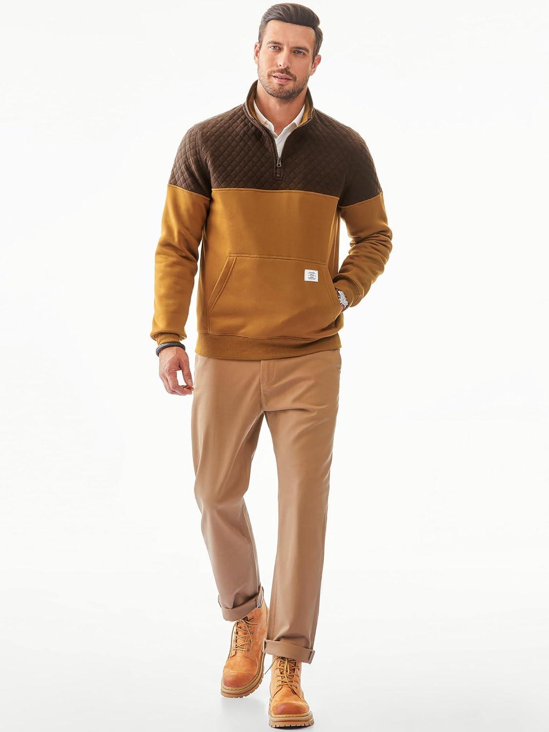 JMIERR Men’s Quarter Zip Pullover Quilted Sweatshirt Pullover Long Sleeve Stand Collar Sweater Color Block Sweatshirt(04 Camel)