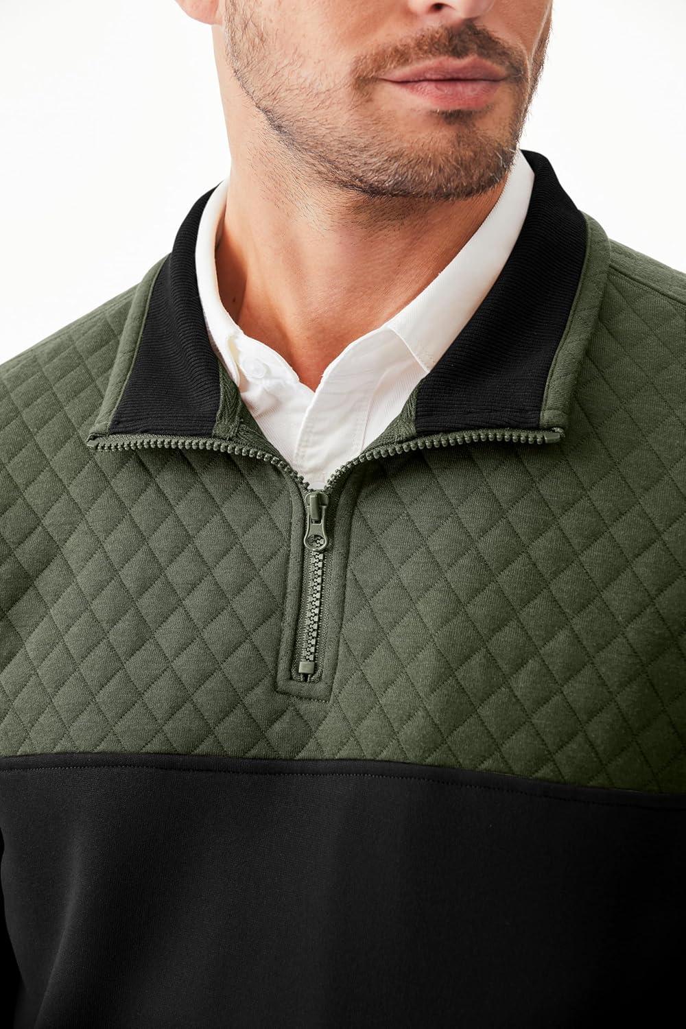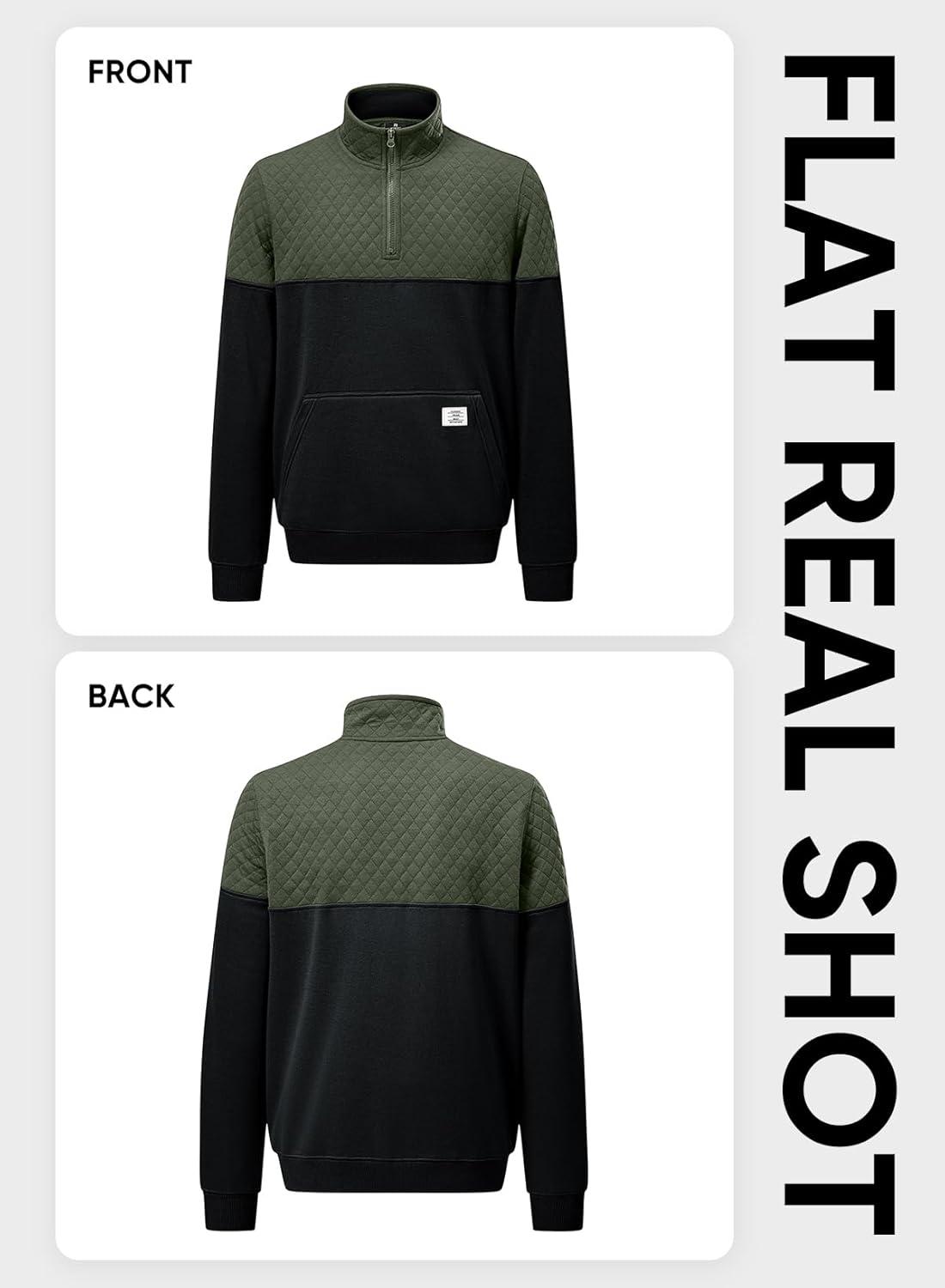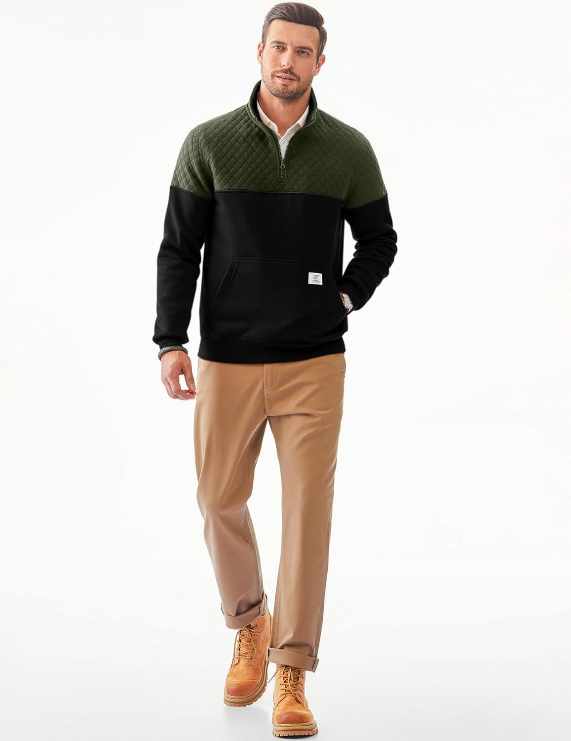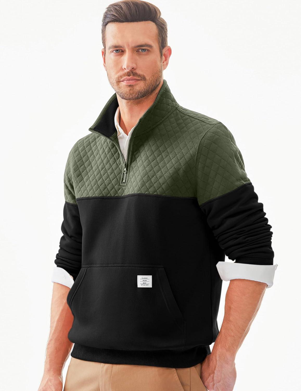 JMIERR Men’s Quarter Zip Pullover Quilted Sweatshirt Pullover Long Sleeve Stand Collar Sweater Color Block Sweatshirt(Black)