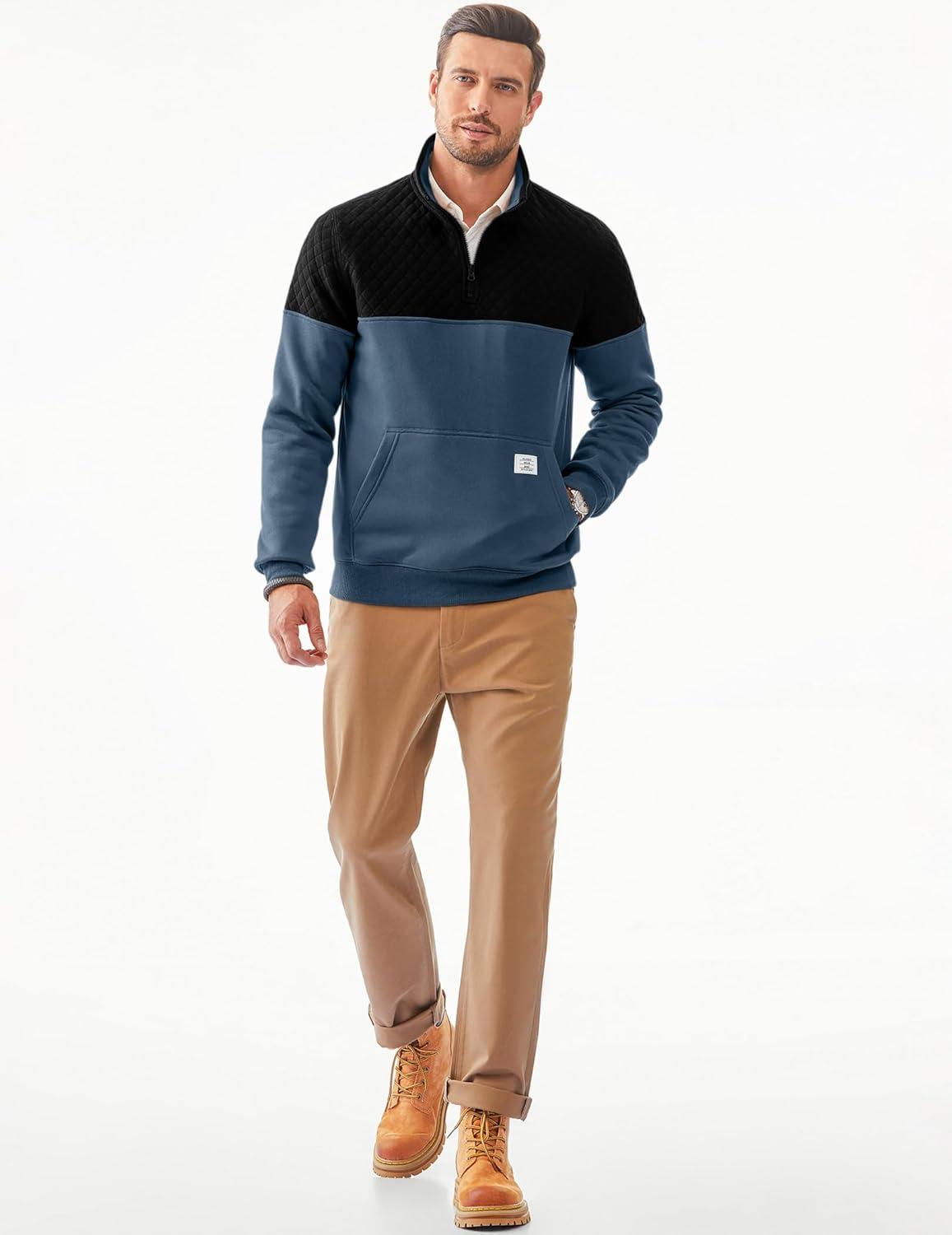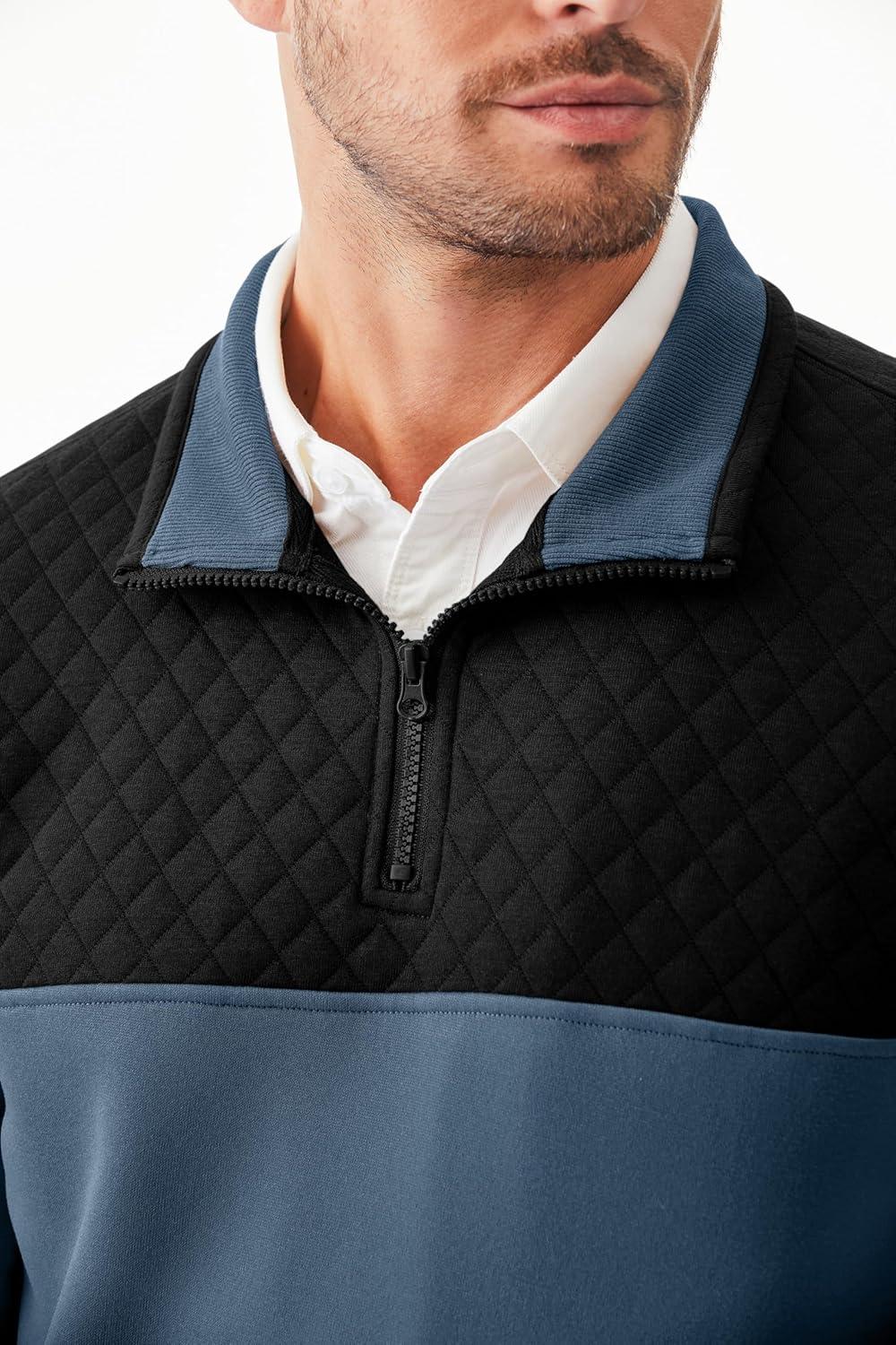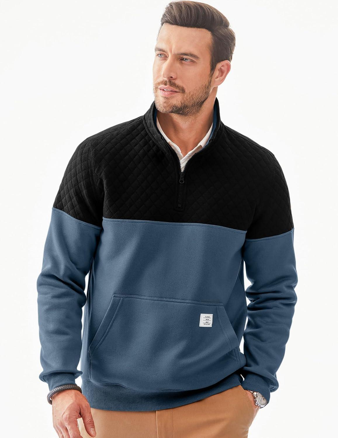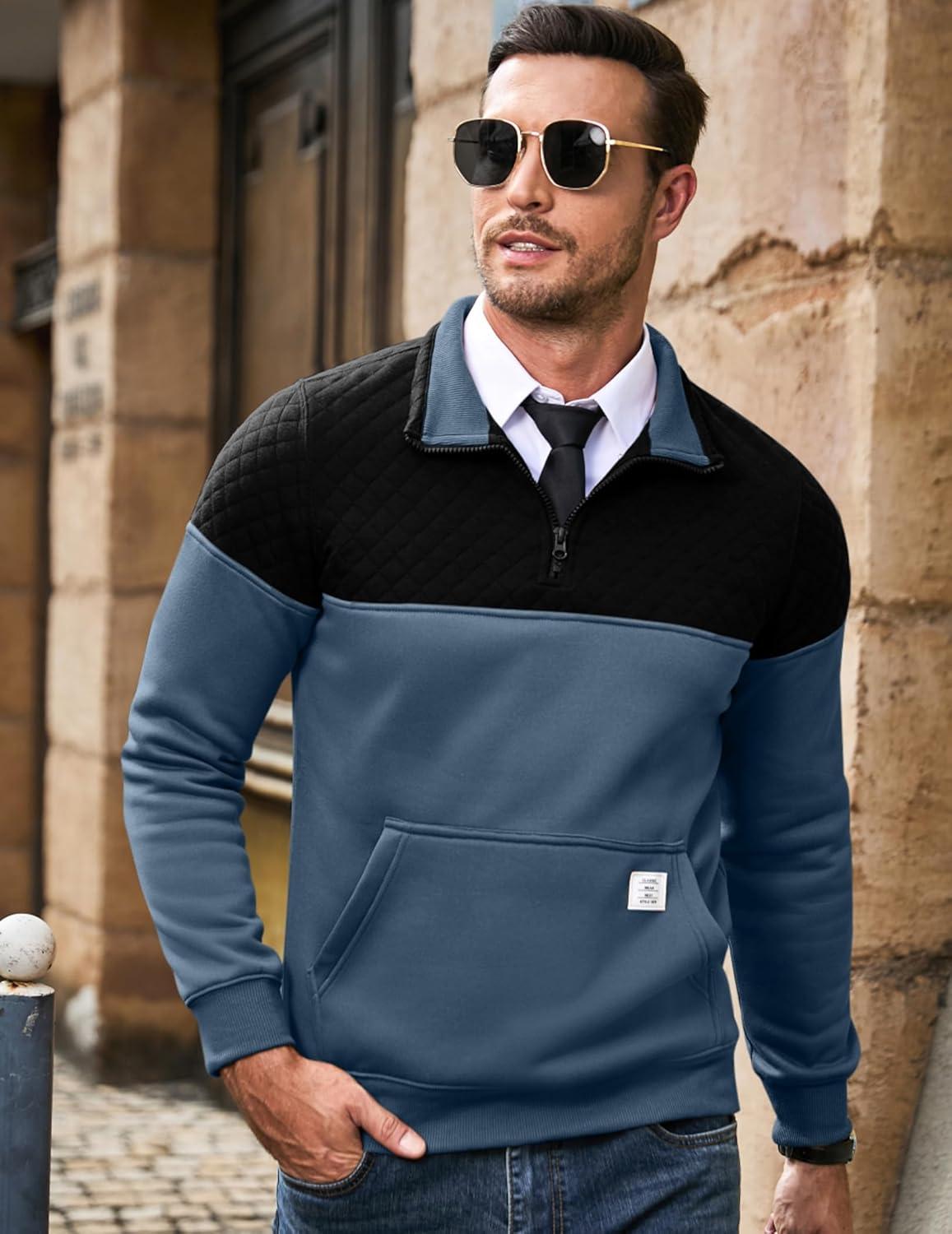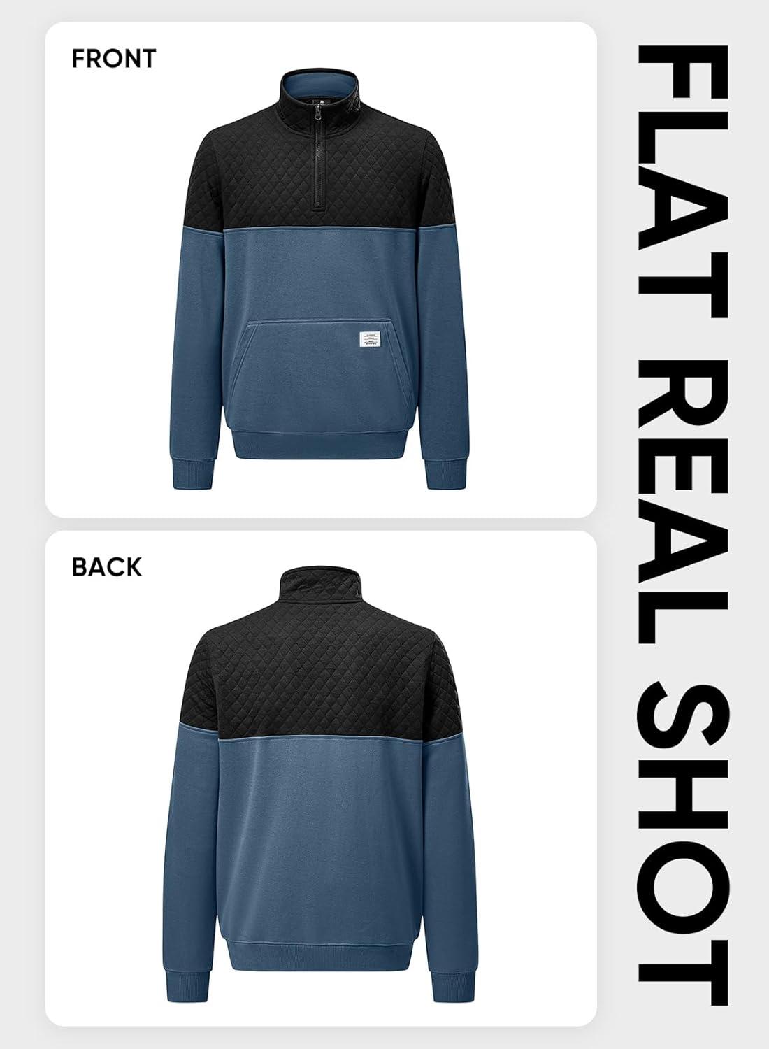 JMIERR Men’s Quarter Zip Pullover Quilted Sweatshirt Pullover Long Sleeve Stand Collar Sweater Color Block Sweatshirt(Light Gray Blue)