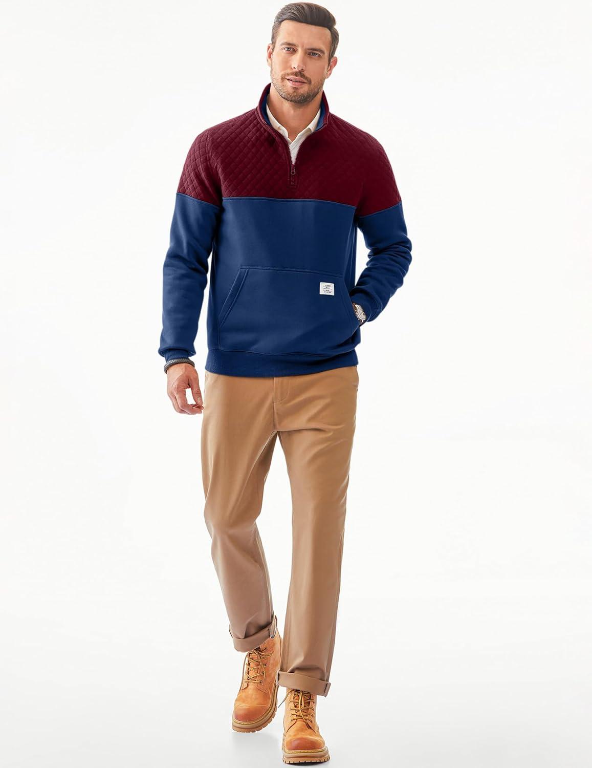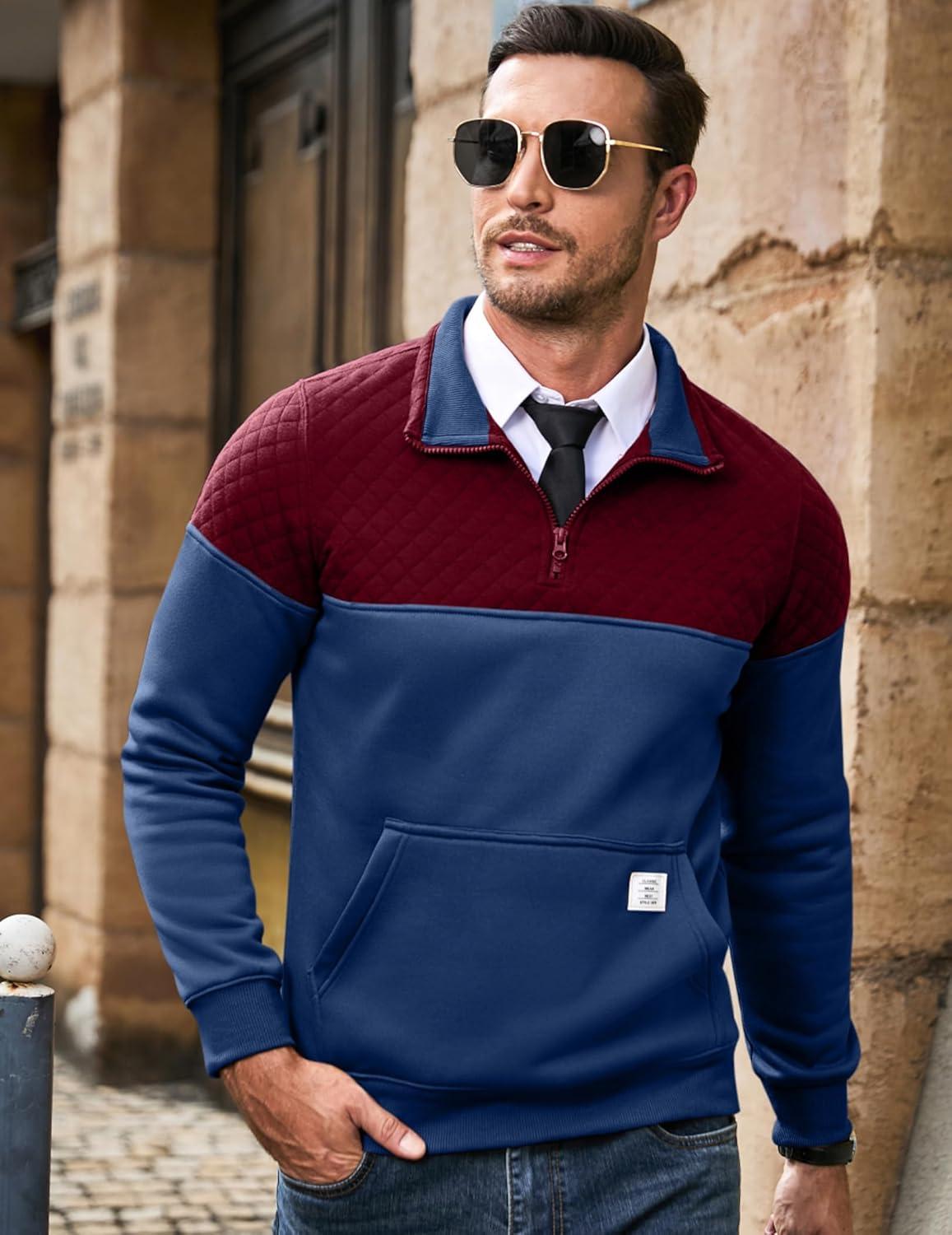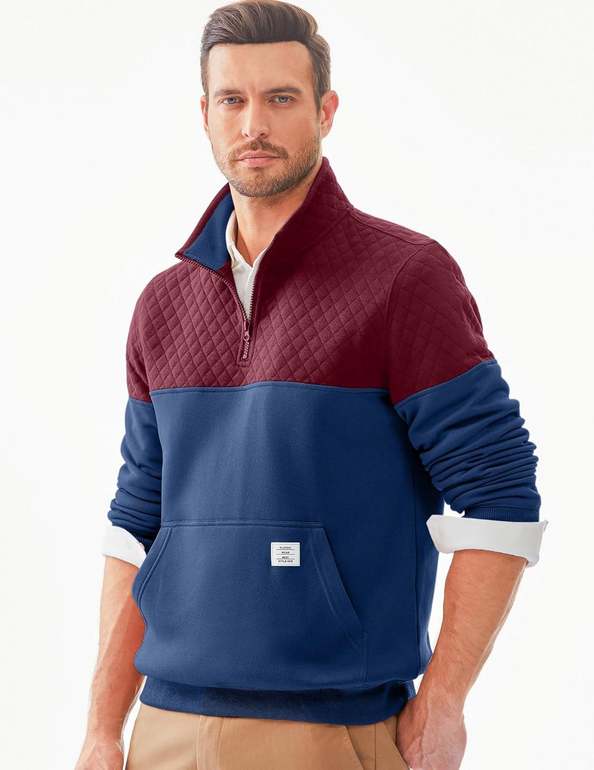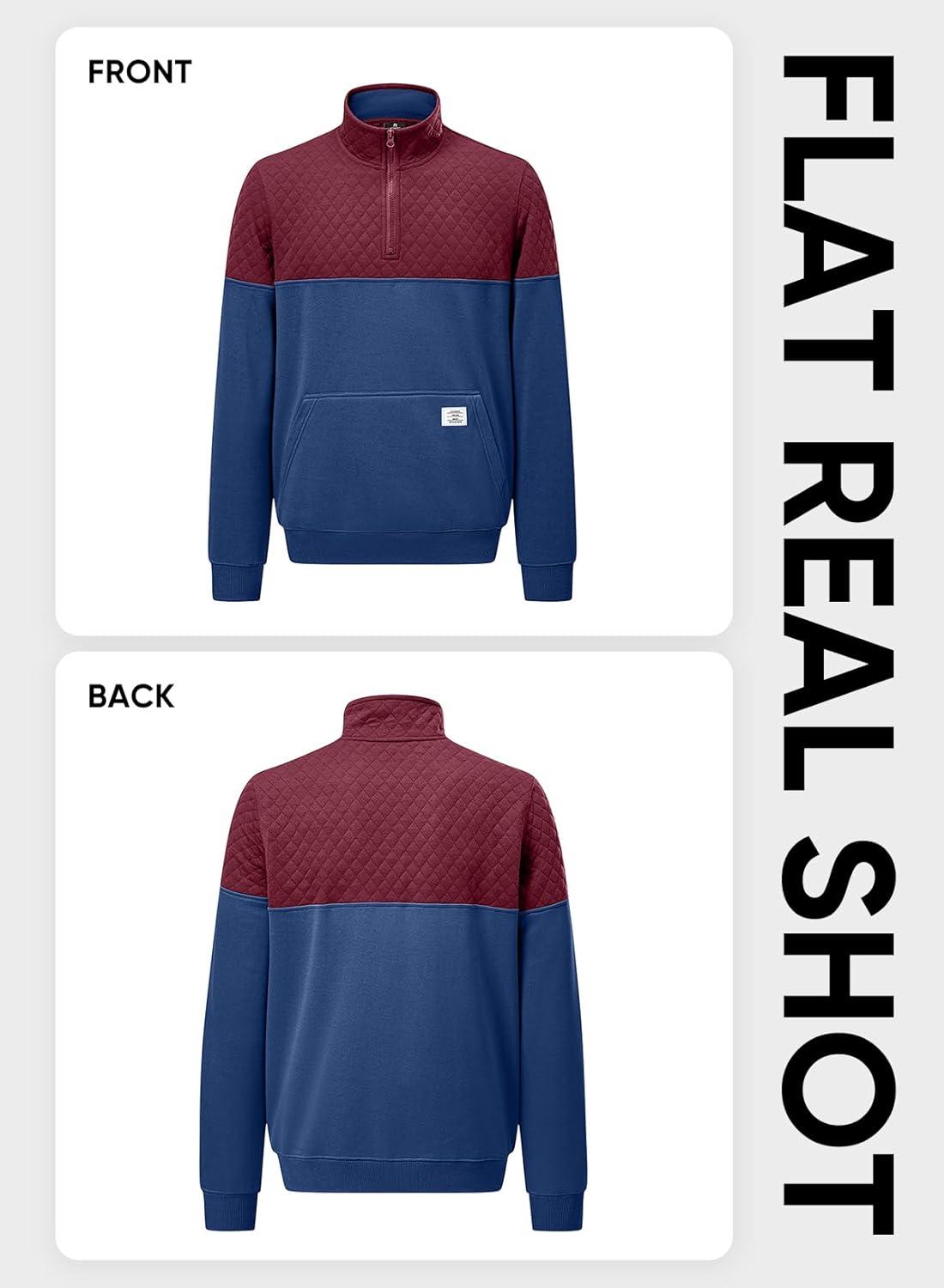 JMIERR Men’s Quarter Zip Pullover Quilted Sweatshirt Pullover Long Sleeve Stand Collar Sweater Color Block Sweatshirt(Sky Blue)
