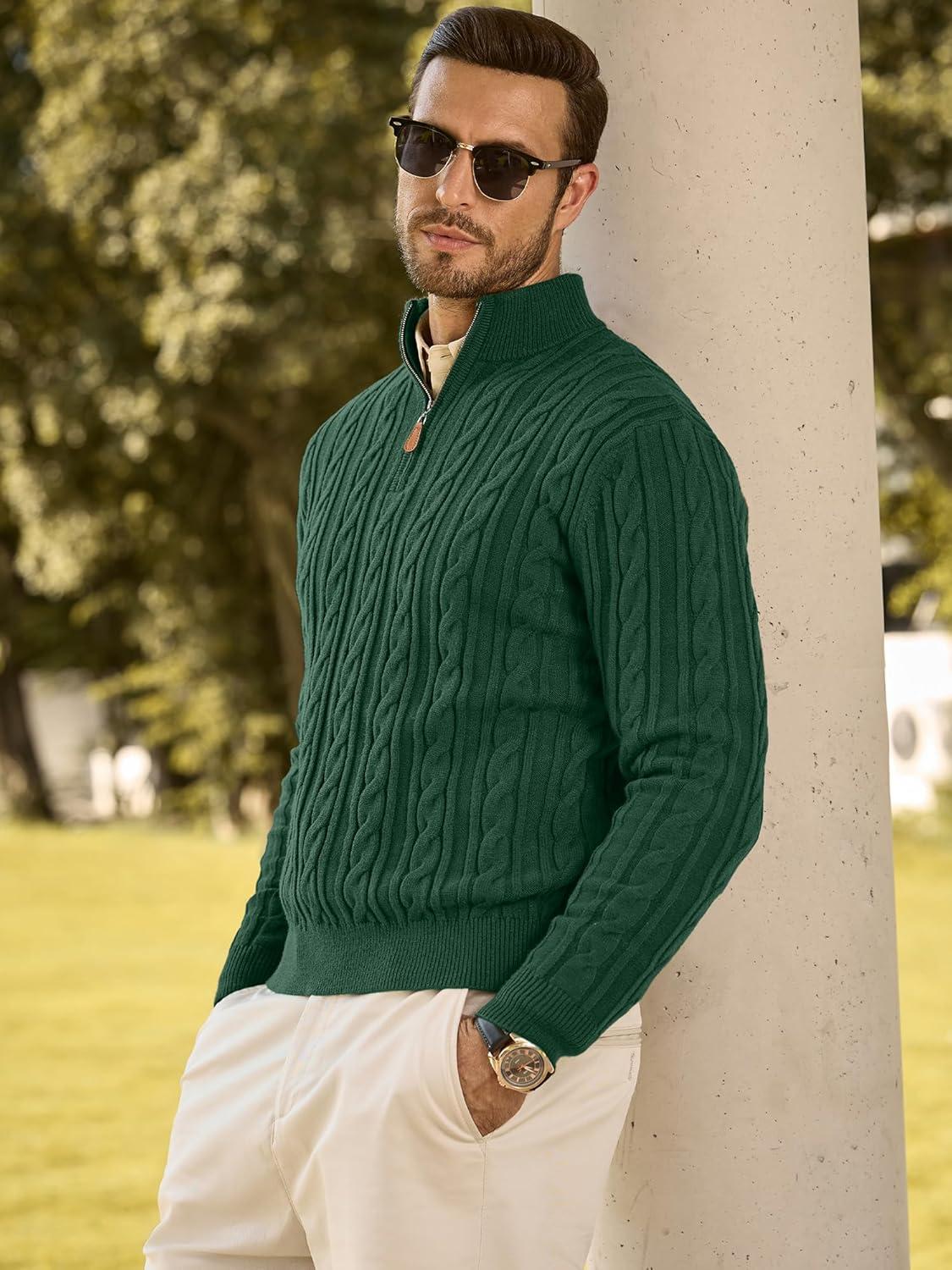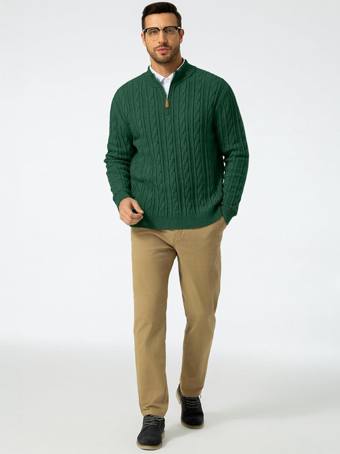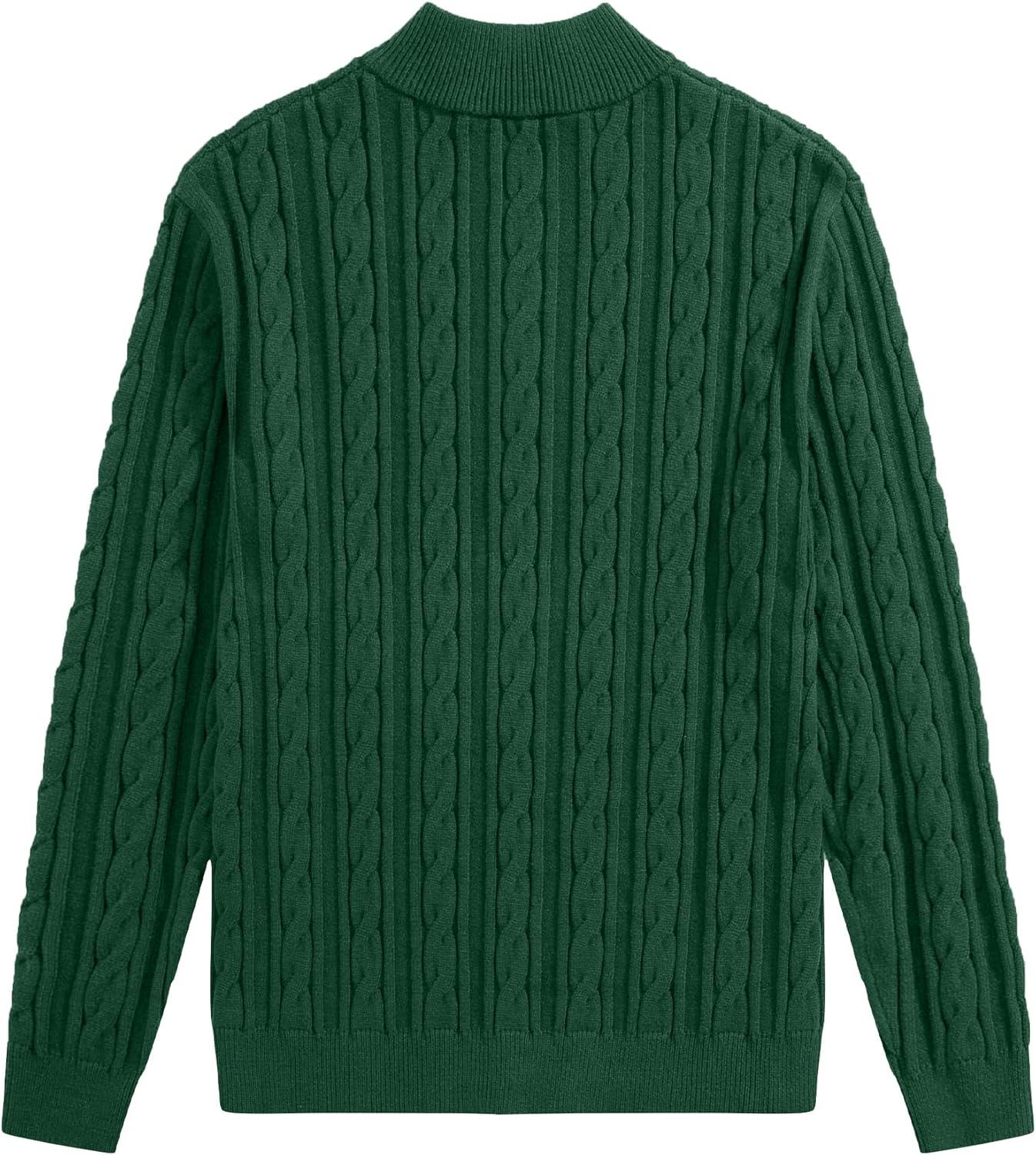 JMIERR Men’s Quarter Zip Pullover Sweater Cable Knit Casual Stand Collar Texture Knitted Sweaters(Moss Green)