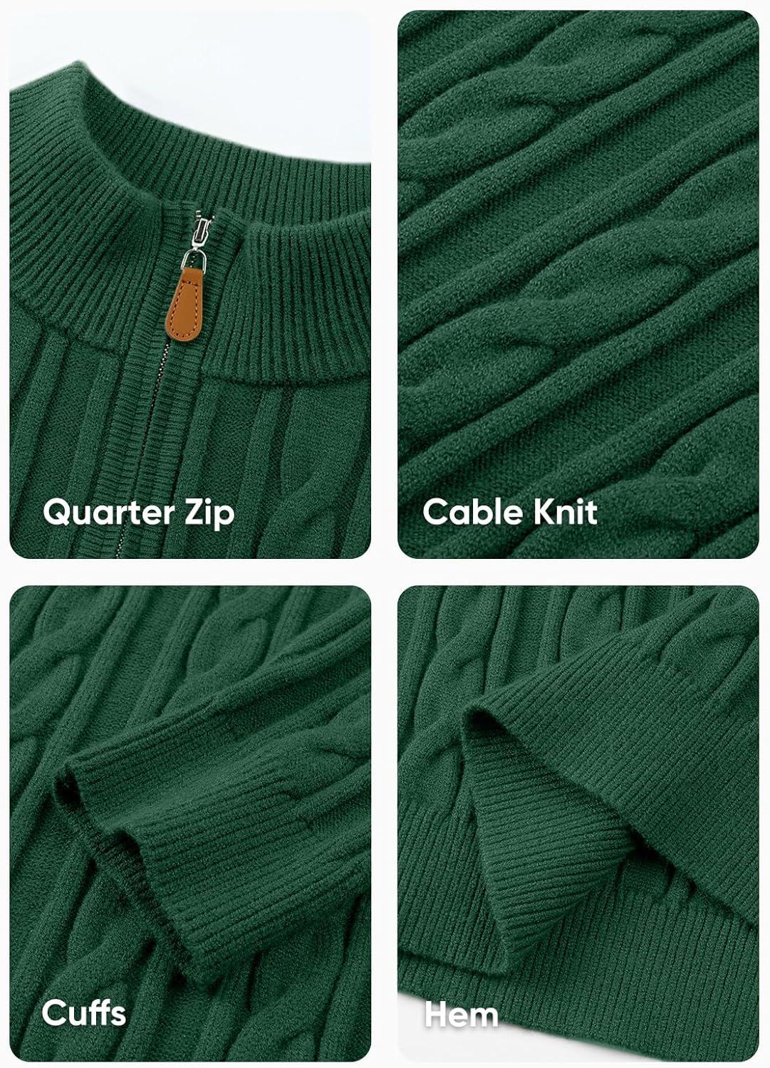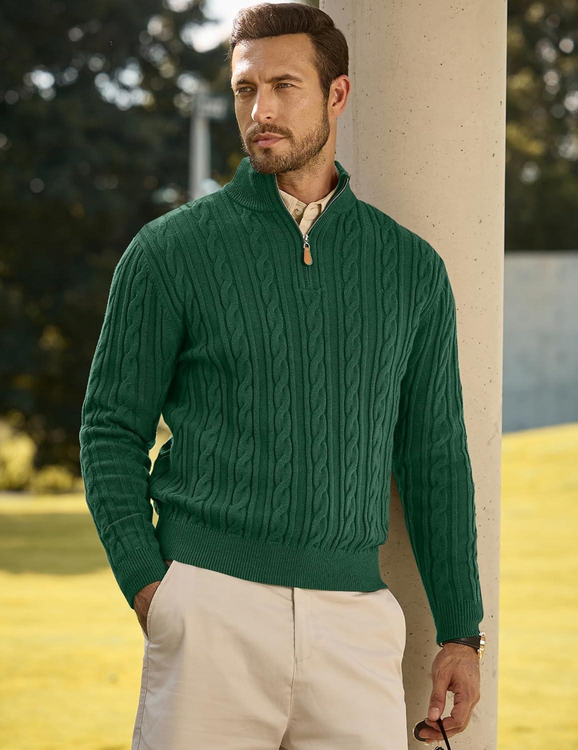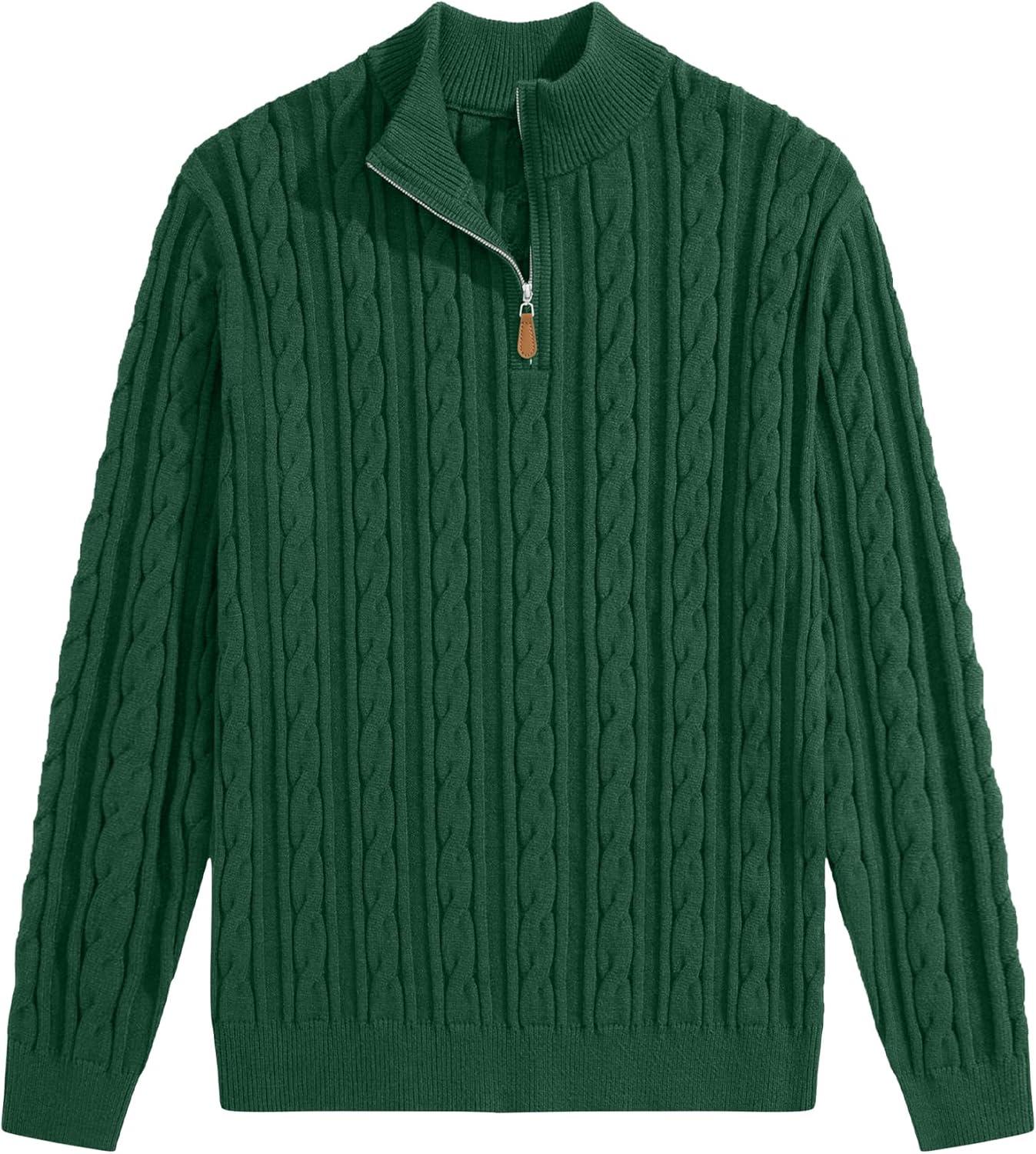 JMIERR Men’s Quarter Zip Pullover Sweater Cable Knit Casual Stand Collar Texture Knitted Sweaters(Moss Green)