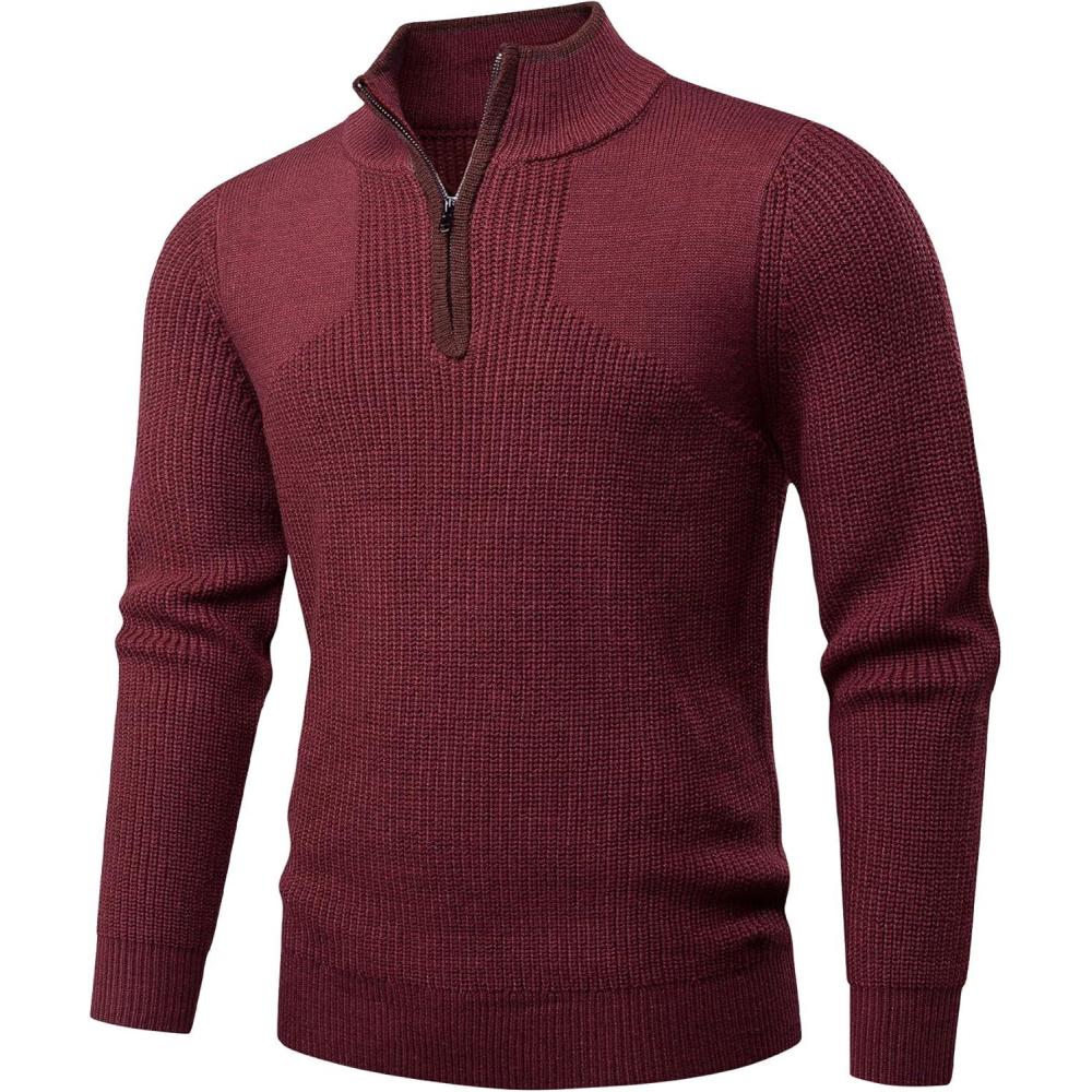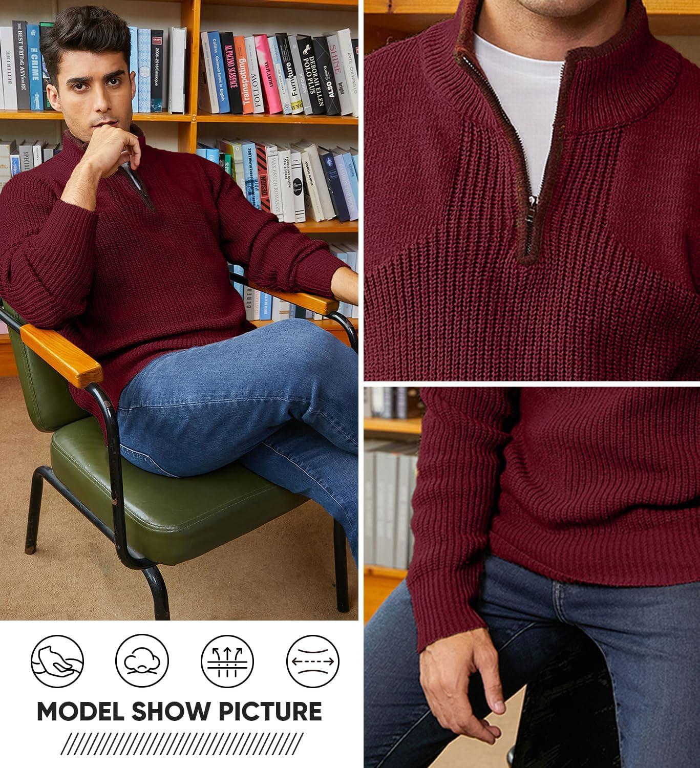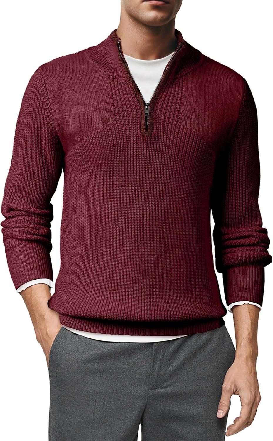 JMIERR Mens Quarter Zip Sweater Lightweight Mock Neck Casual Long Sleeve Knitted Solid Pullover Sweaters(A6 Biking Red)