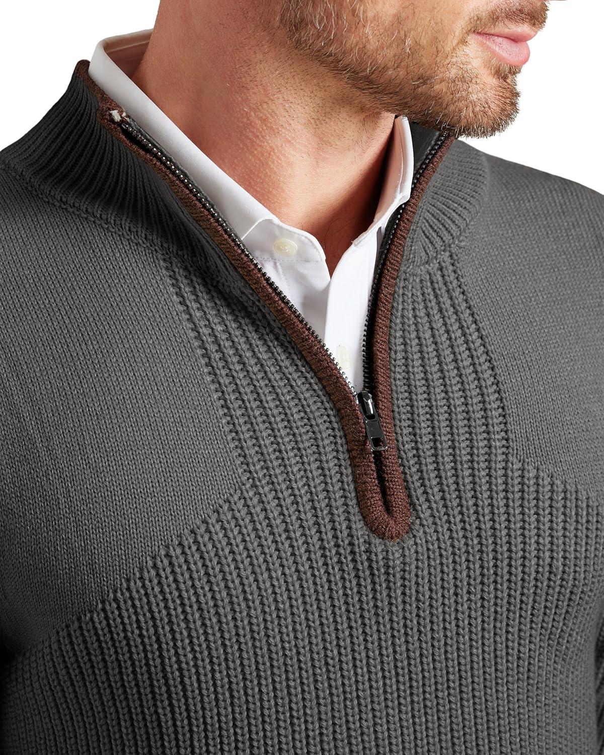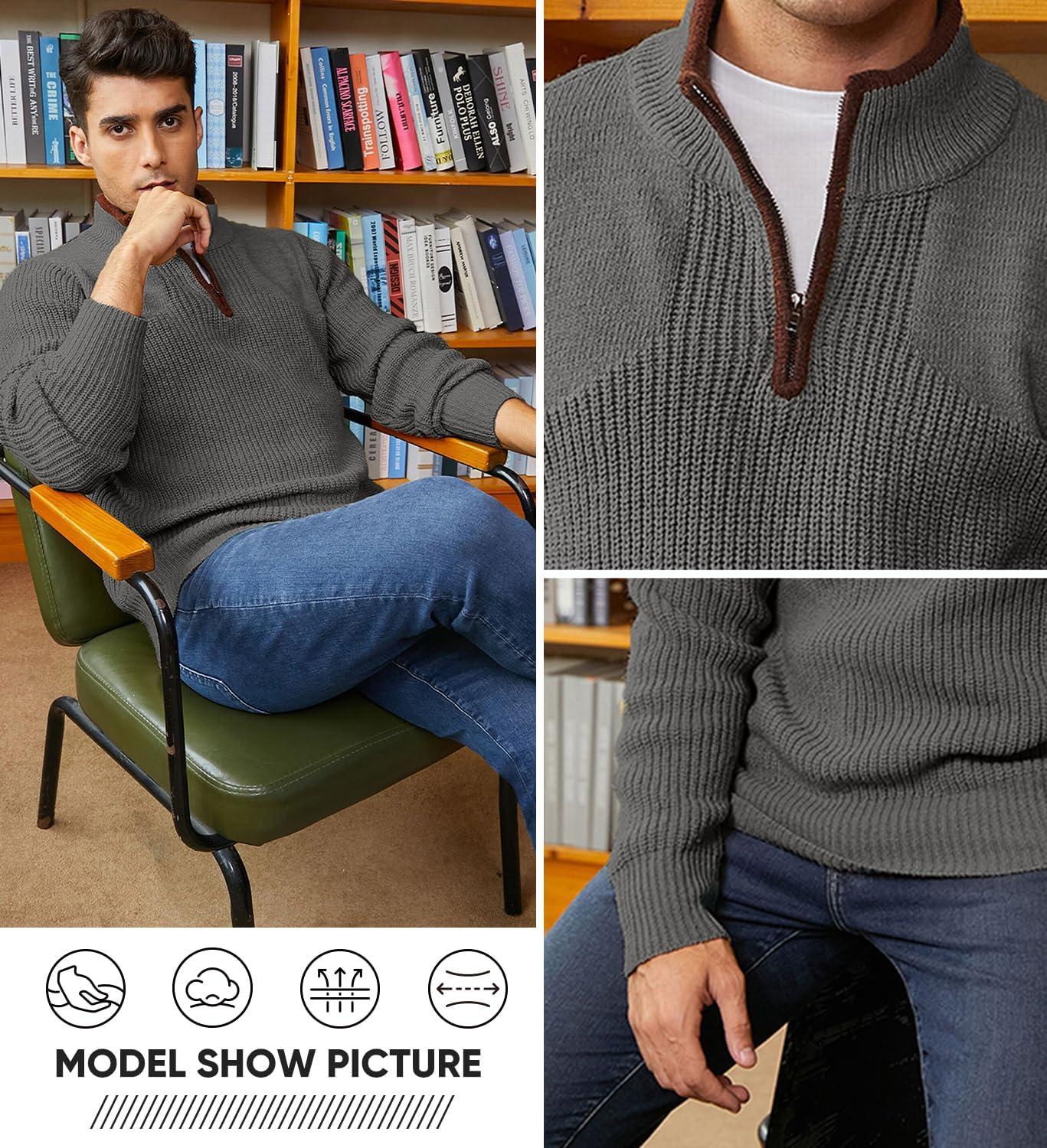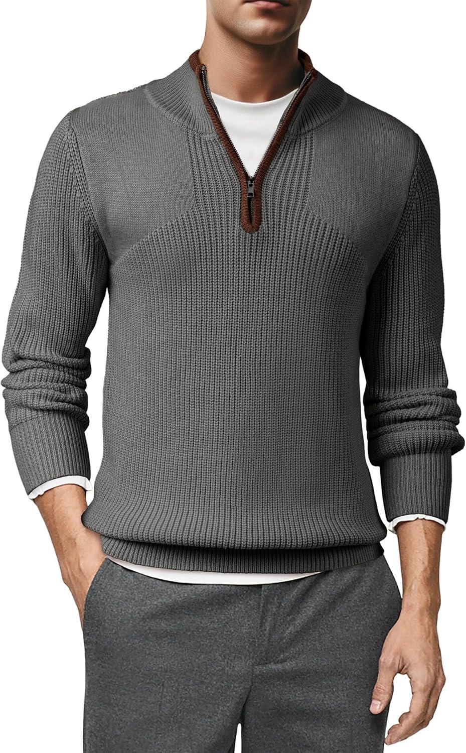JMIERR Mens Quarter Zip Sweater Lightweight Mock Neck Casual Long Sleeve Knitted Solid Pullover Sweaters(A7 Dark Grey)