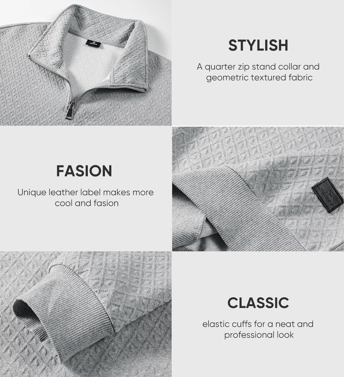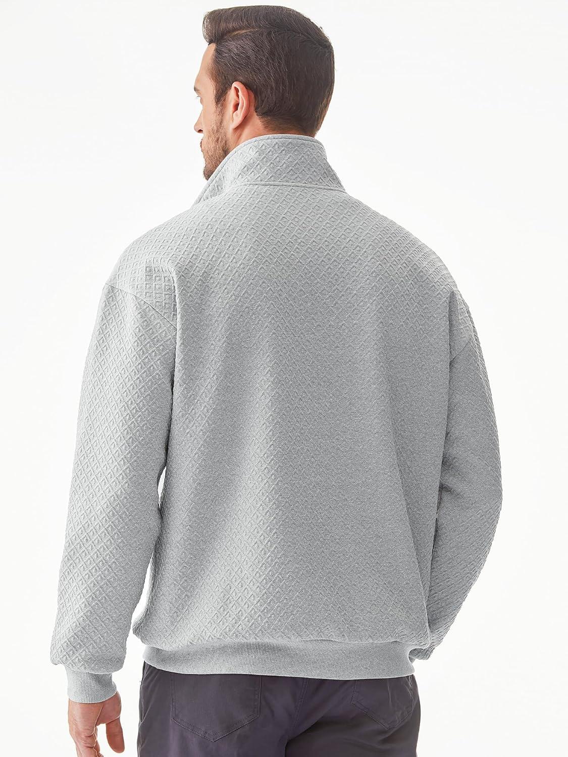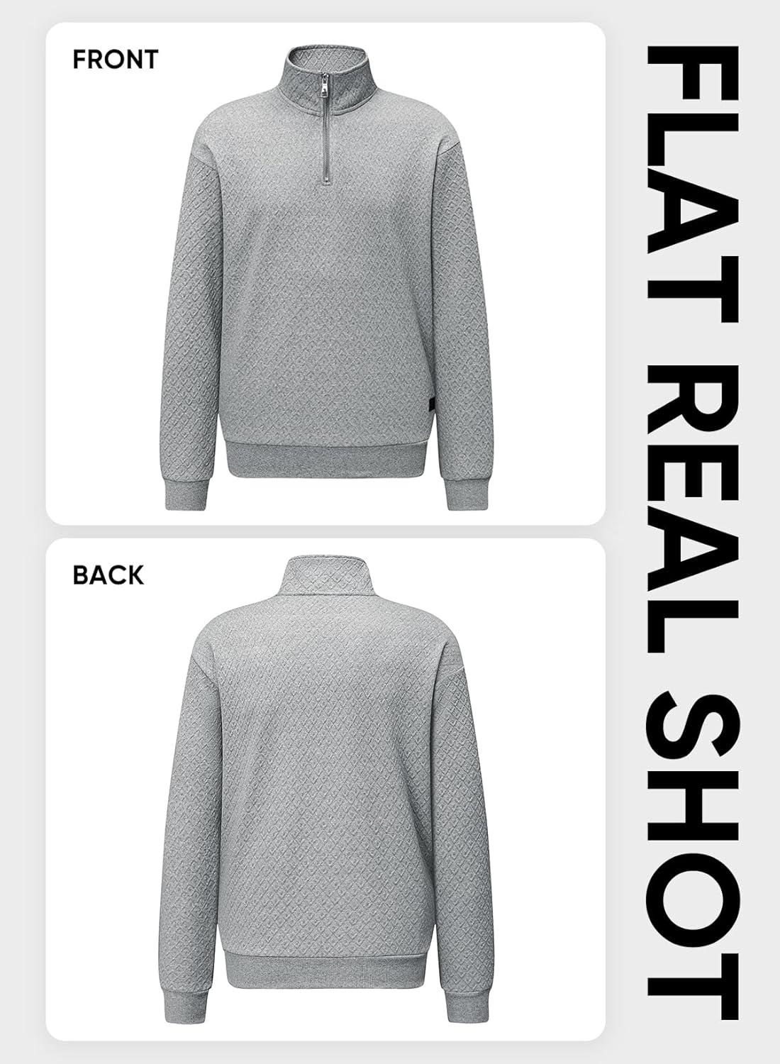 JMIERR Men’s Quarter Zip Waffle Sweatshirts Casual Long Sleeve Solid Color Geometric Texture Pullover Knit Polo Sweatshirt(Light Grey)