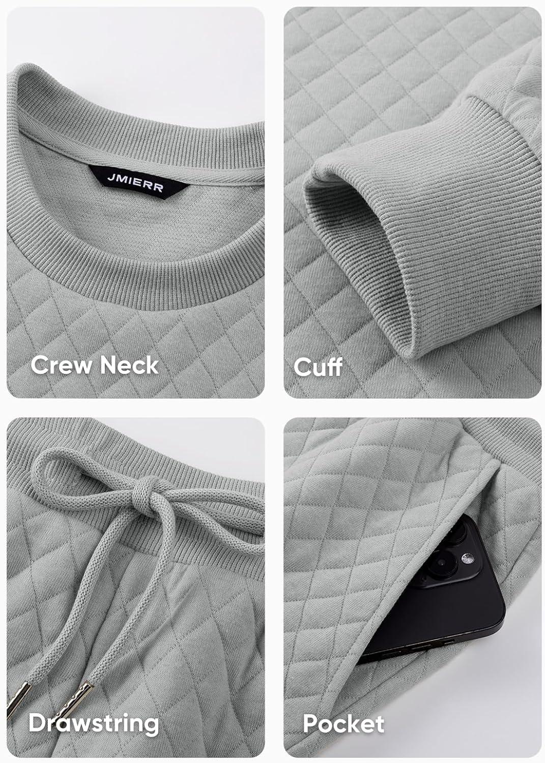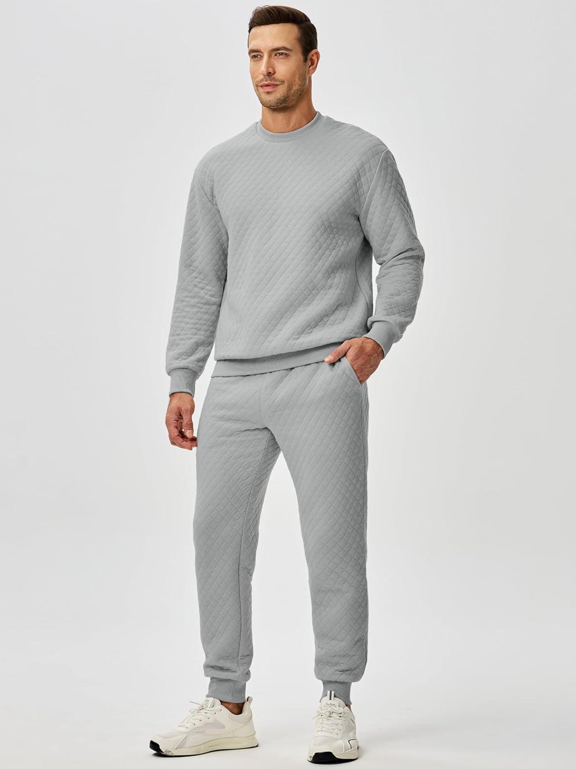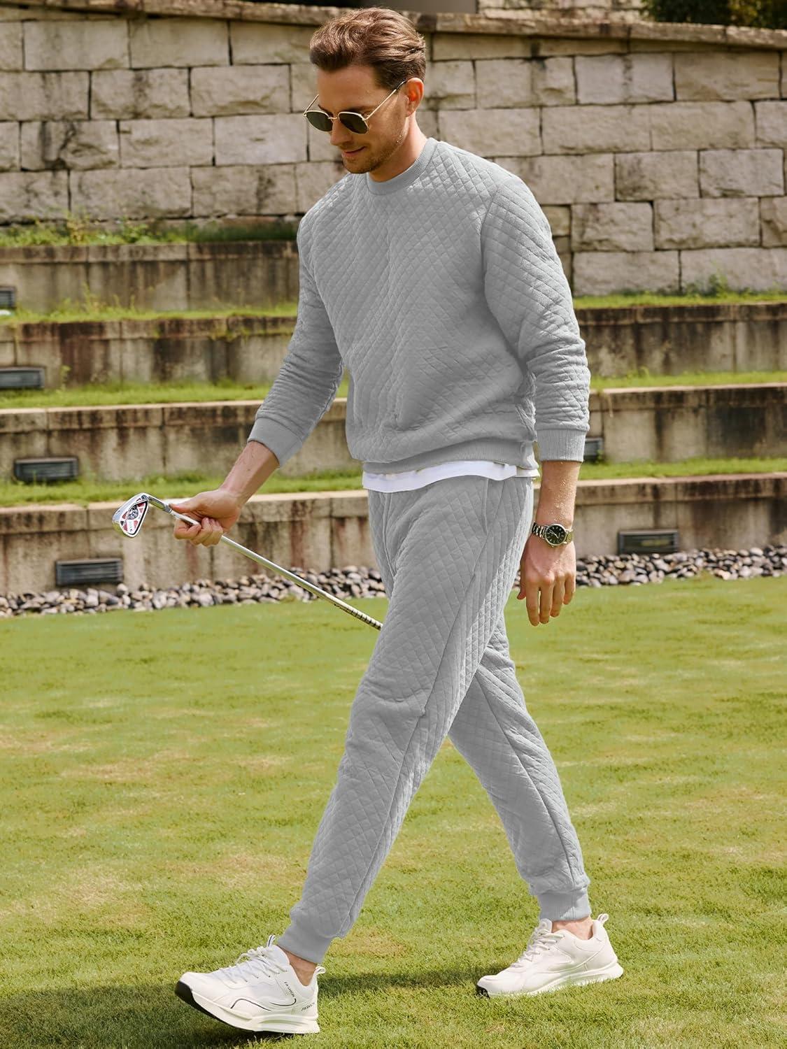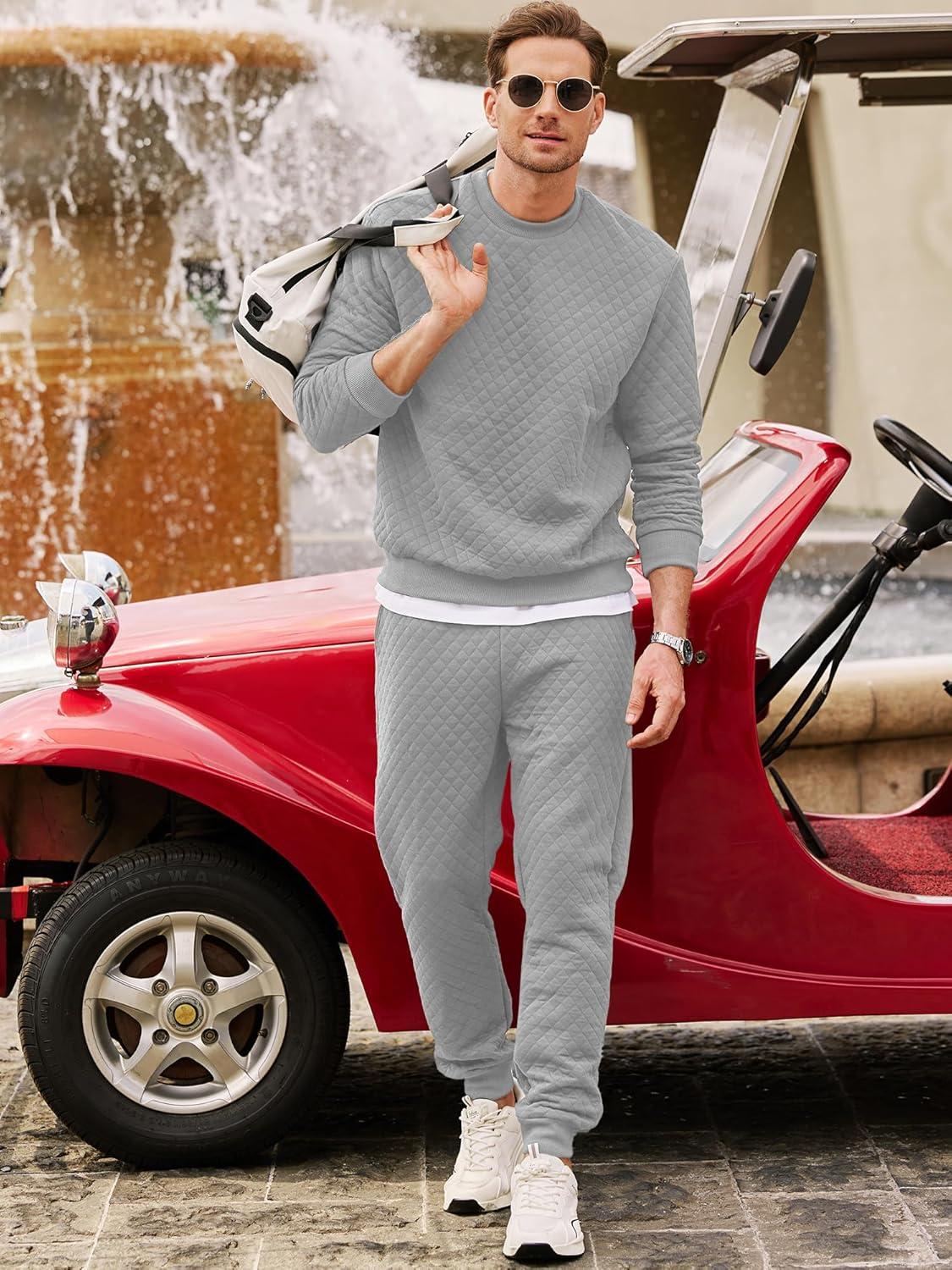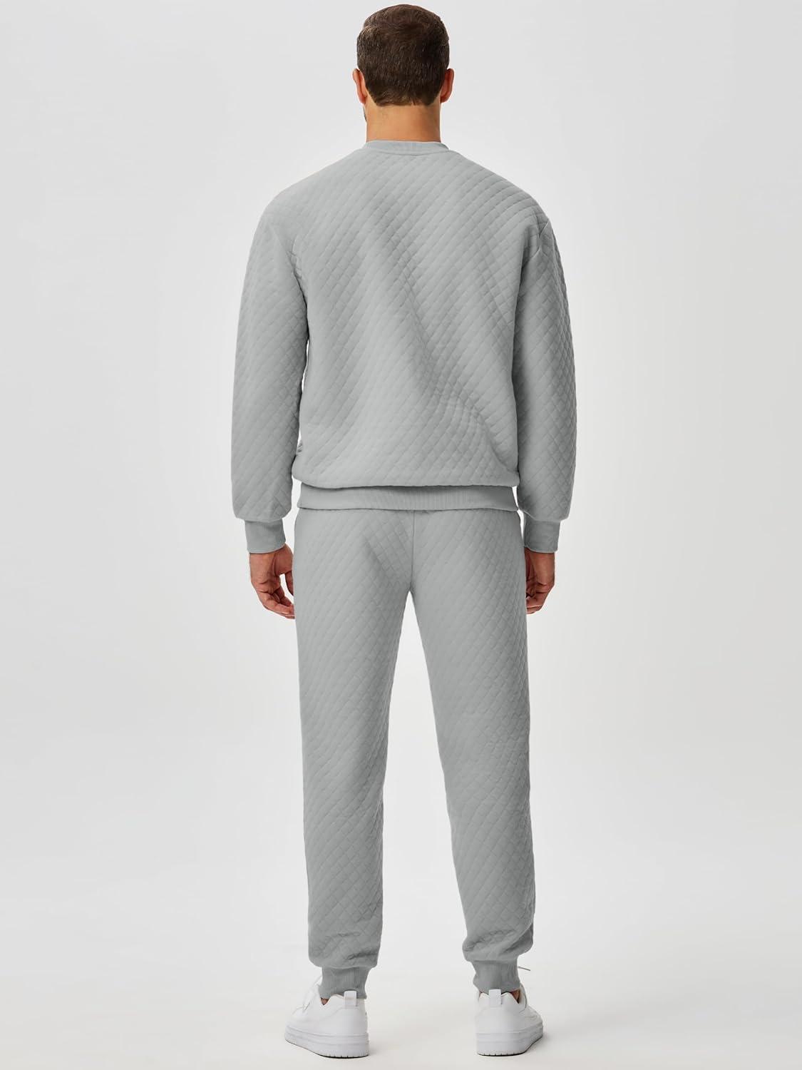 JMIERR Men’s Quilted 2 Piece Casual Outfits Crewneck Sweatshirt Tracksuit & Joggers Sweatpants Sweatsuit Set(Gray)