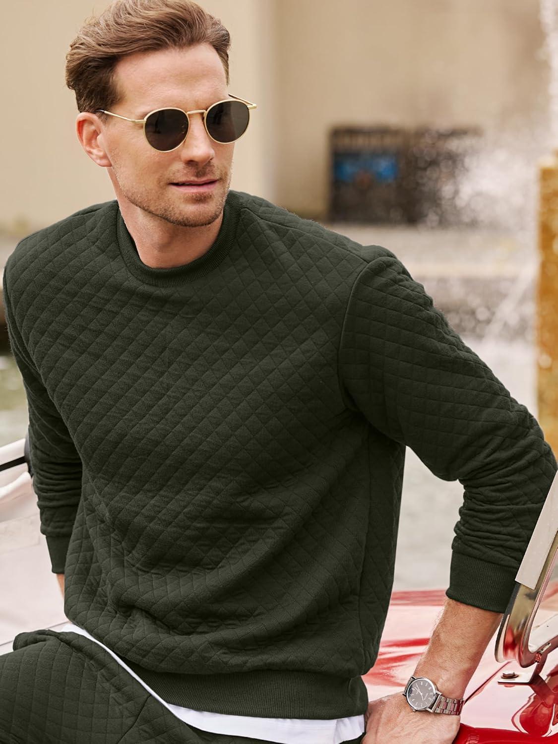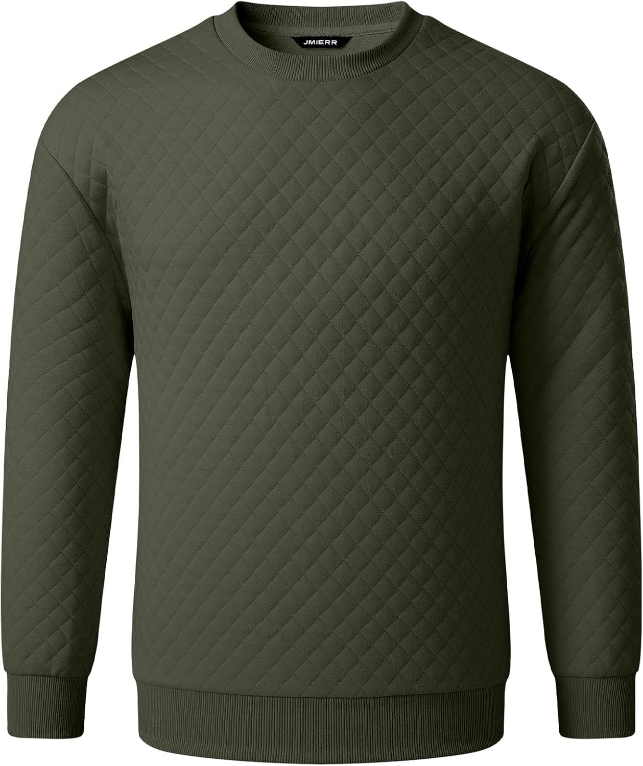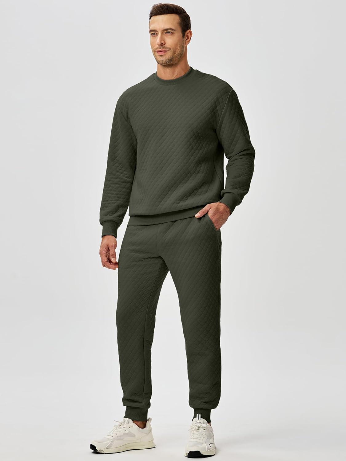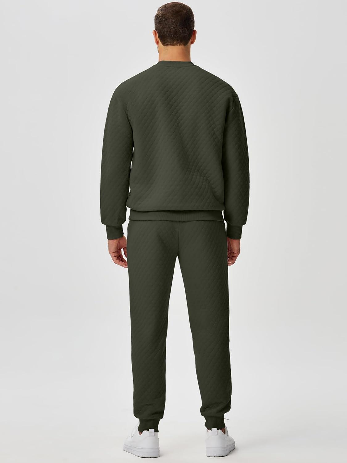 JMIERR Men’s Quilted 2 Piece Casual Outfits Crewneck Sweatshirt Tracksuit & Joggers Sweatpants Sweatsuit Set(Moss Green)