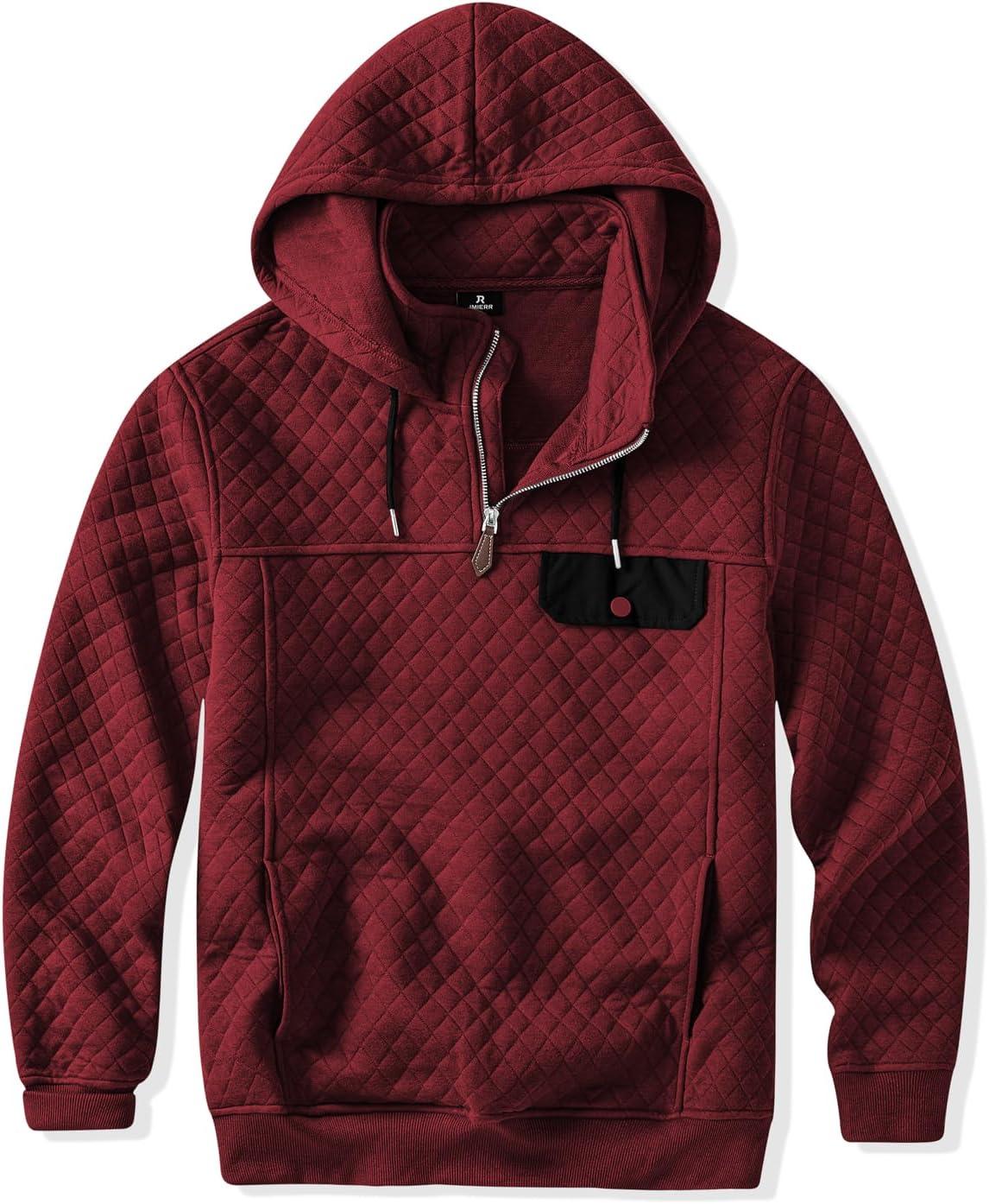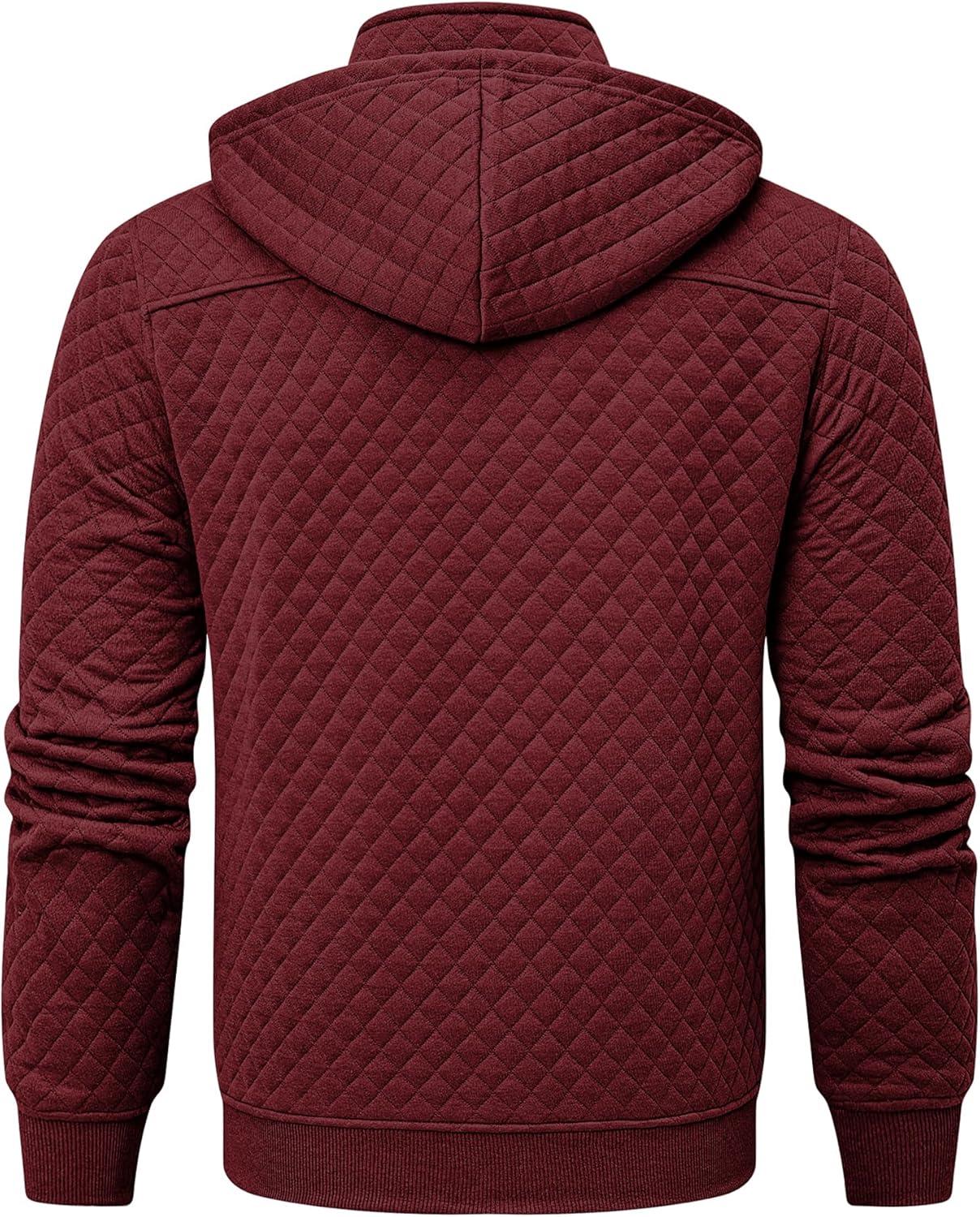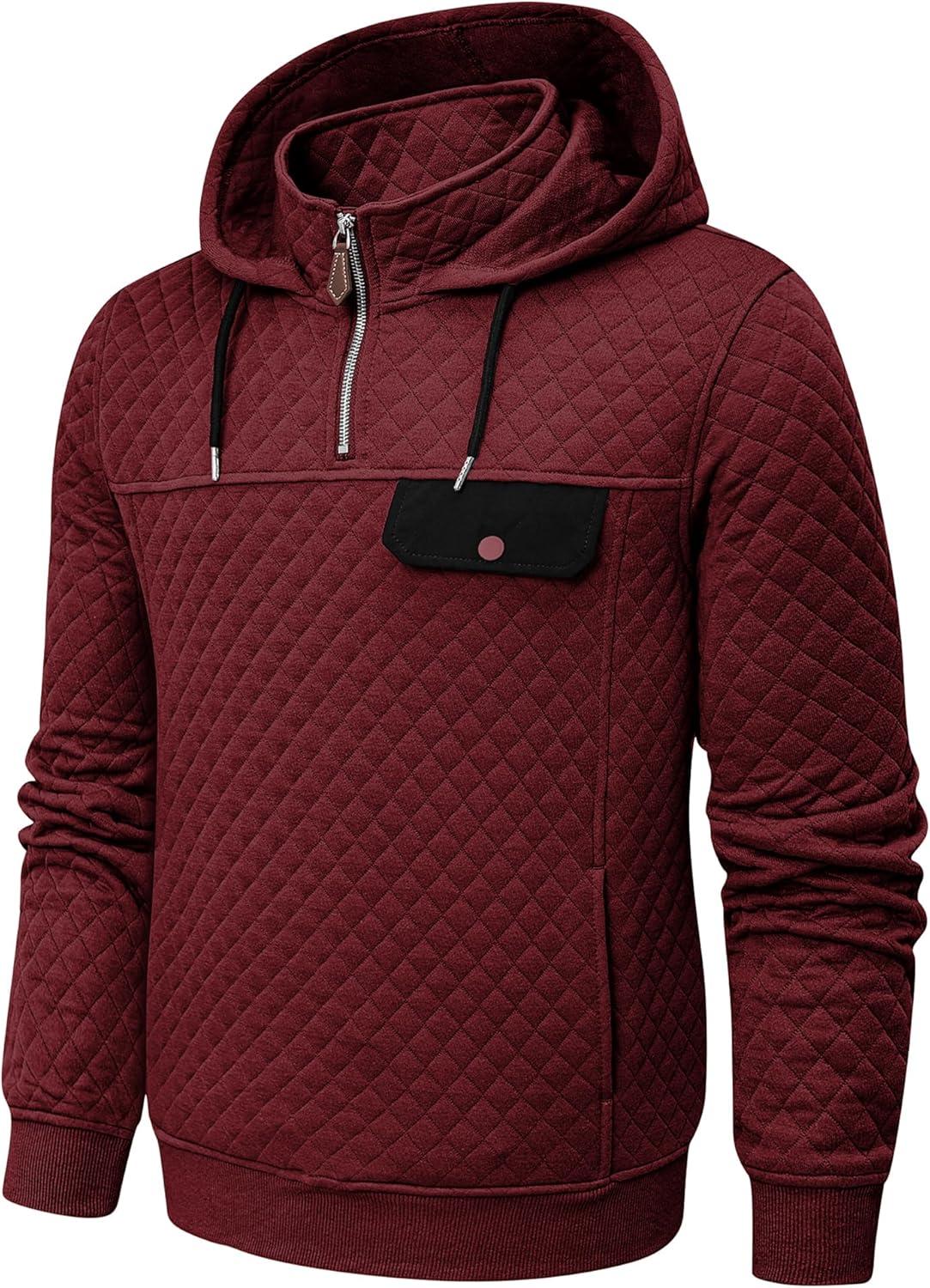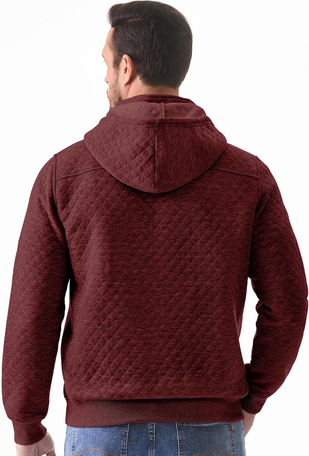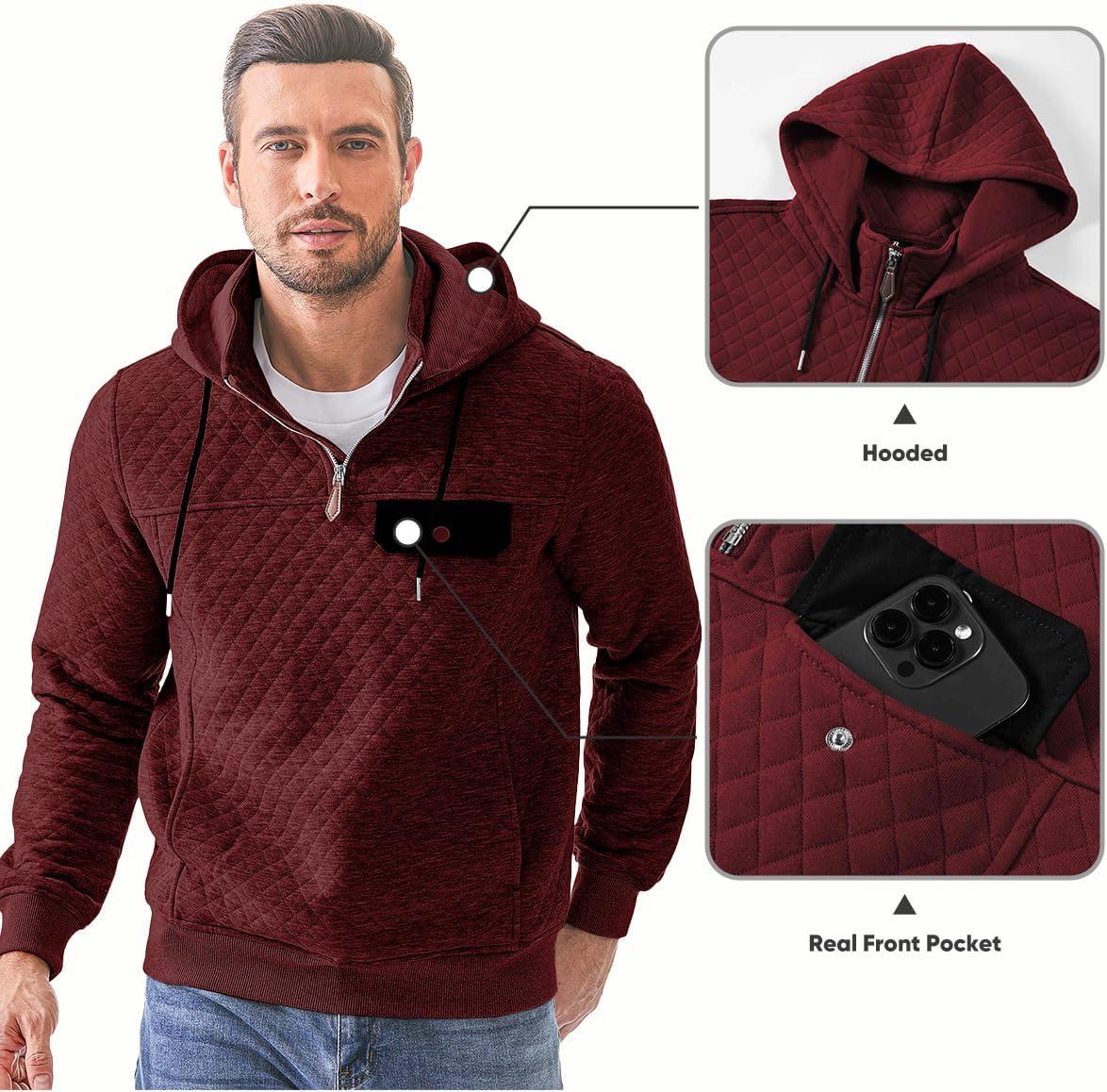 JMIERR Men’s Quilted Hoodies Casual Long Sleeve Quarter-Zip Pullover Sweatshirt with Pockets(Burgundy)