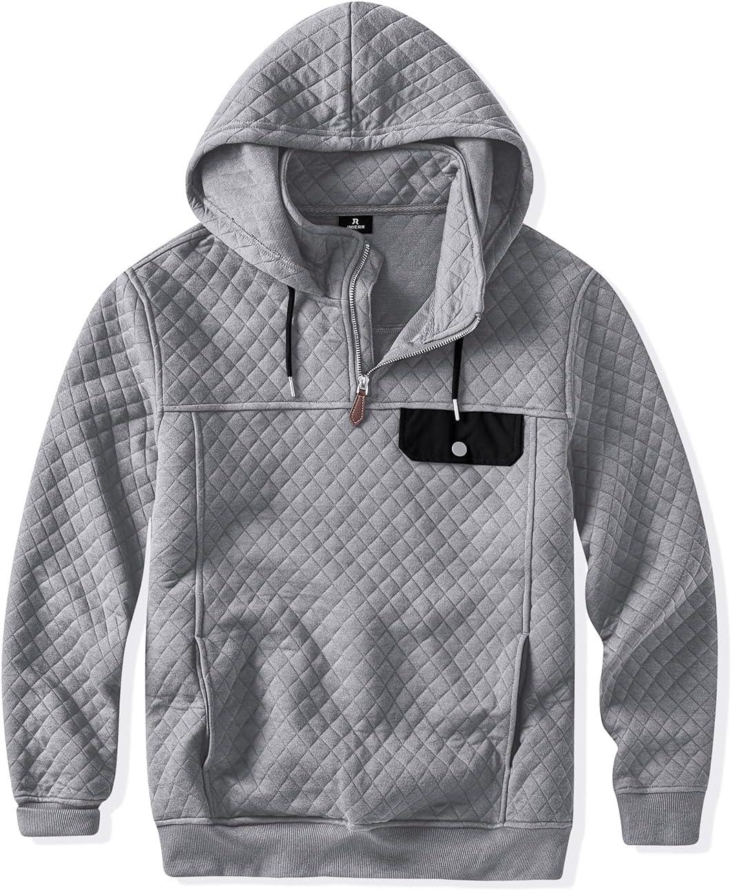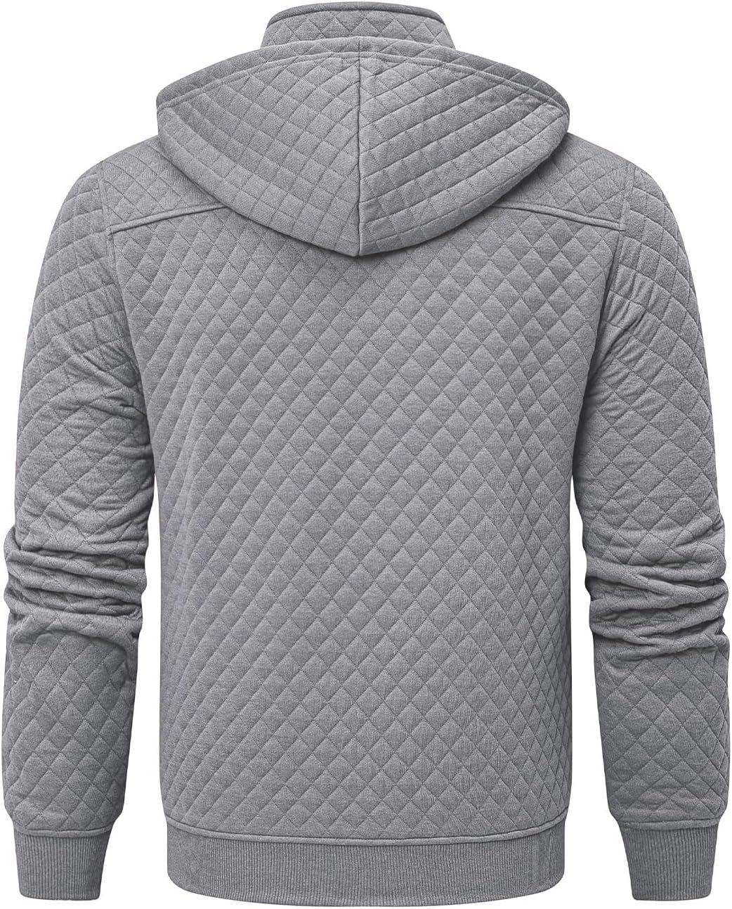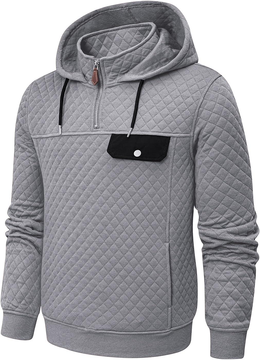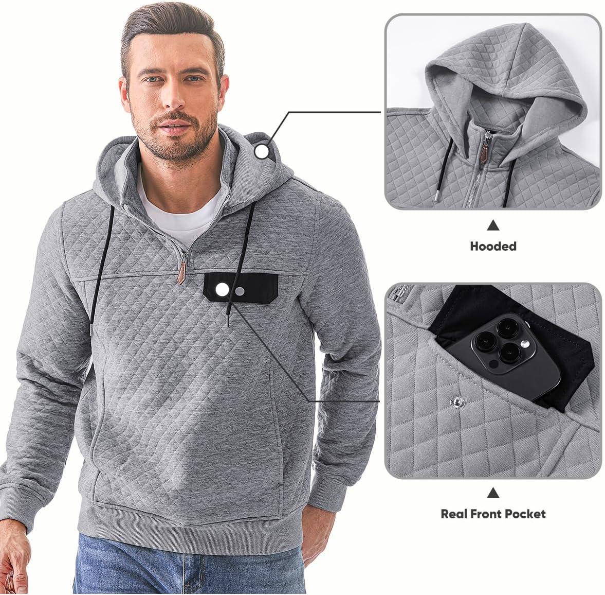 JMIERR Men’s Quilted Hoodies Casual Long Sleeve Quarter-Zip Pullover Sweatshirt with Pockets(Light Grey)