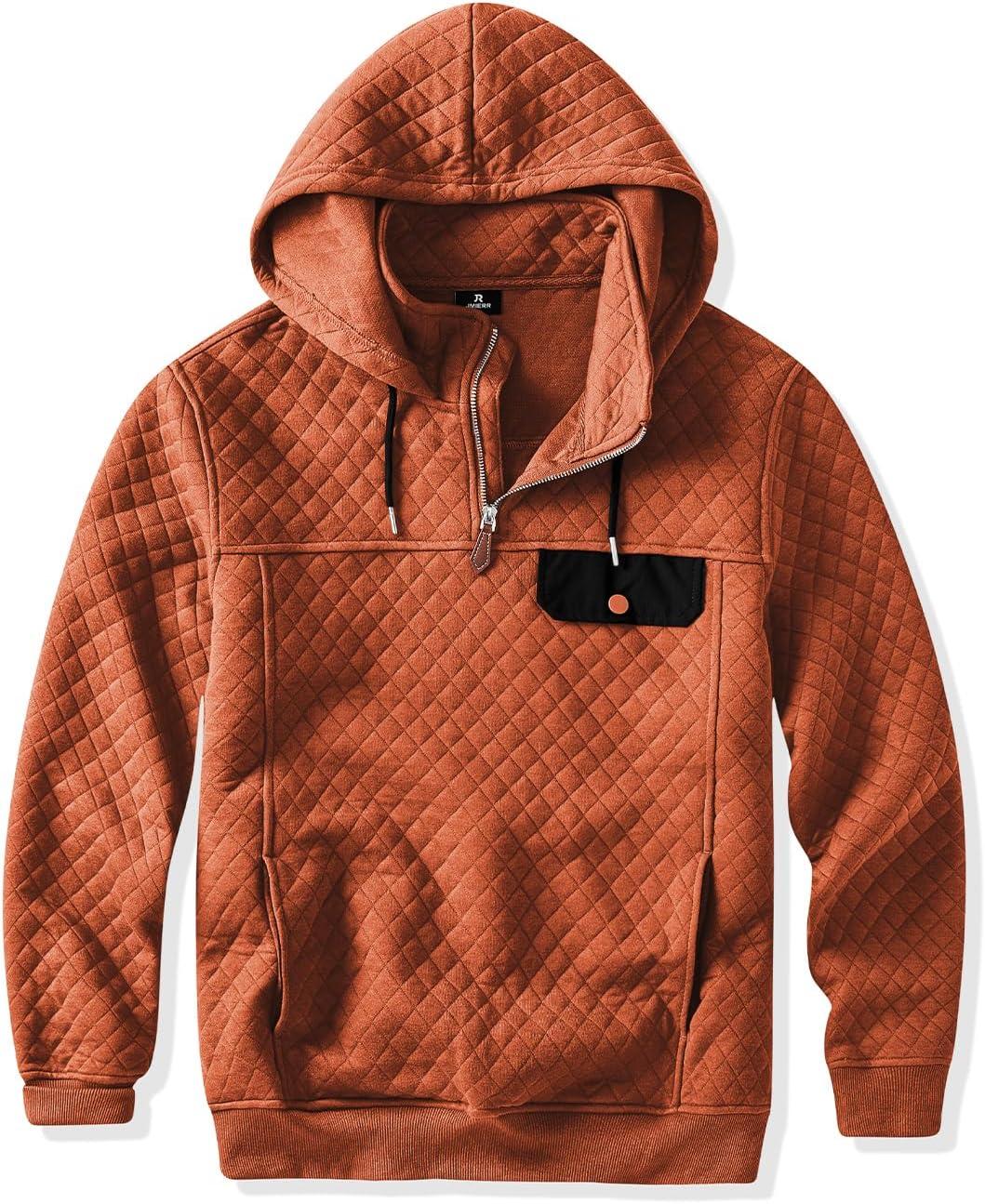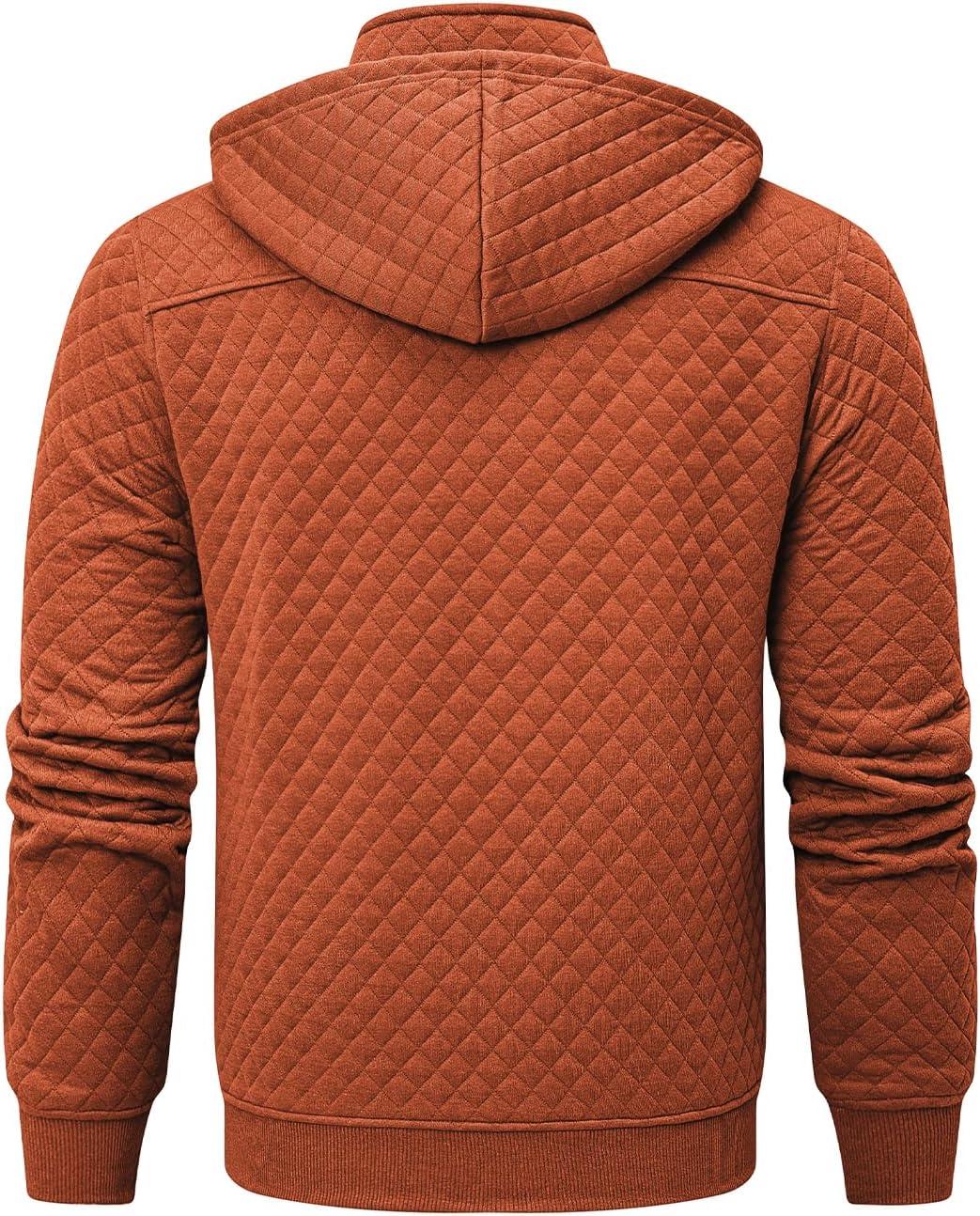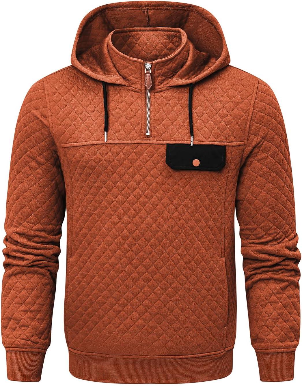 JMIERR Men’s Quilted Hoodies Casual Long Sleeve Quarter-Zip Pullover Sweatshirt with Pockets(Orange)