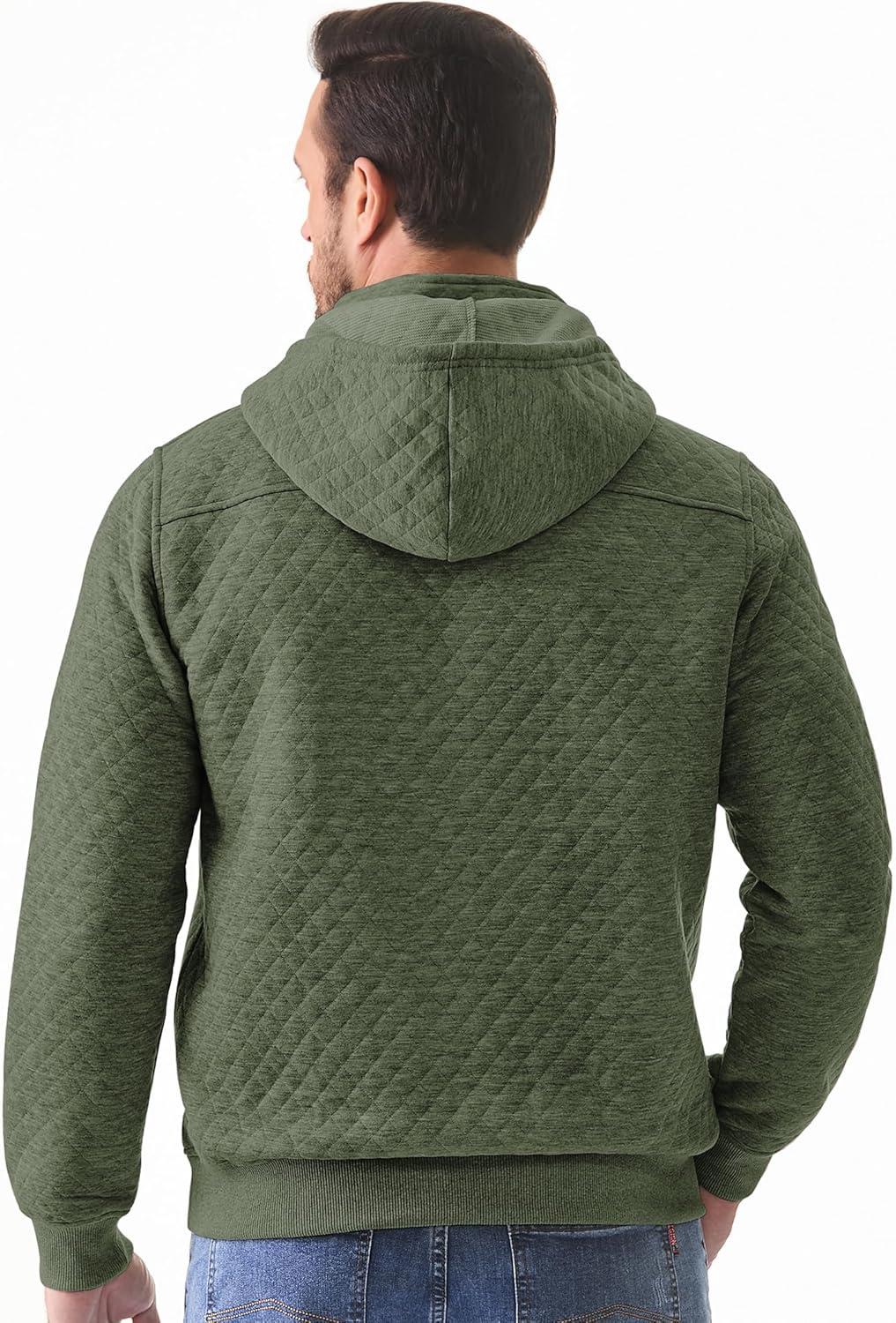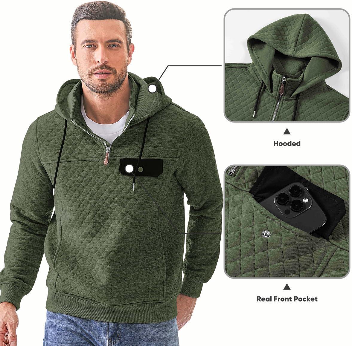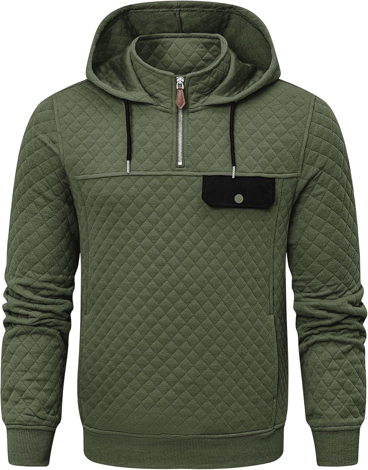 JMIERR Men’s Quilted Hoodies Casual Long Sleeve Quarter-Zip Pullover Sweatshirt with Pockets(Z Green)