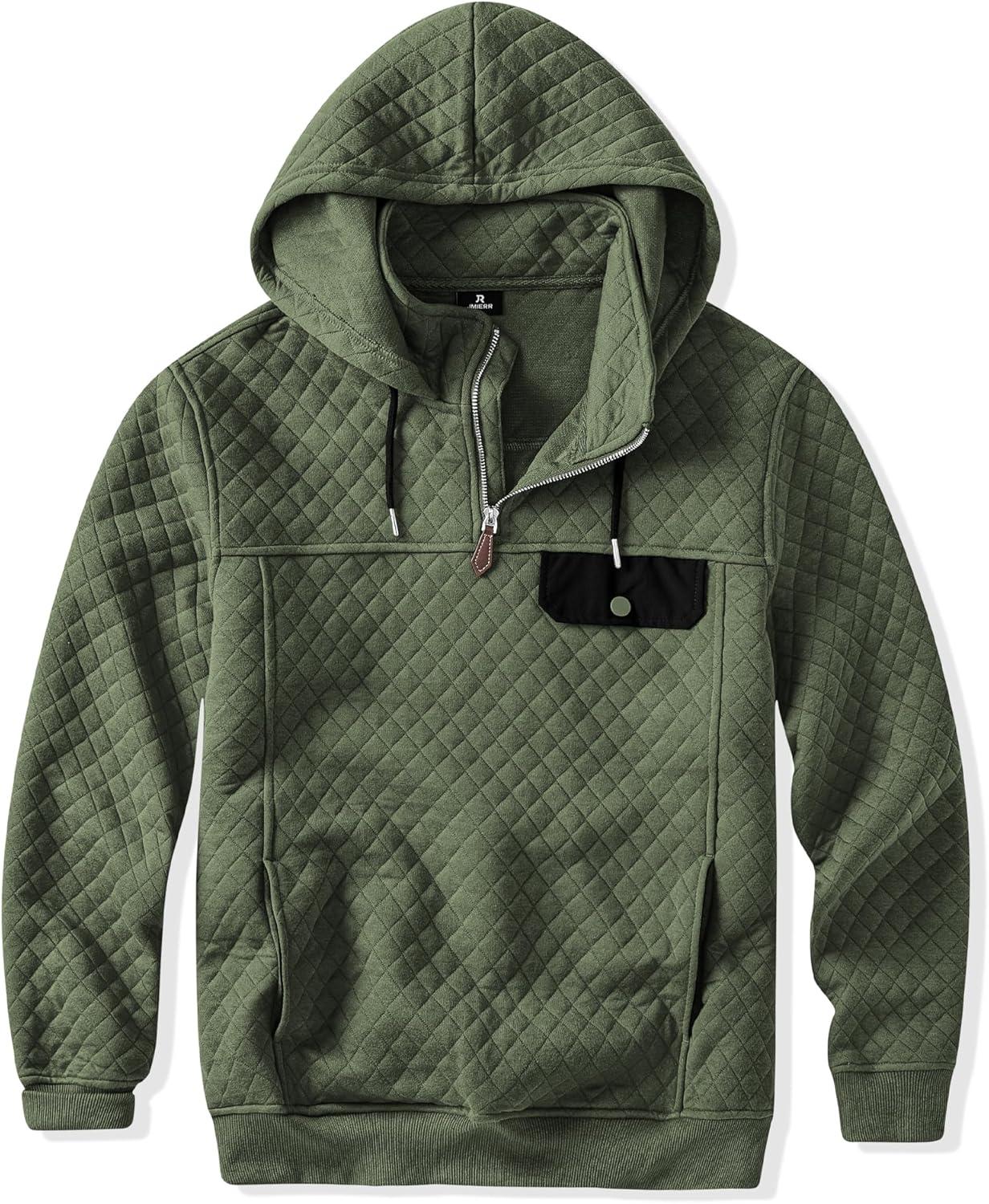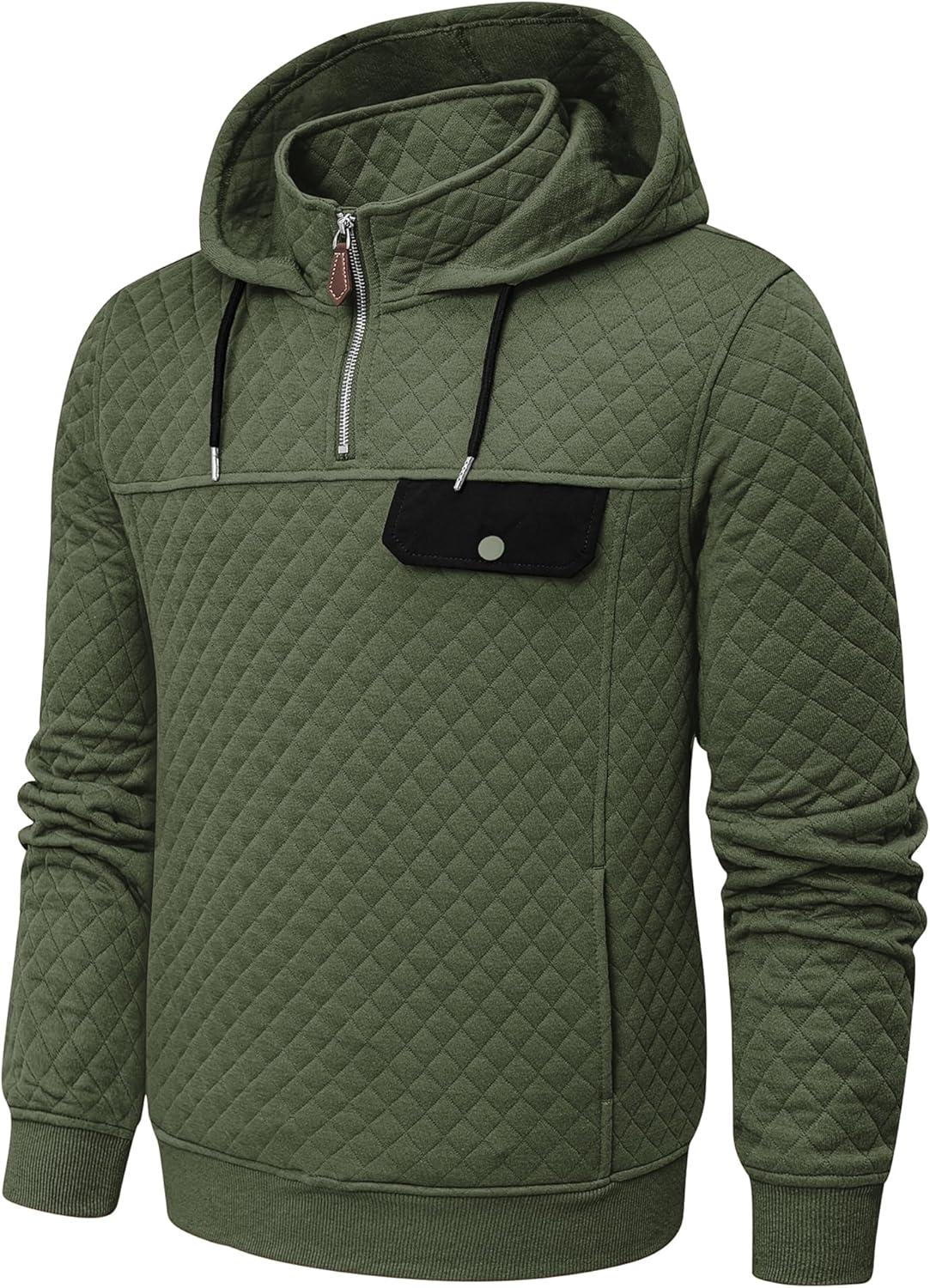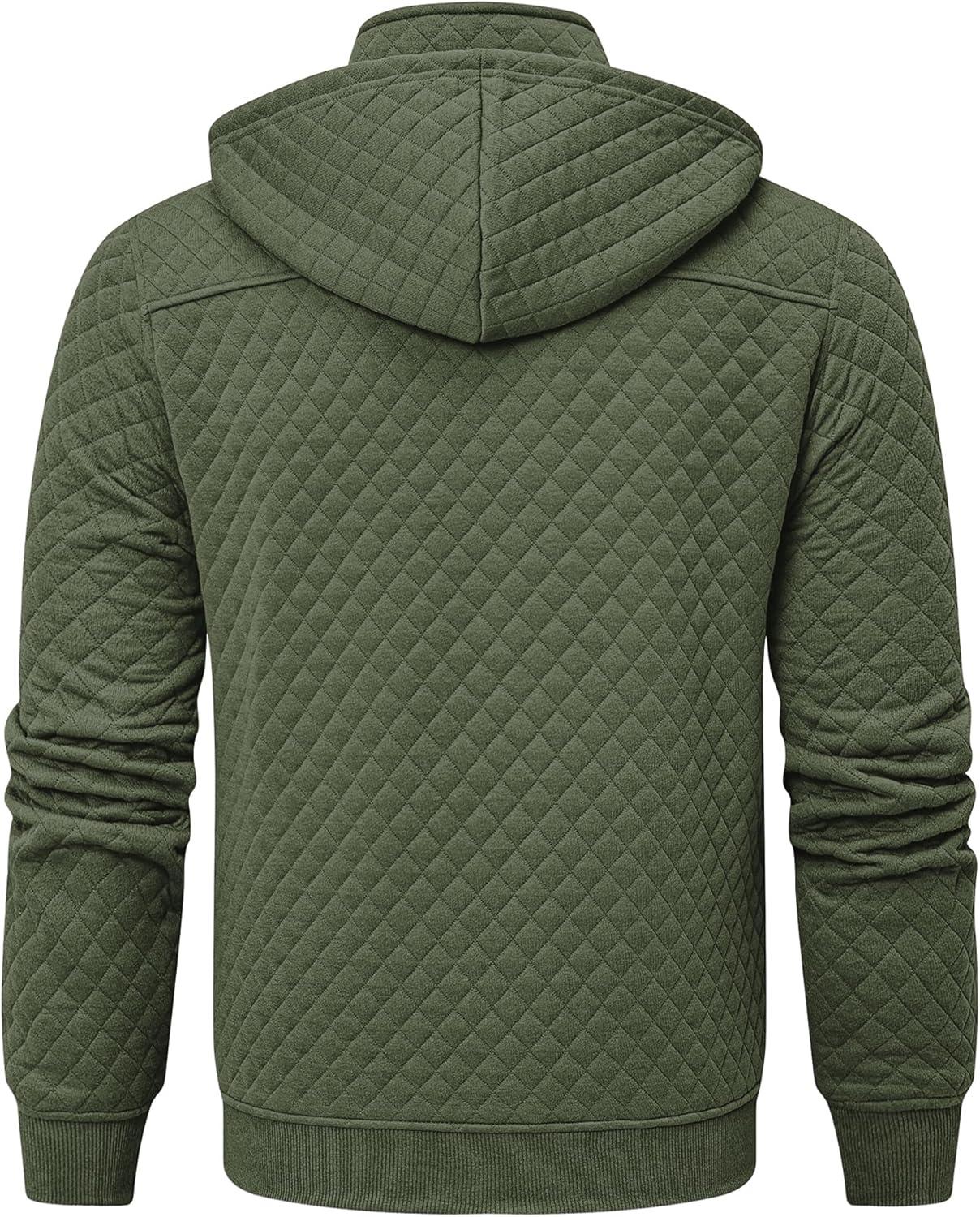 JMIERR Men’s Quilted Hoodies Casual Long Sleeve Quarter-Zip Pullover Sweatshirt with Pockets(Z Green)