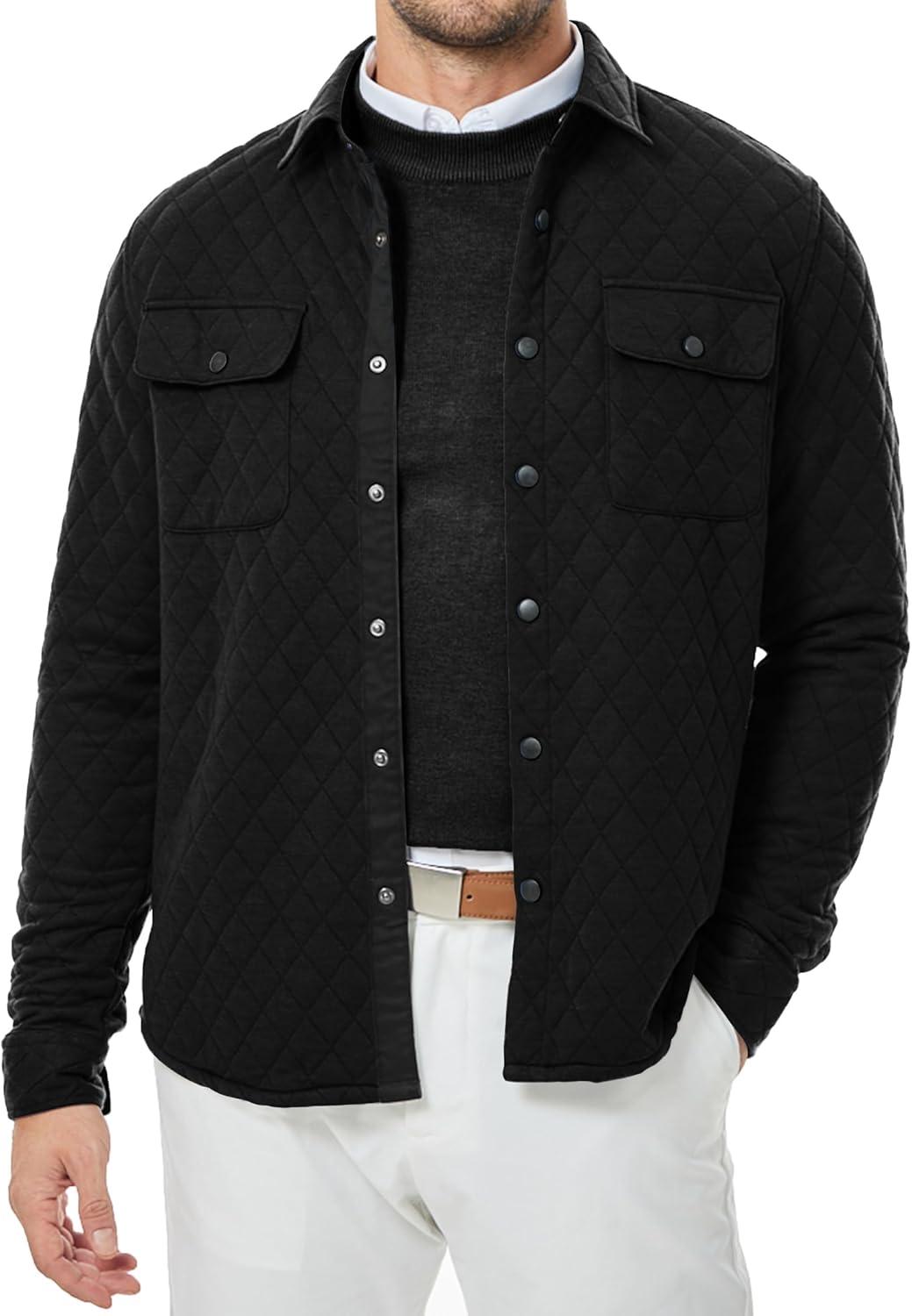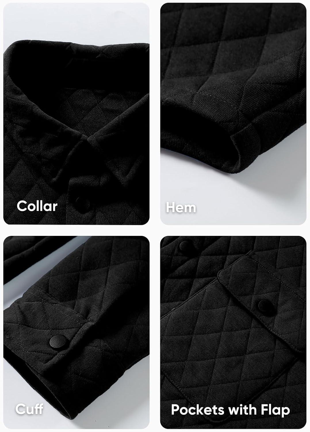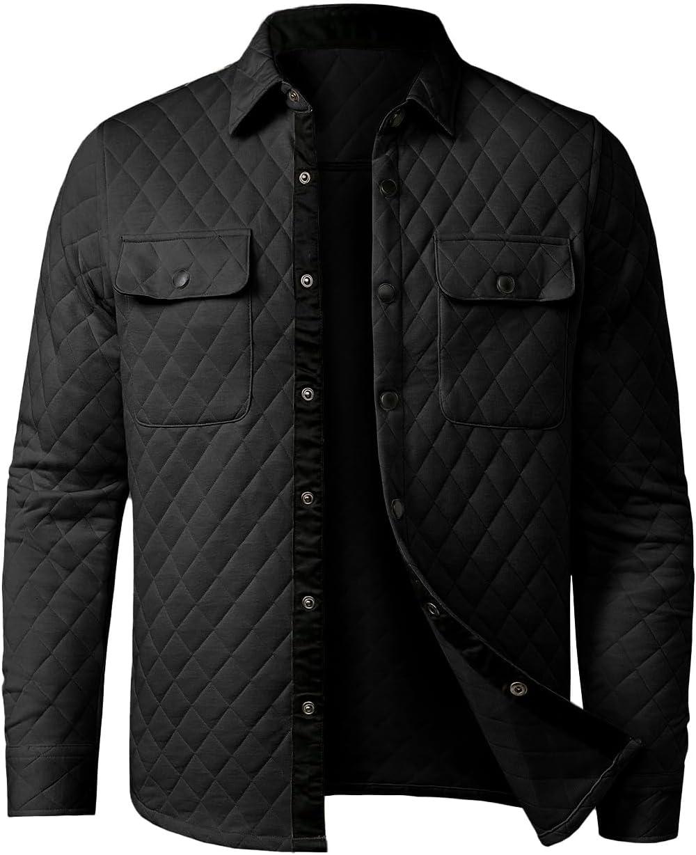 JMIERR Mens Quilted Shirt Jackets Casual Long Sleeve Snap Button Down Shirts with Pockets(A Black)
