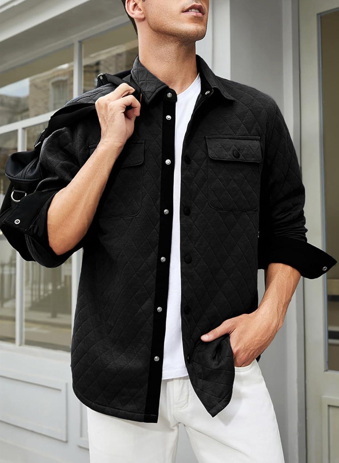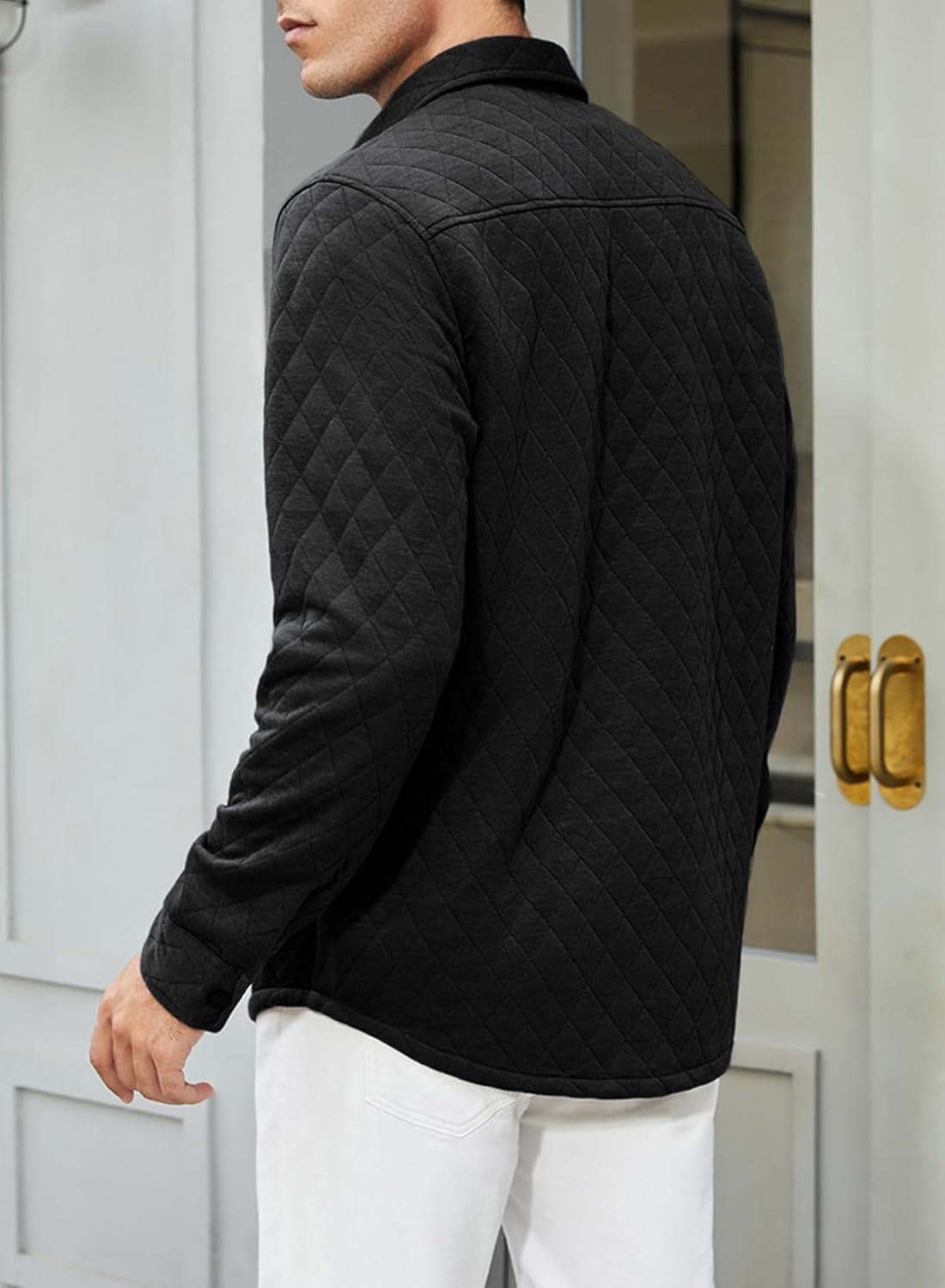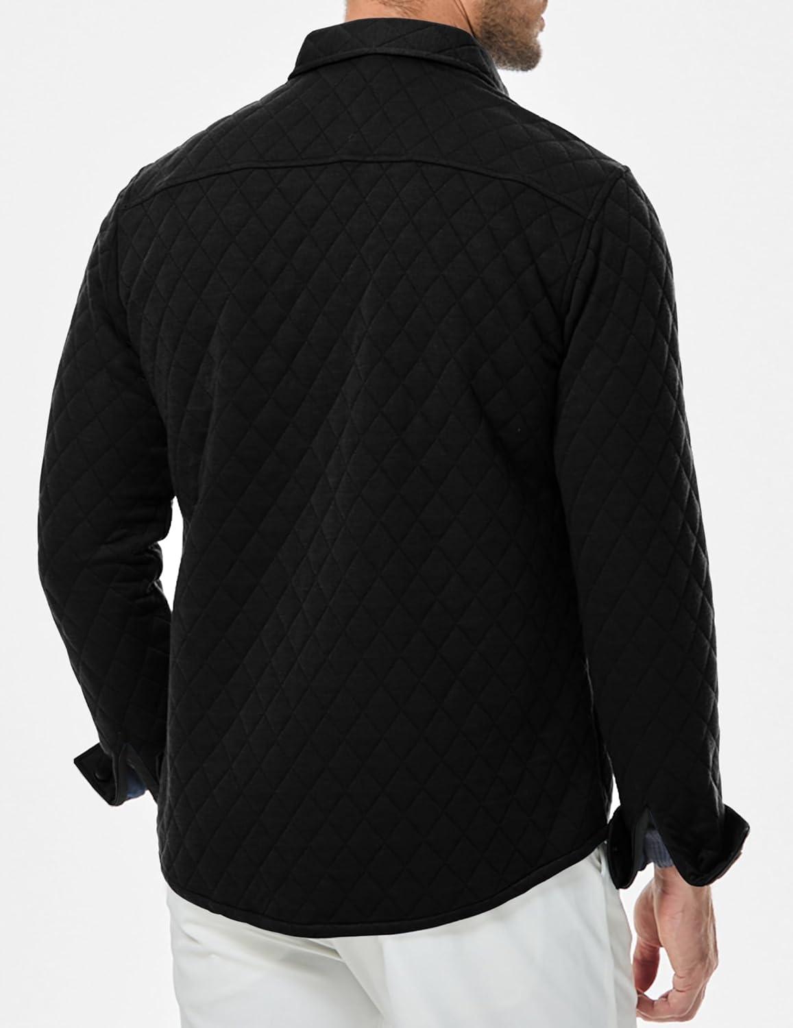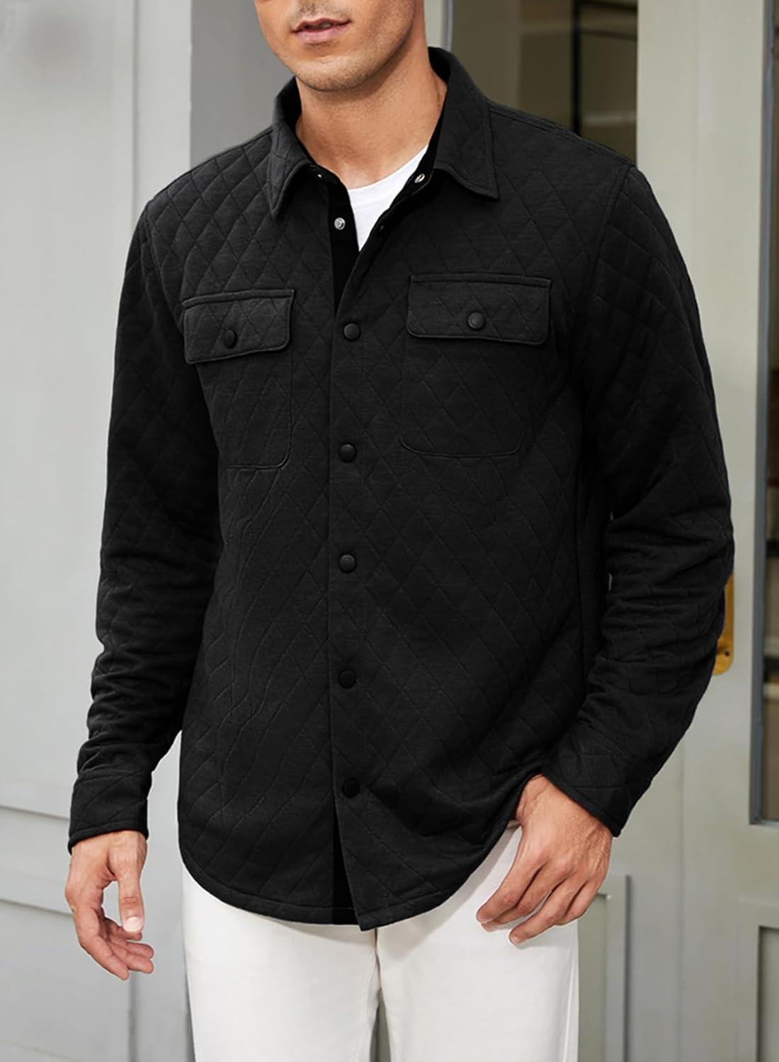 JMIERR Mens Quilted Shirt Jackets Casual Long Sleeve Snap Button Down Shirts with Pockets(A Black)