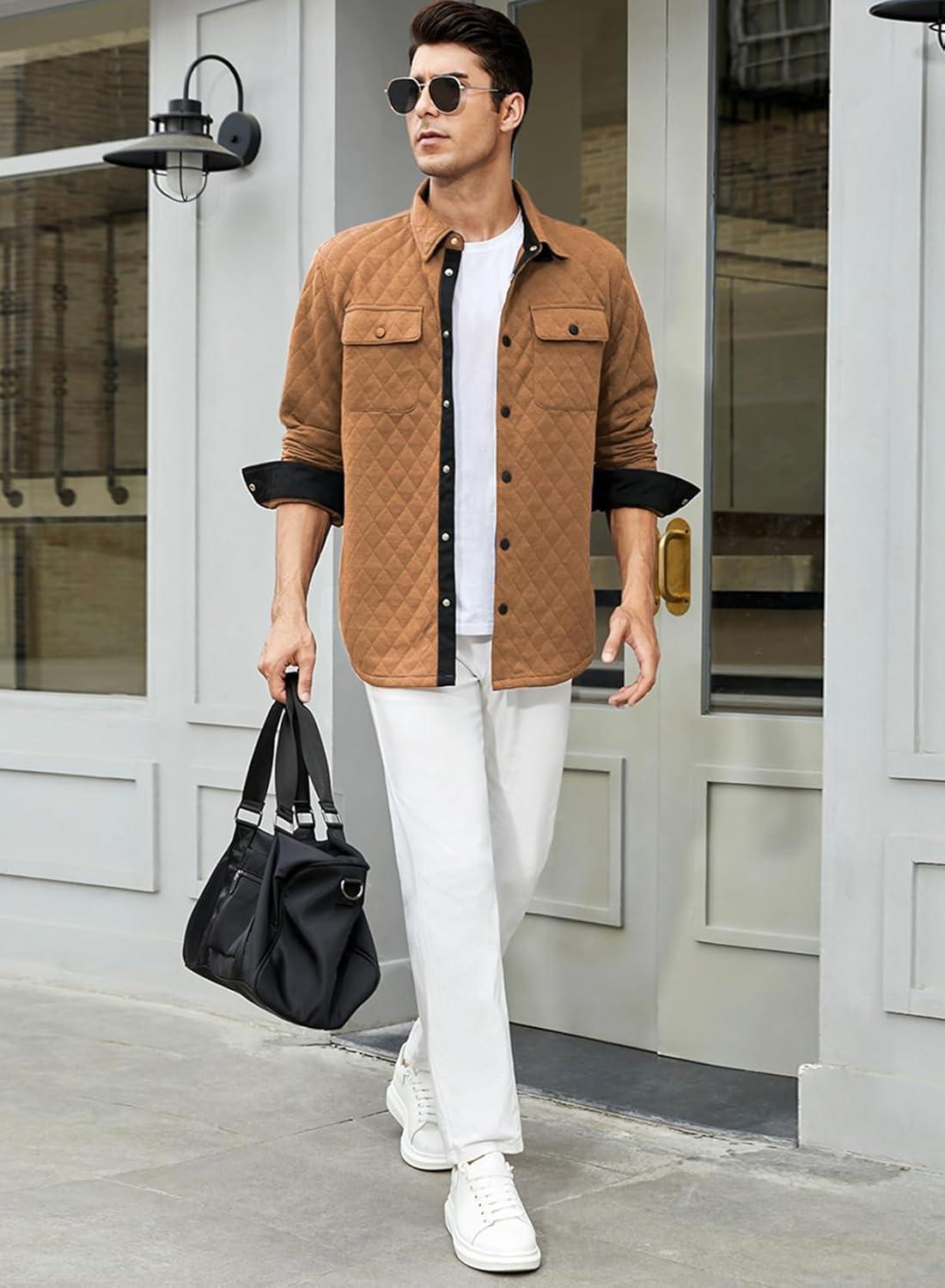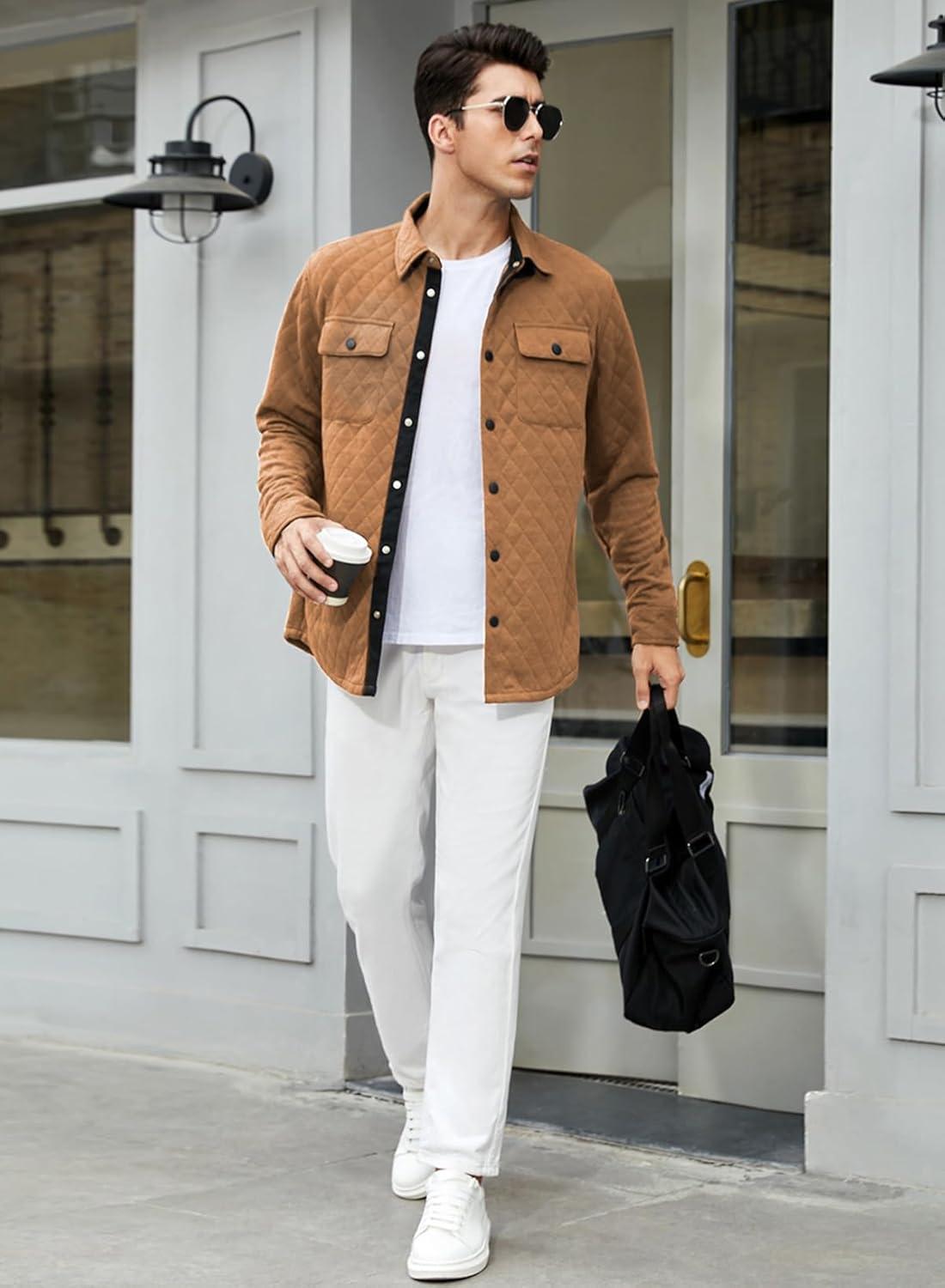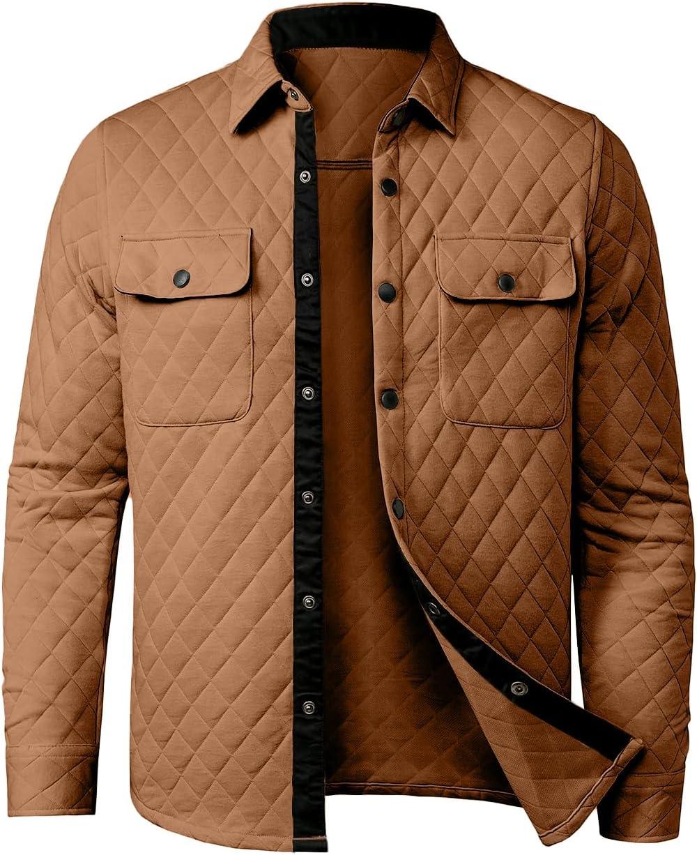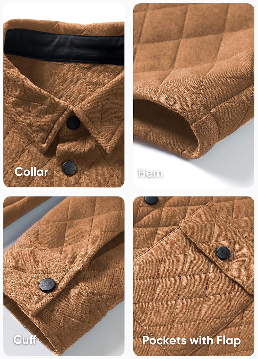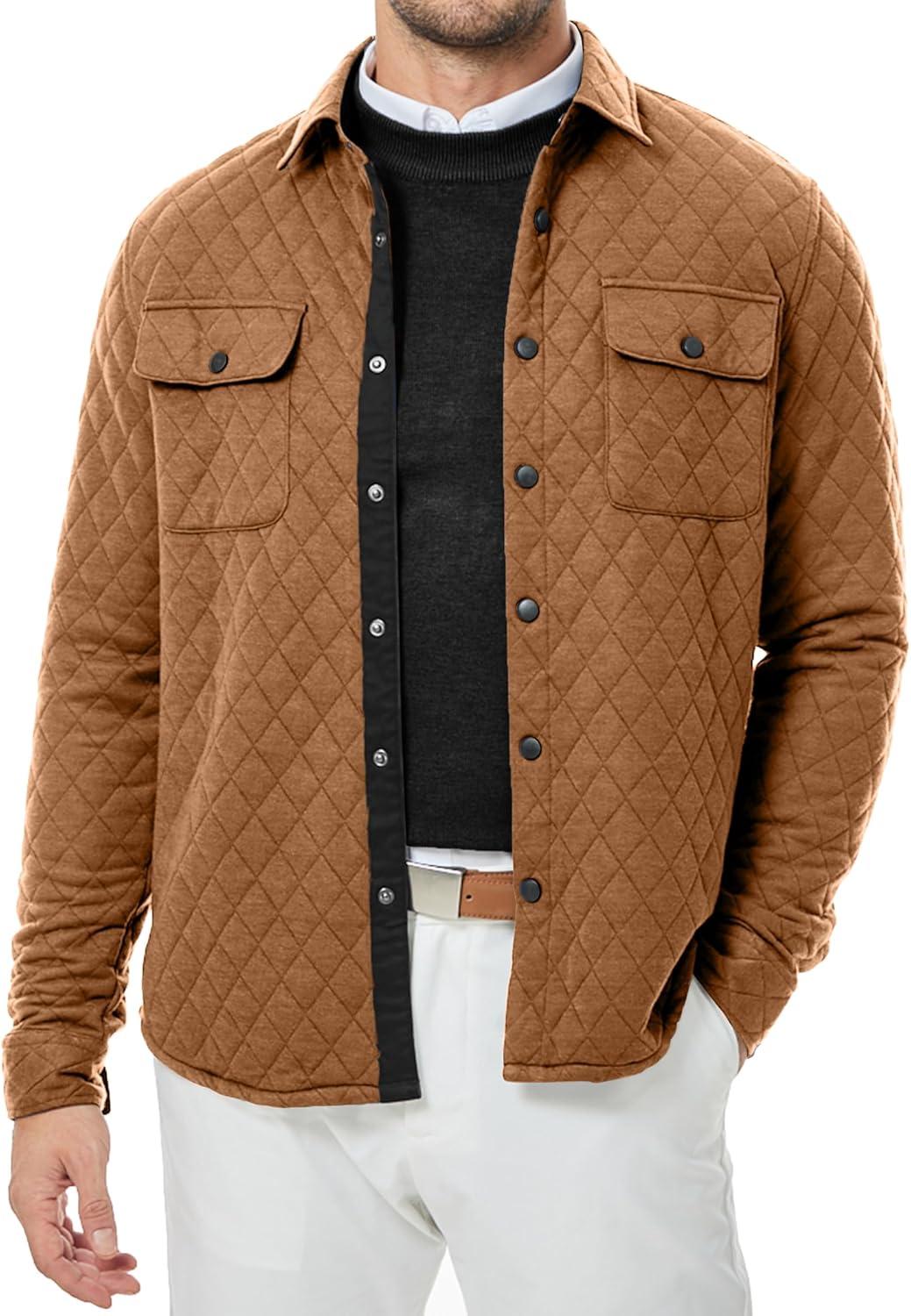 JMIERR Mens Quilted Shirt Jackets Casual Long Sleeve Snap Button Down Shirts with Pockets(A Camel)