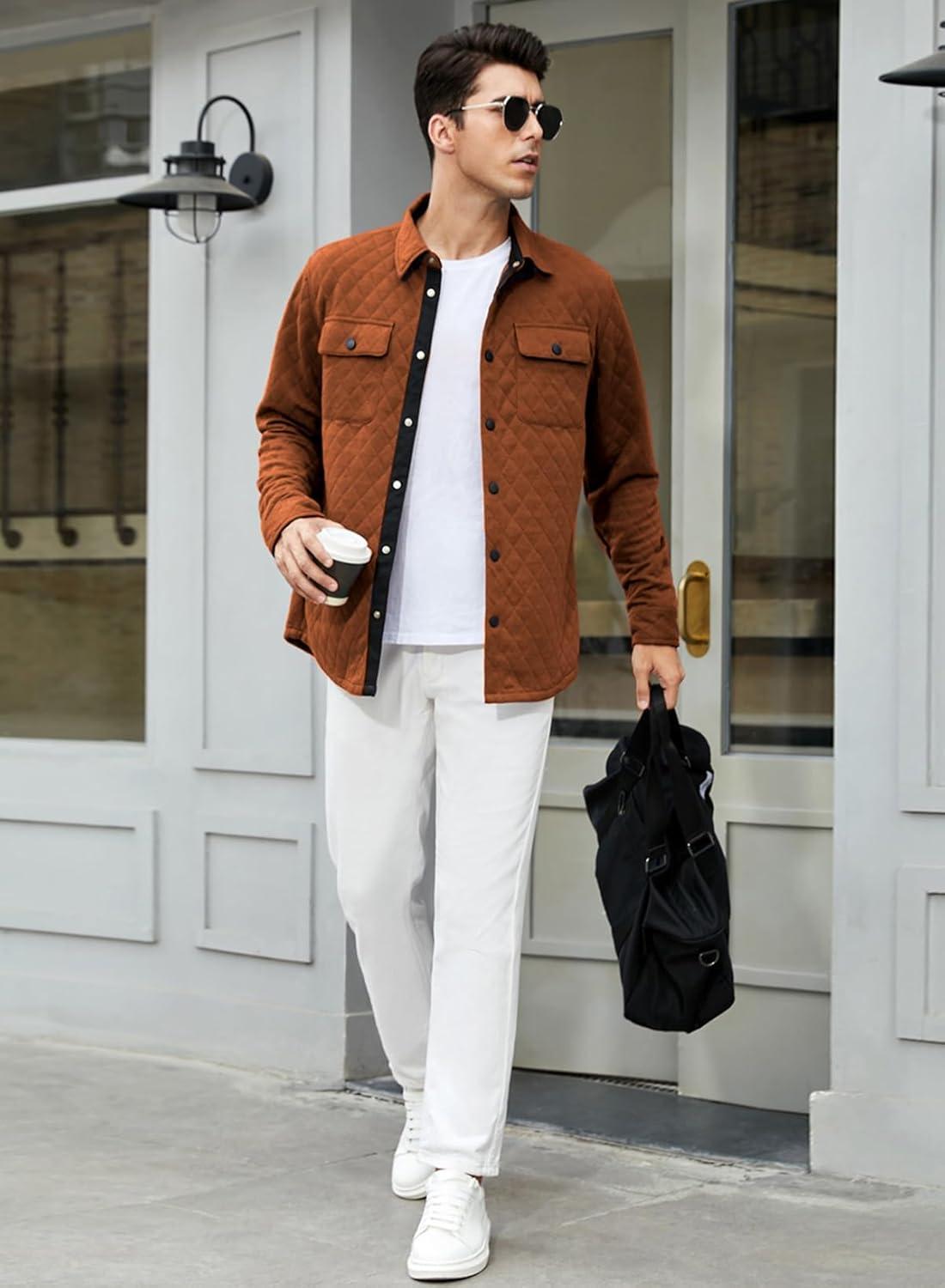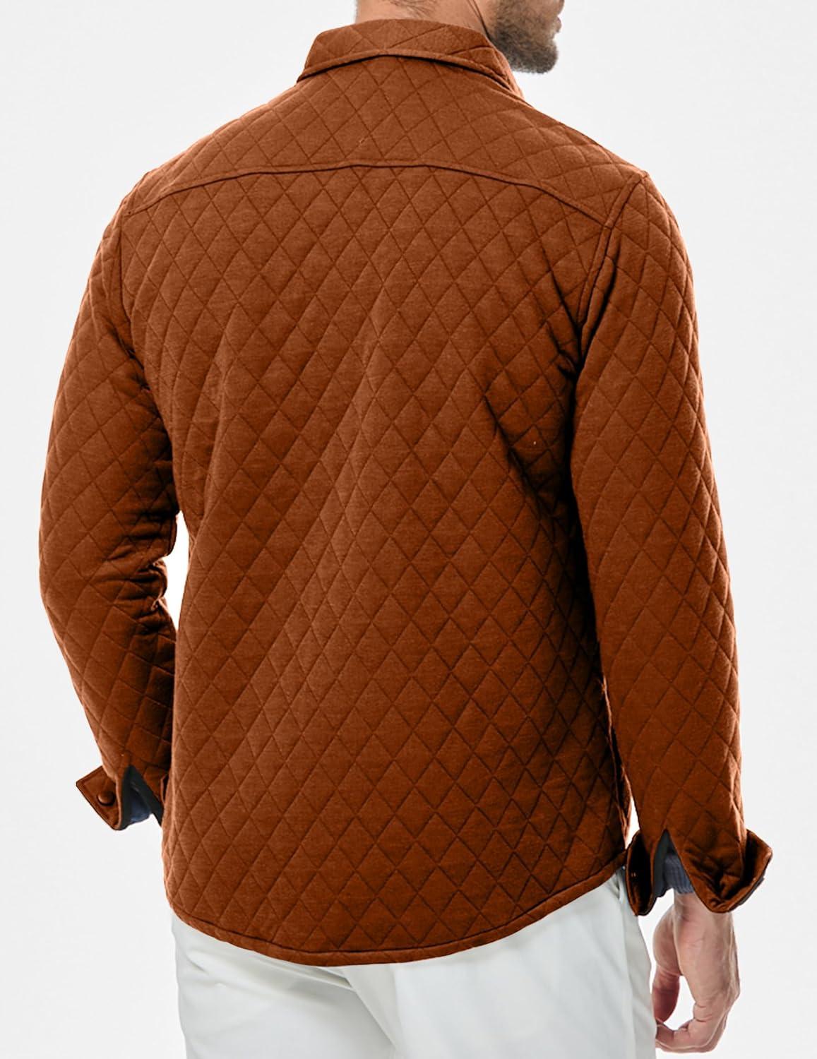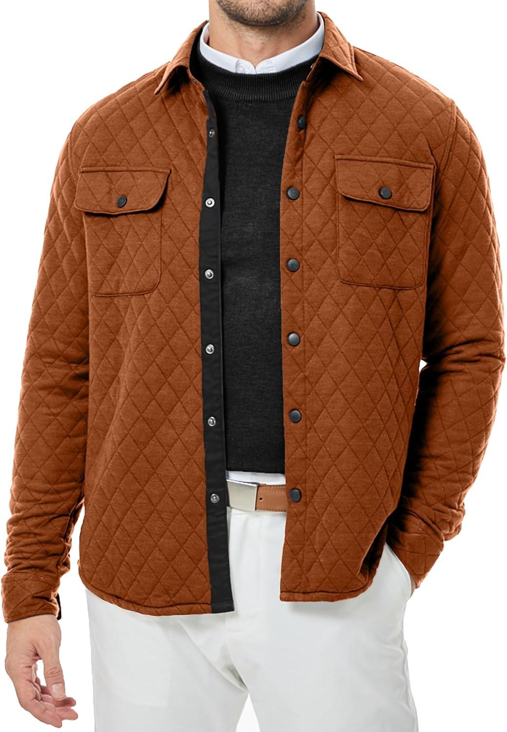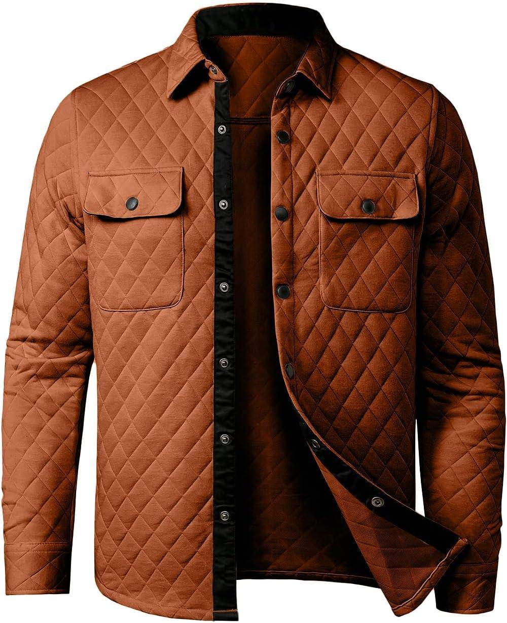 JMIERR Mens Quilted Shirt Jackets Casual Long Sleeve Snap Button Down Shirts with Pockets(A Gold)