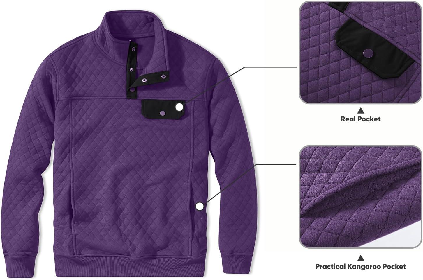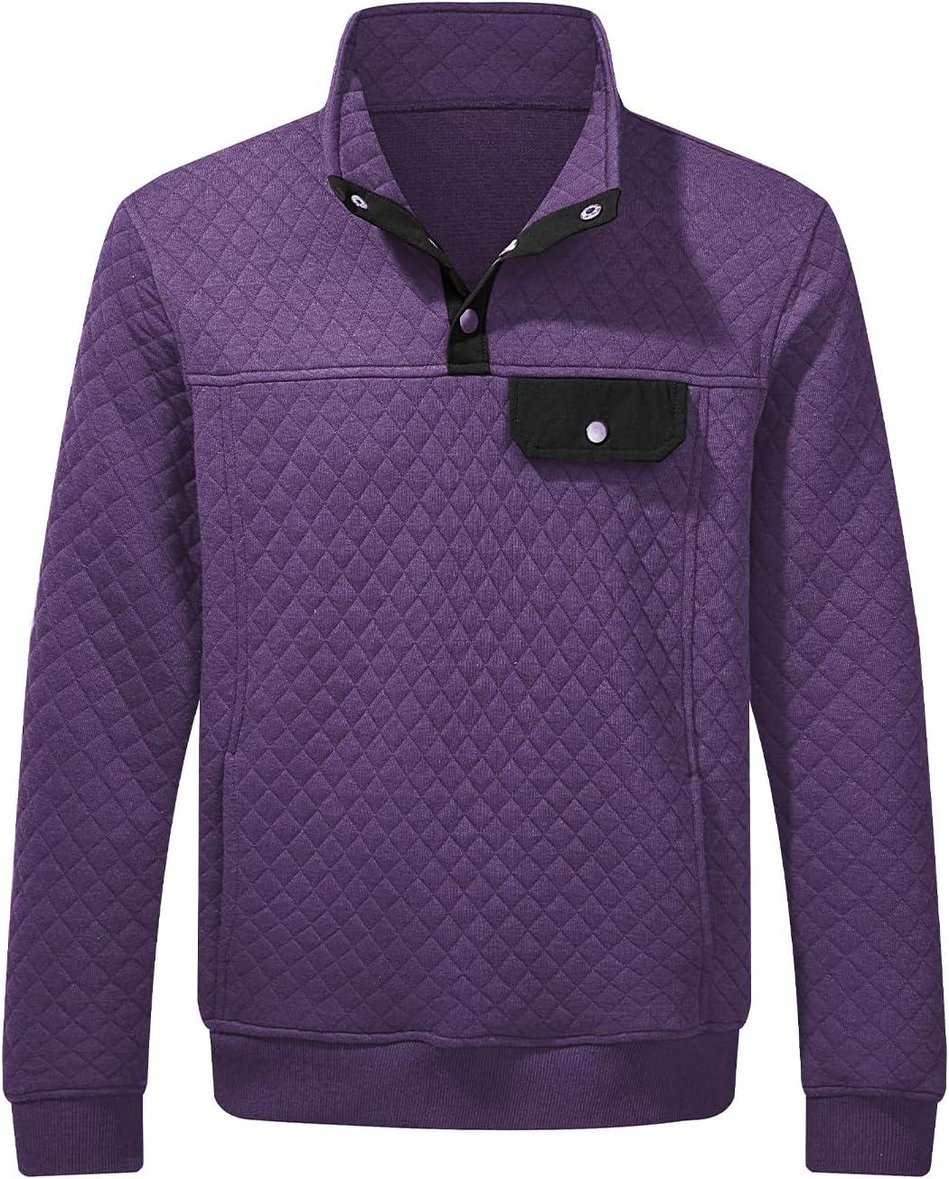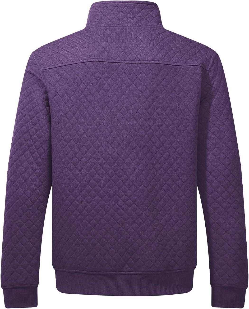 JMIERR Men’s Quilted Sweatshirt Casual Long Sleeve Outdoor Stand Collar Button Pullover Sweatshirts(D Purple)