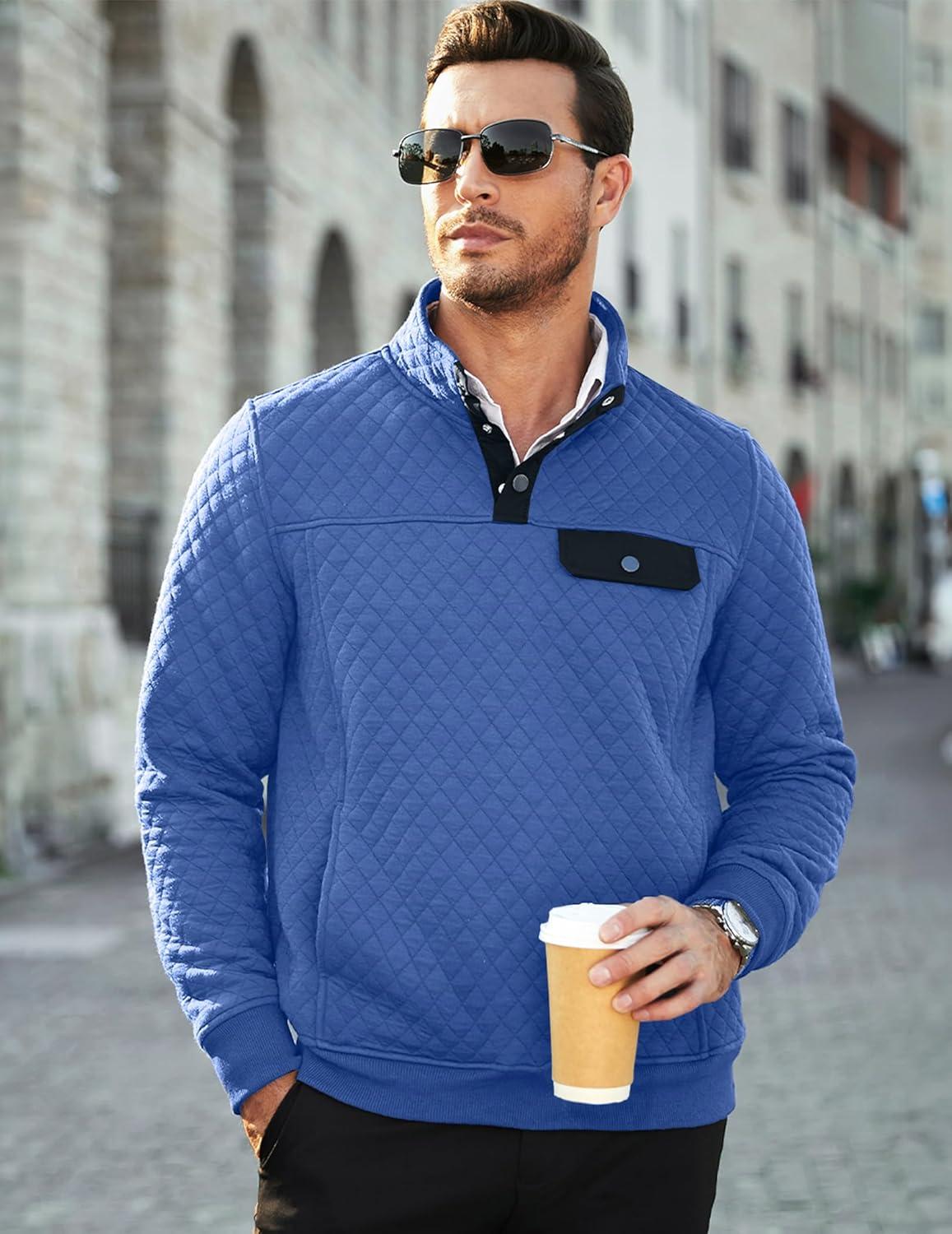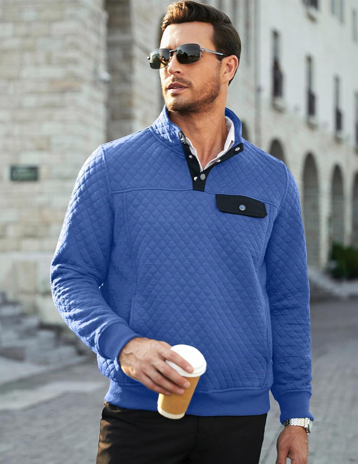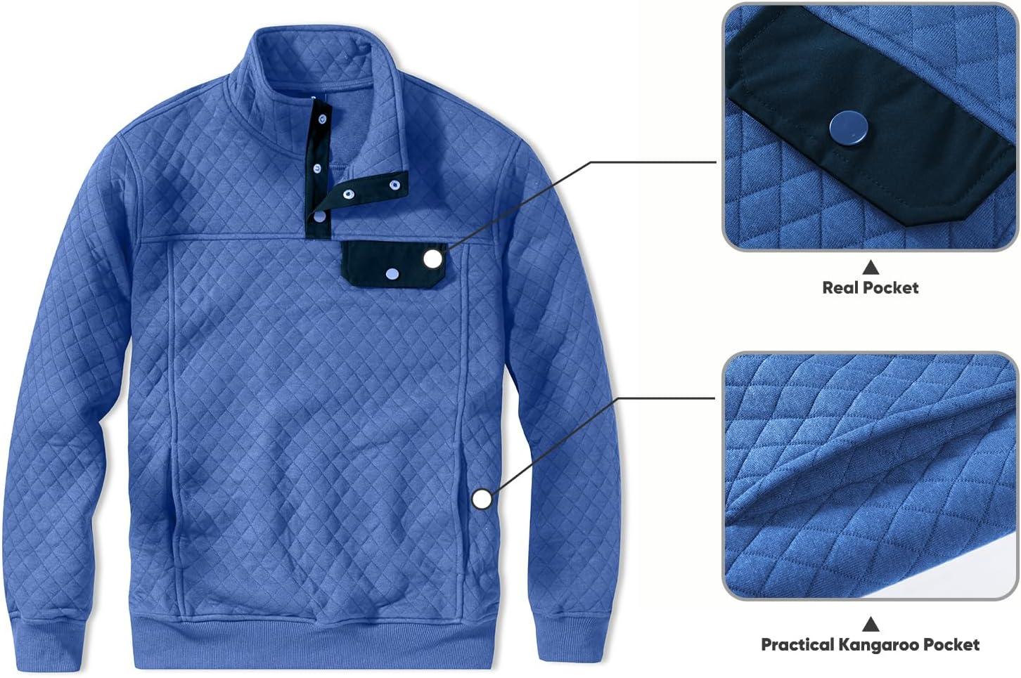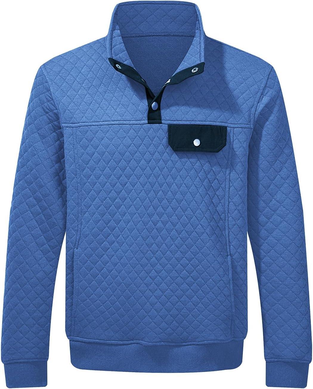 JMIERR Men’s Quilted Sweatshirt Casual Long Sleeve Outdoor Stand Collar Button Pullover Sweatshirts(D Sky Blue)