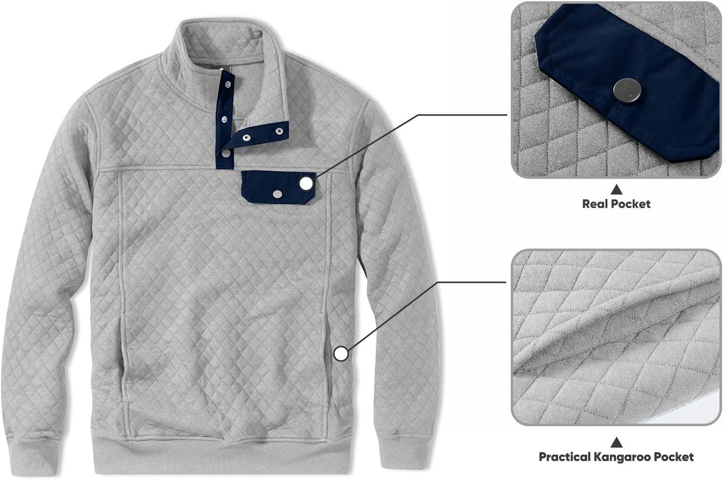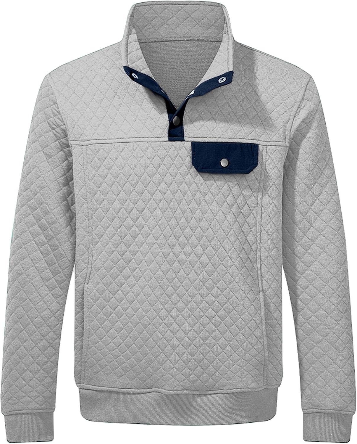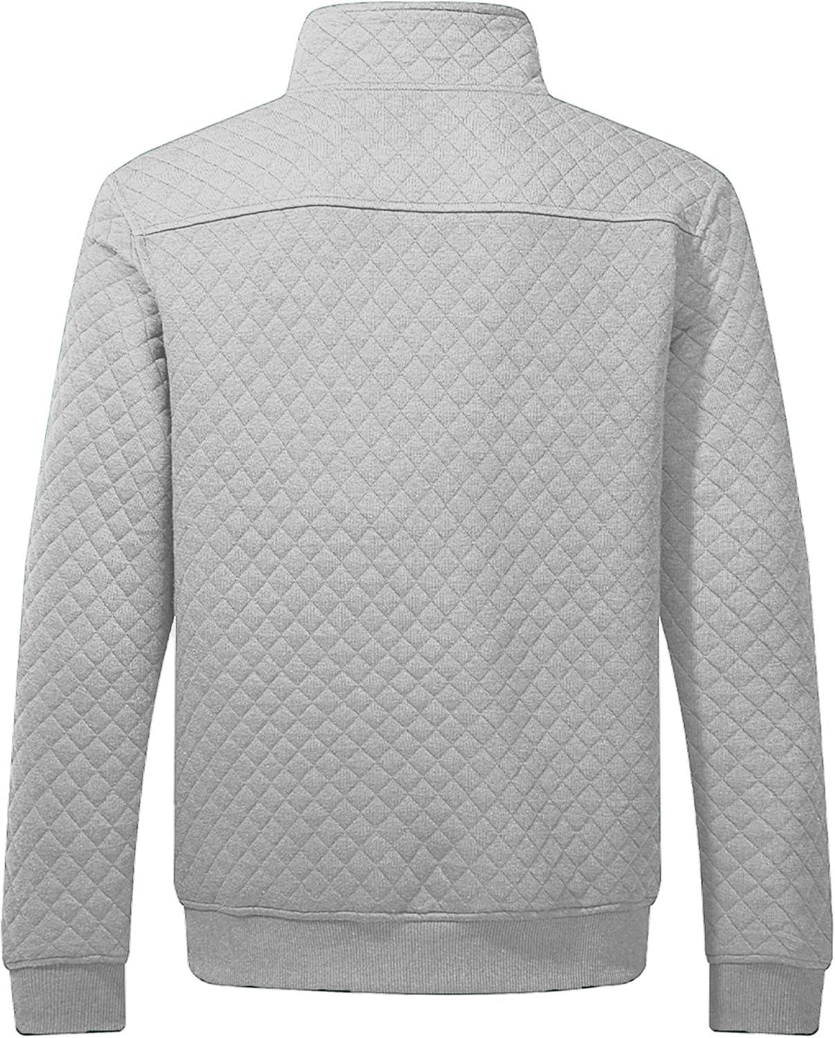 JMIERR Men’s Quilted Sweatshirt Casual Long Sleeve Outdoor Stand Collar Button Pullover Sweatshirts(Z Light Grey)
