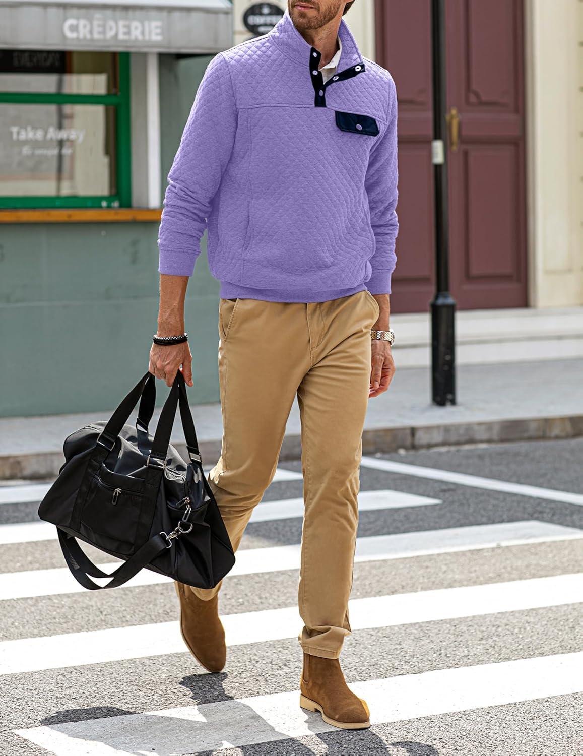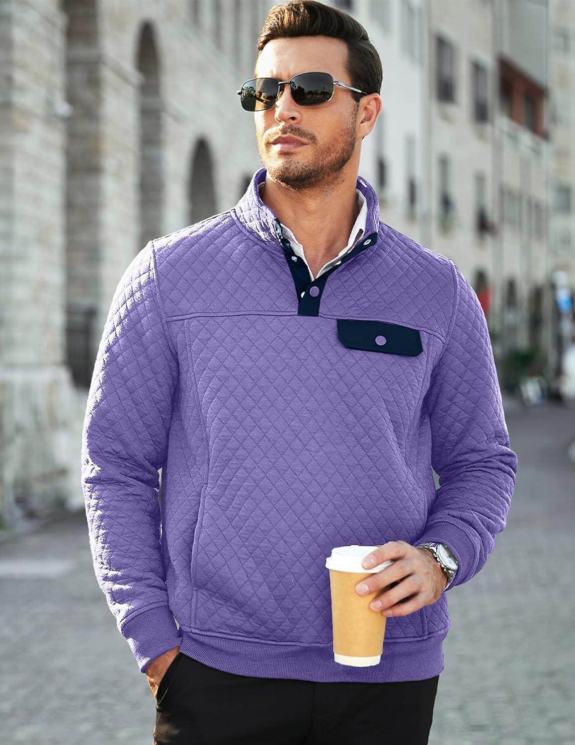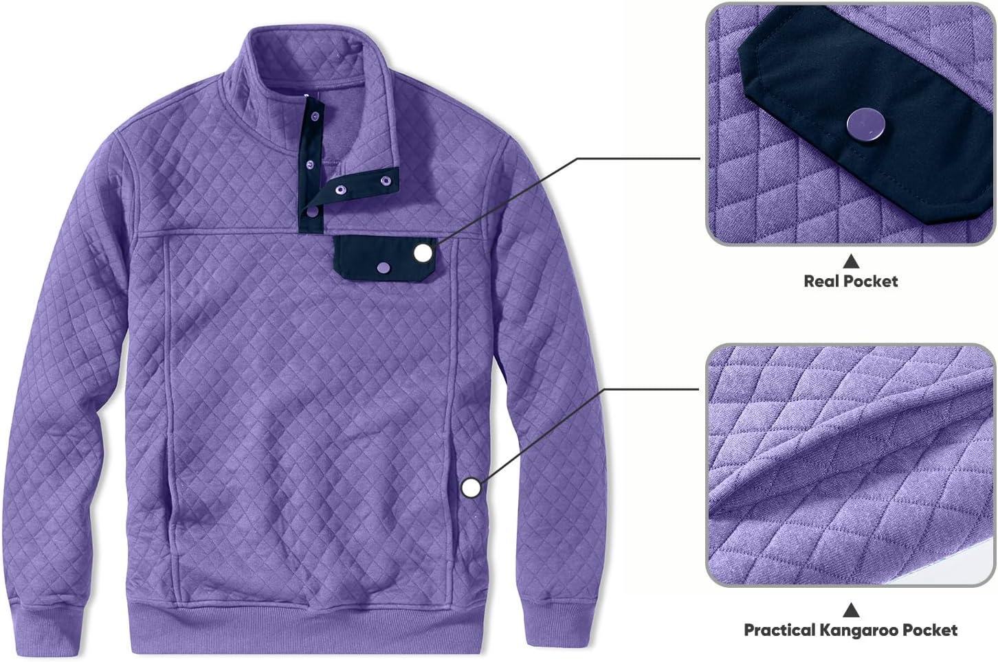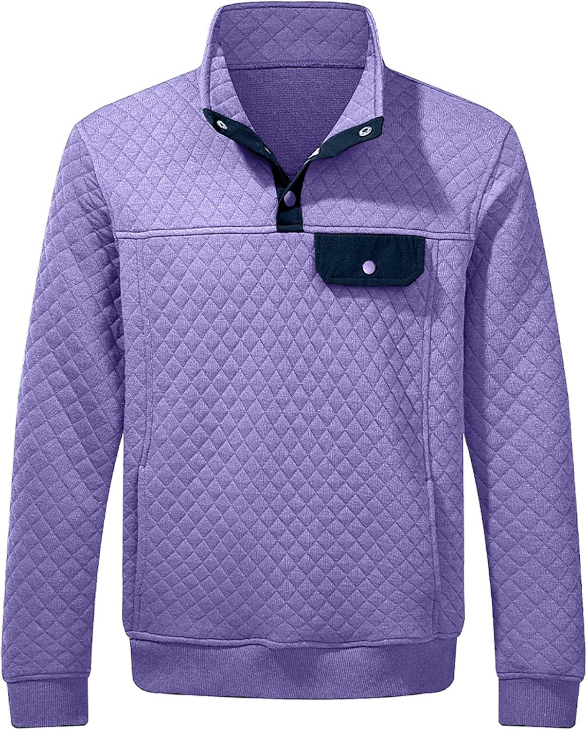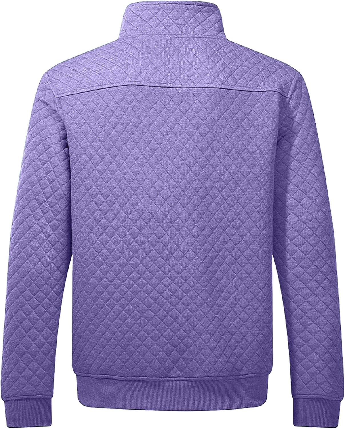JMIERR Men’s Quilted Sweatshirt Casual Long Sleeve Outdoor Stand Collar Button Pullover Sweatshirts(Z Light Purple)