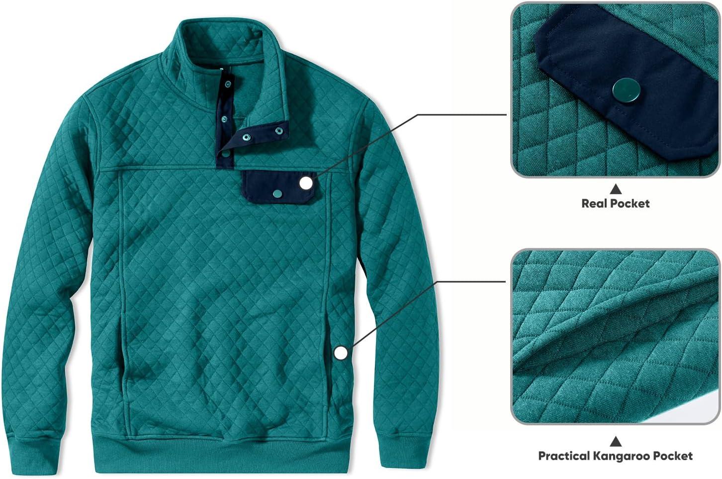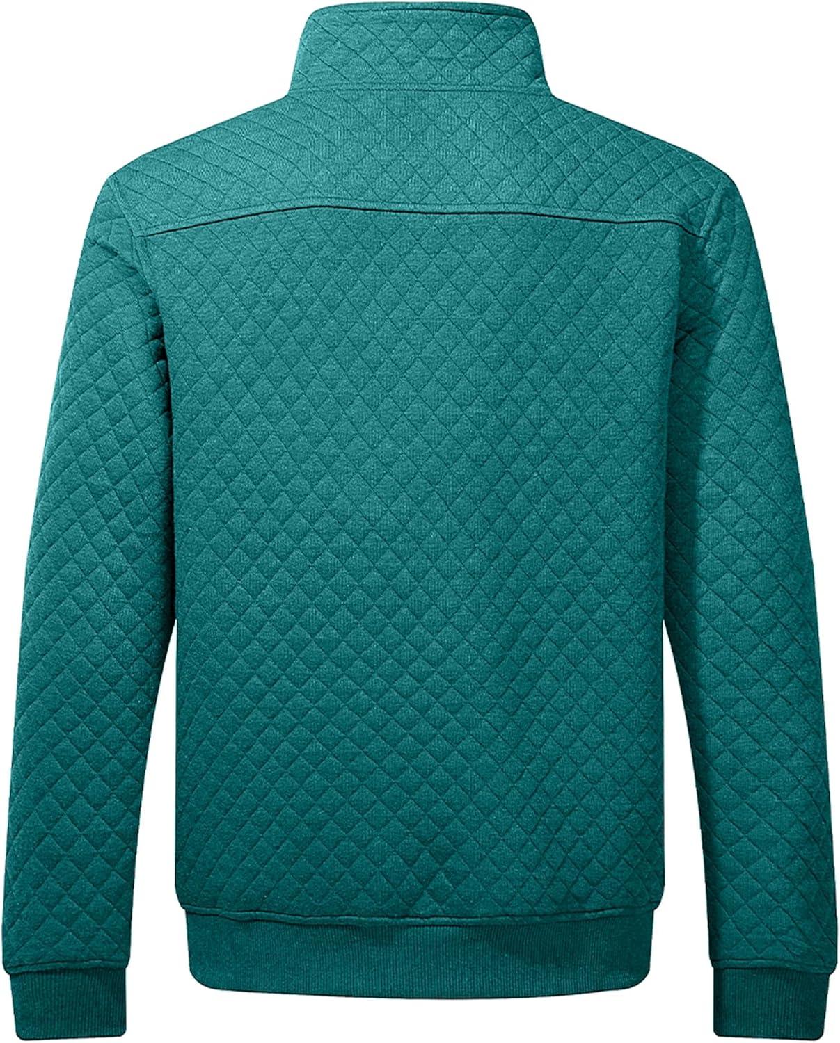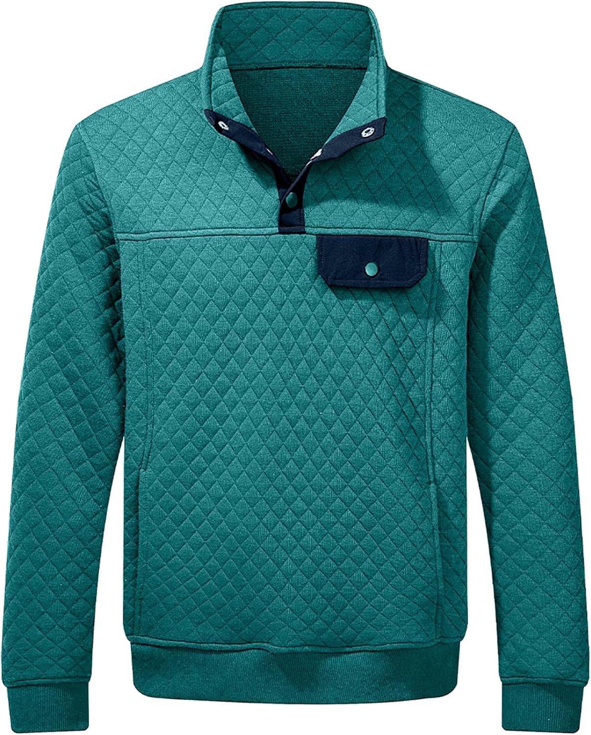 JMIERR Men’s Quilted Sweatshirt Casual Long Sleeve Outdoor Stand Collar Button Pullover Sweatshirts(Z Teal Green)