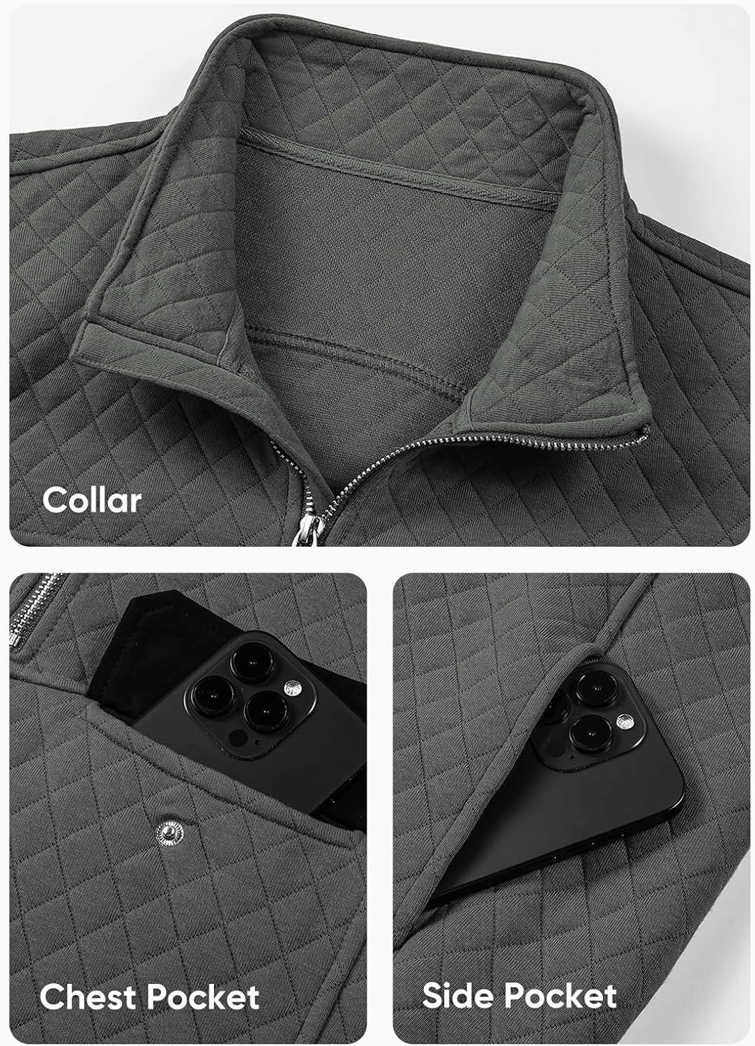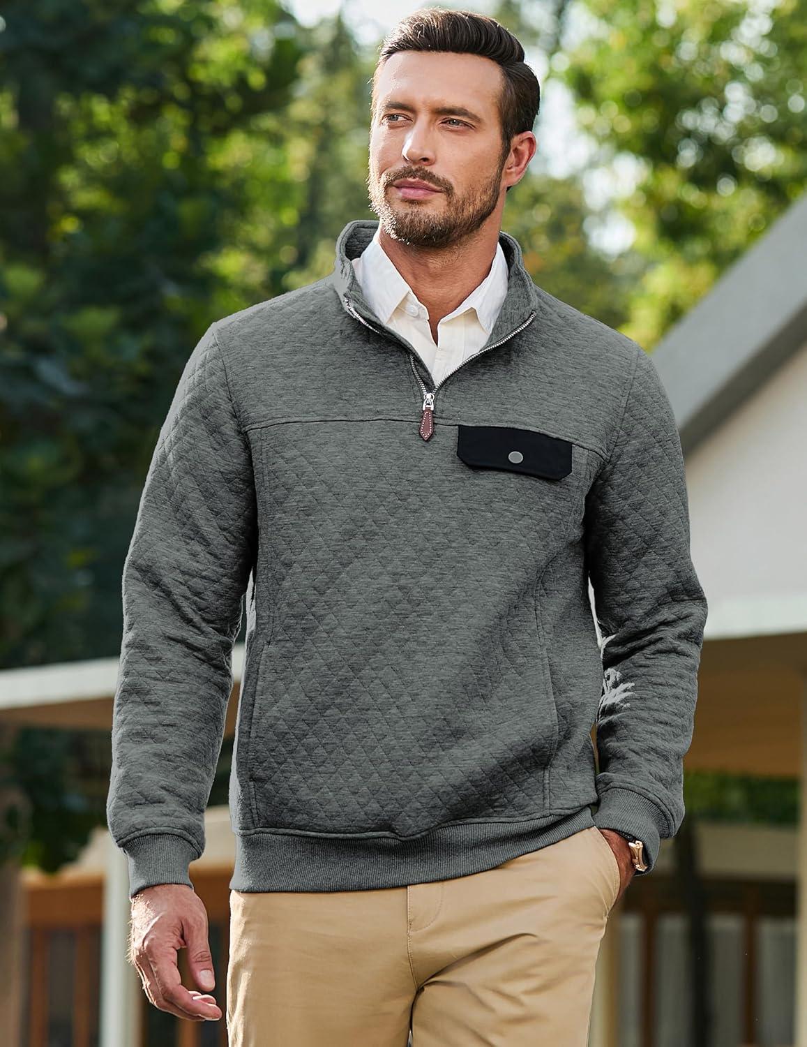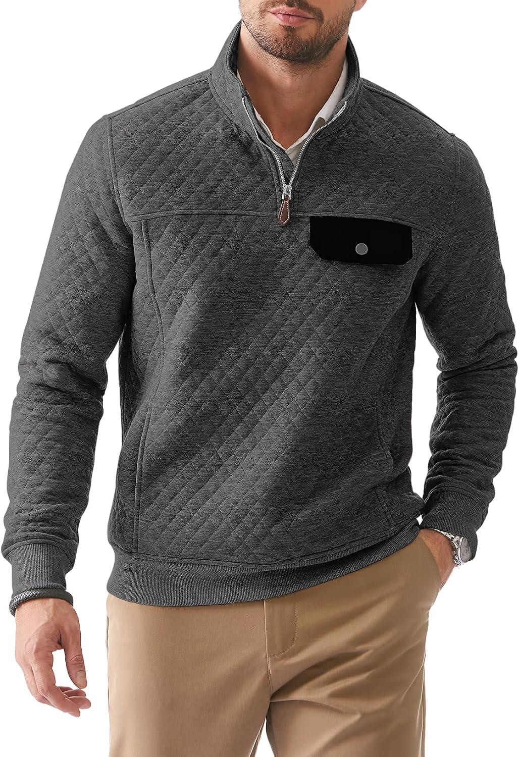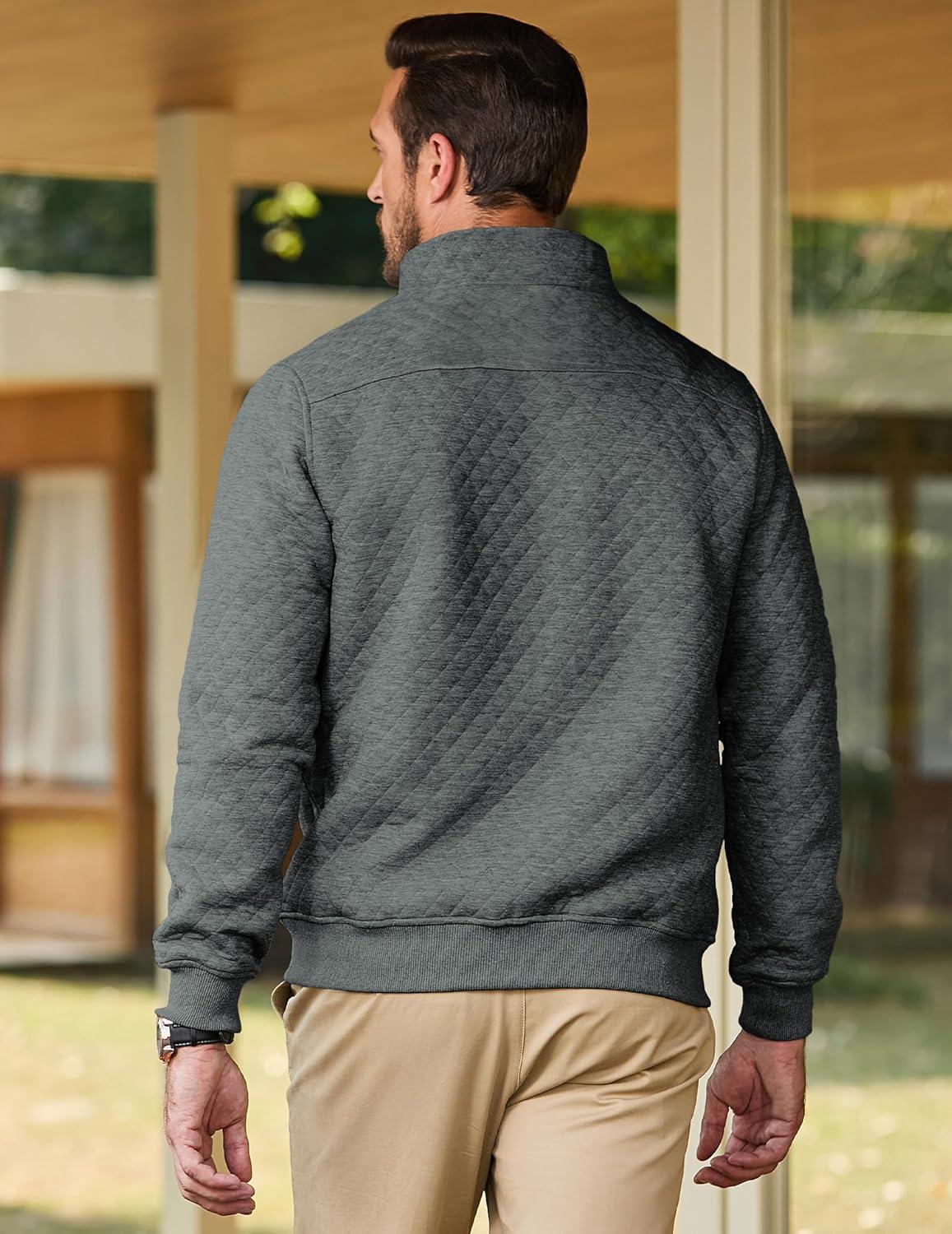 JMIERR Men’s Quilted Sweatshirt Casual Long Sleeve Outdoor Stand Collar Quarter-Zip Pullover Sweatshirts(A Dark Grey)