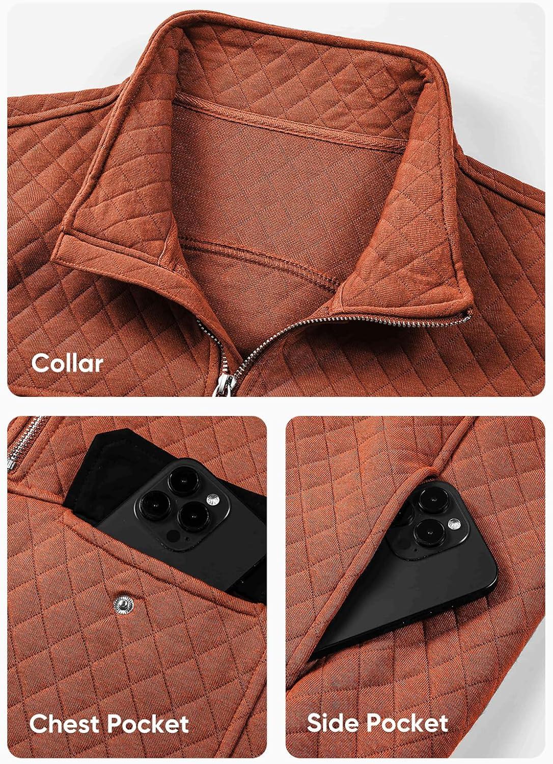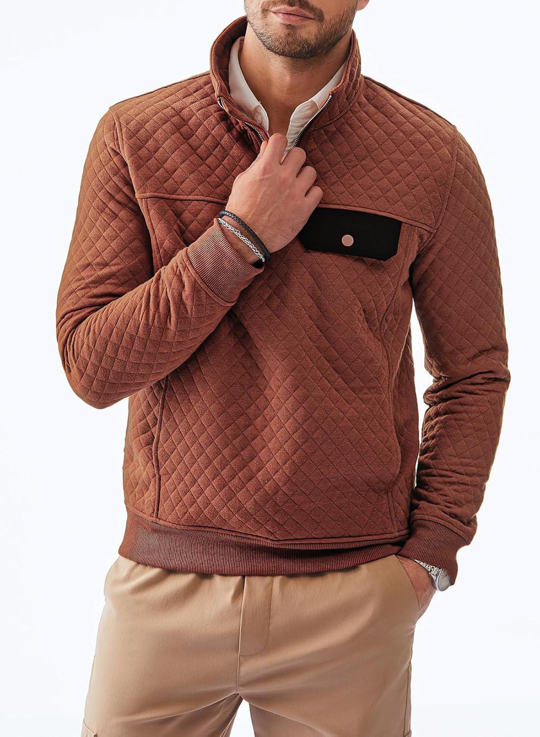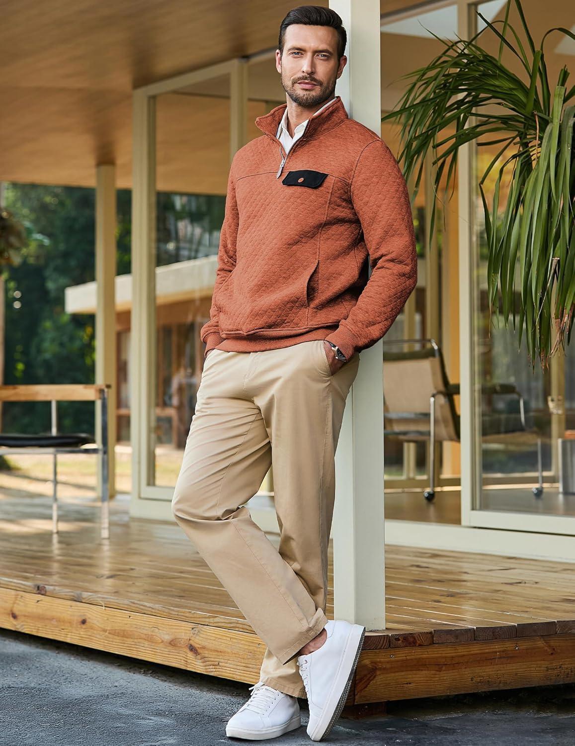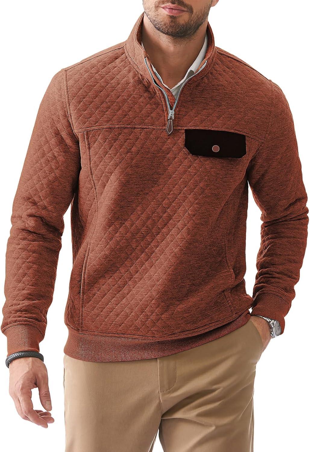 JMIERR Men’s Quilted Sweatshirt Casual Long Sleeve Outdoor Stand Collar Quarter-Zip Pullover Sweatshirts(A Orange)