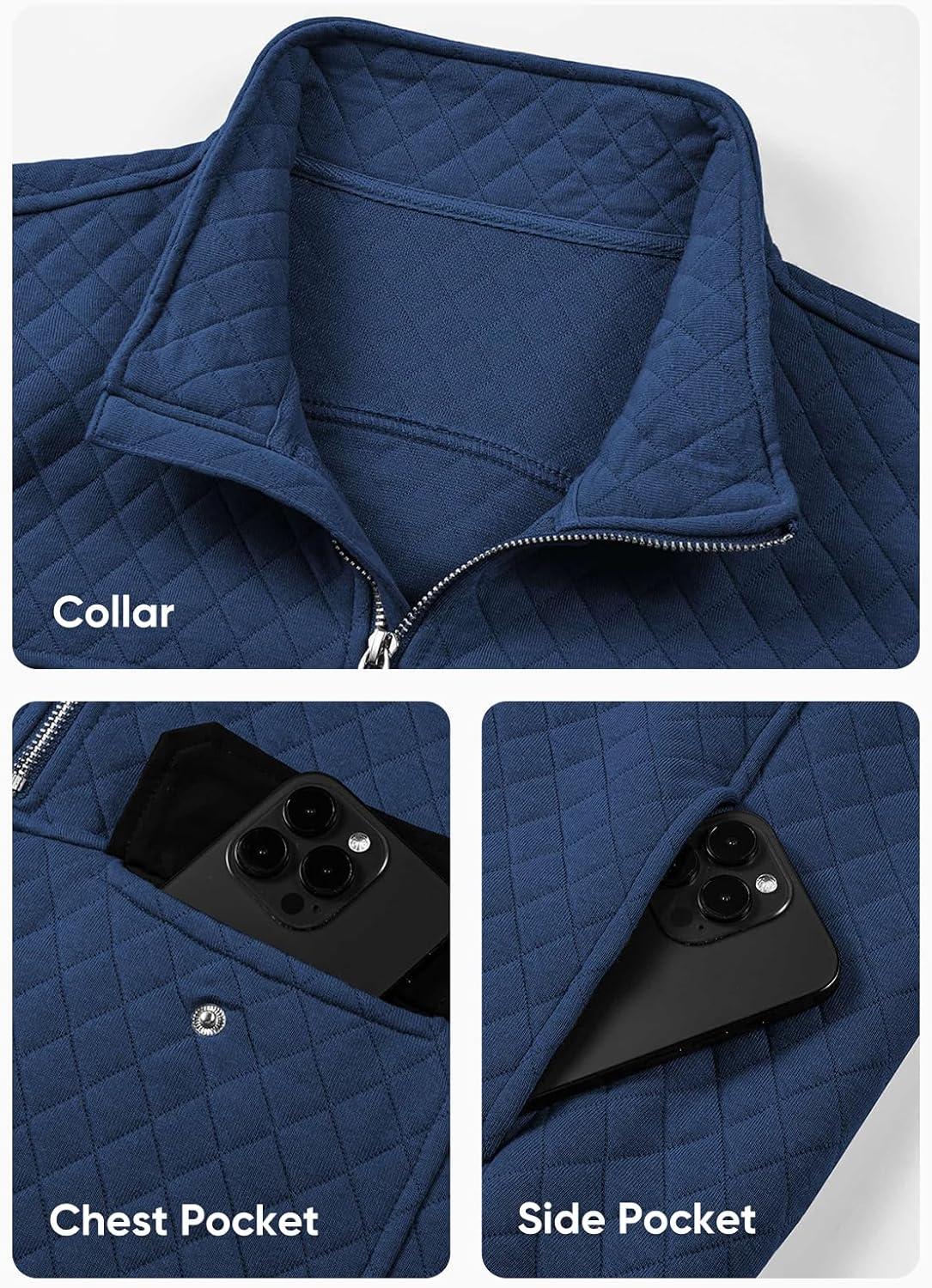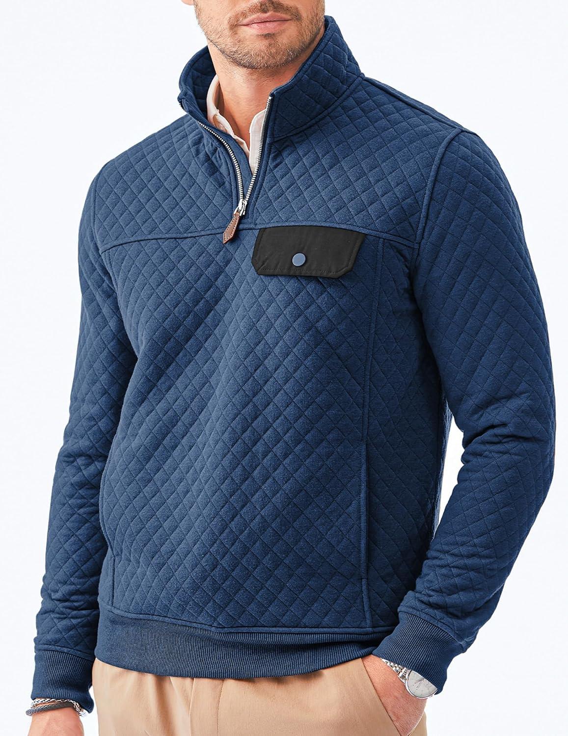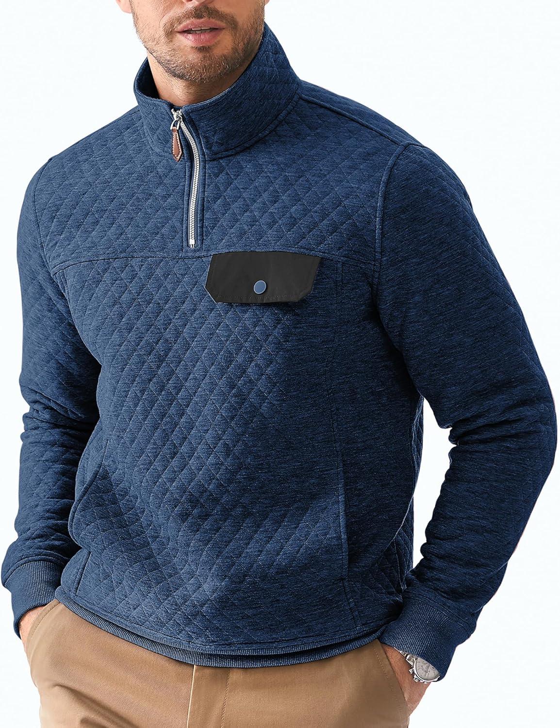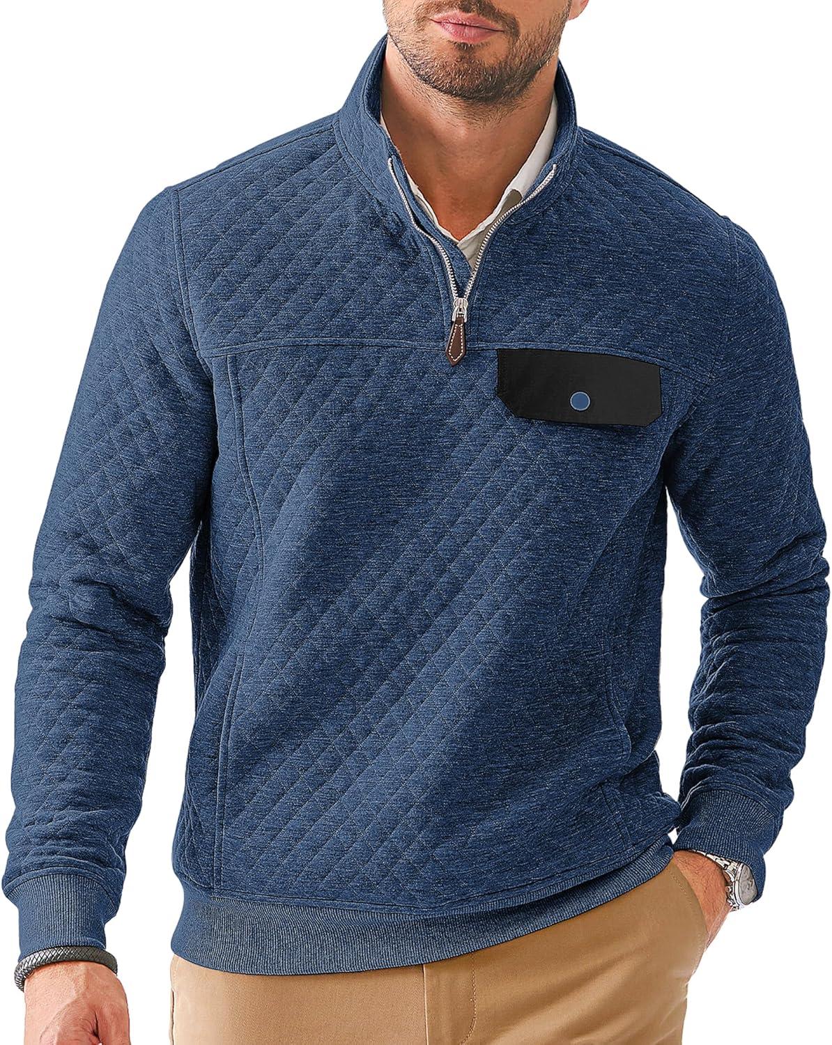 JMIERR Men’s Quilted Sweatshirt Casual Long Sleeve Outdoor Stand Collar Quarter-Zip Pullover Sweatshirts(Sail Blue)