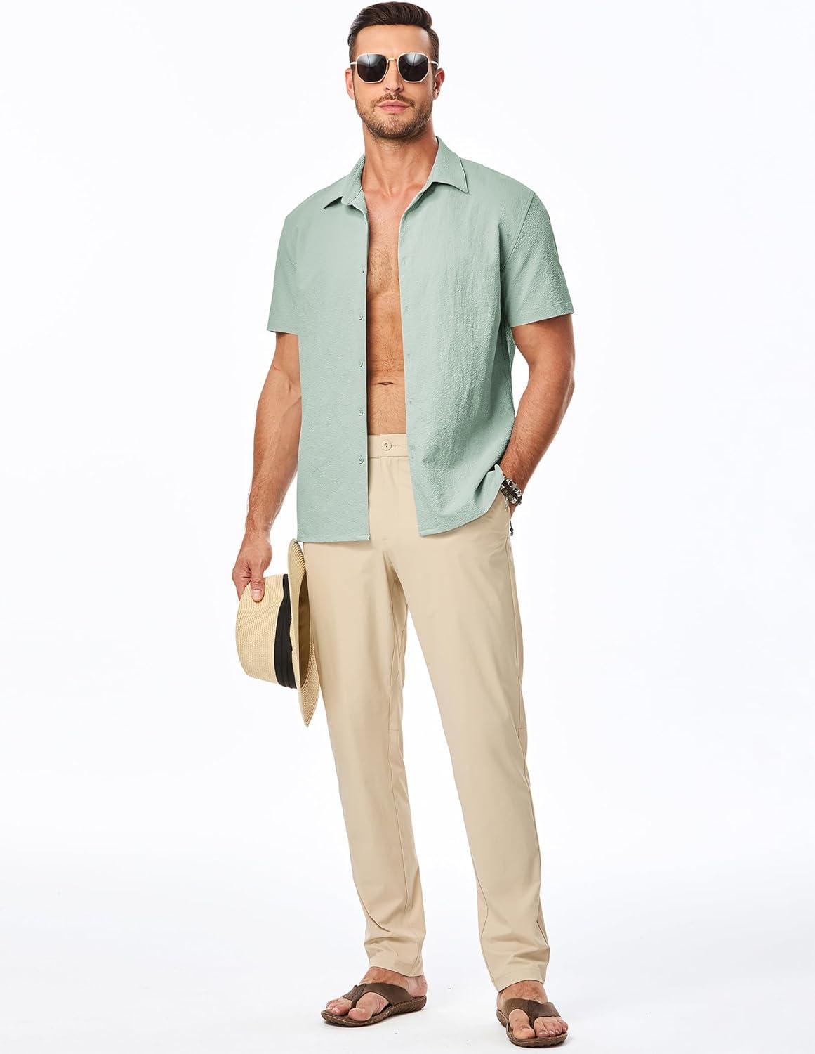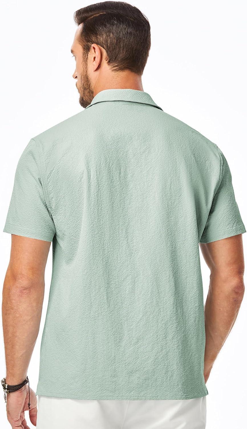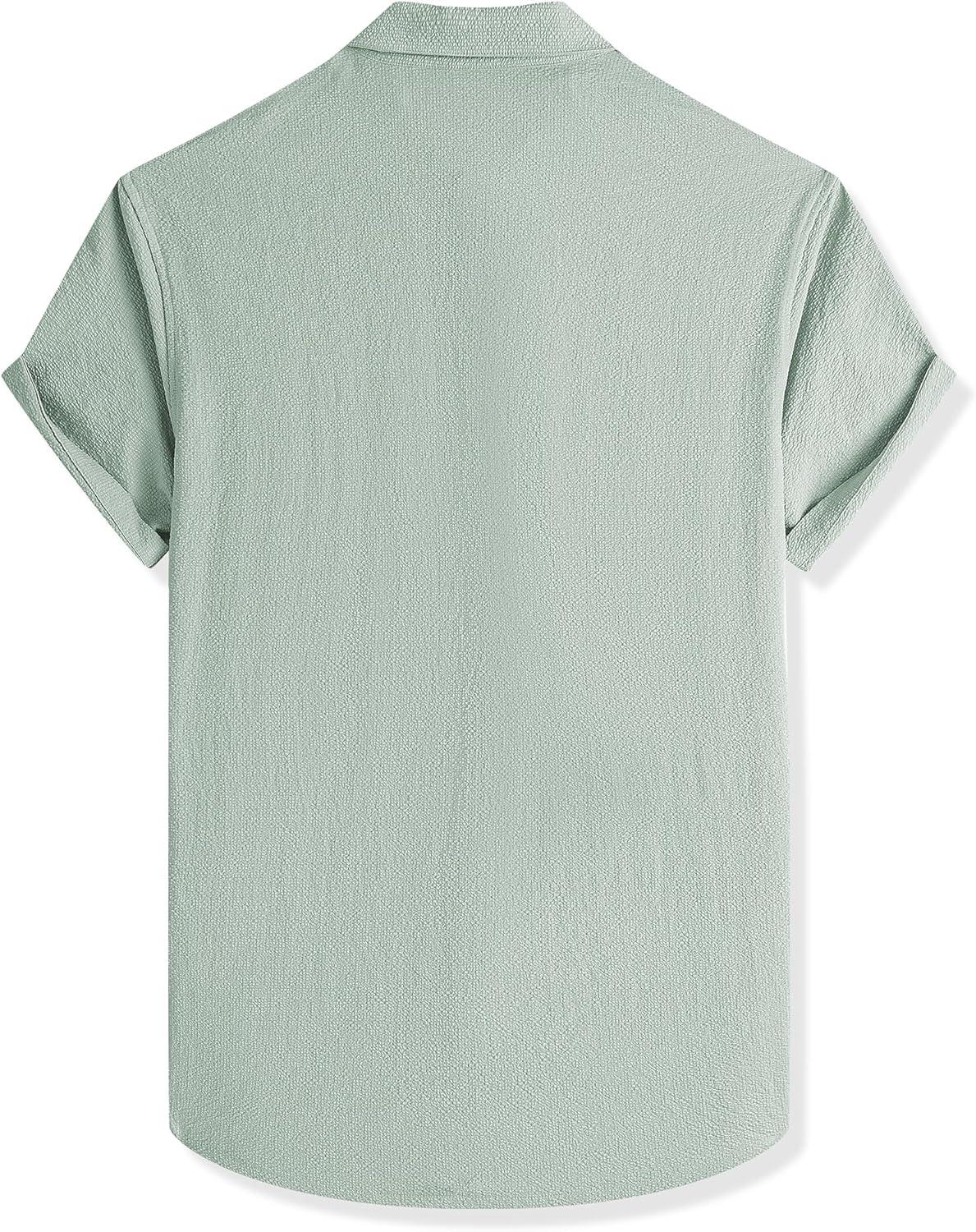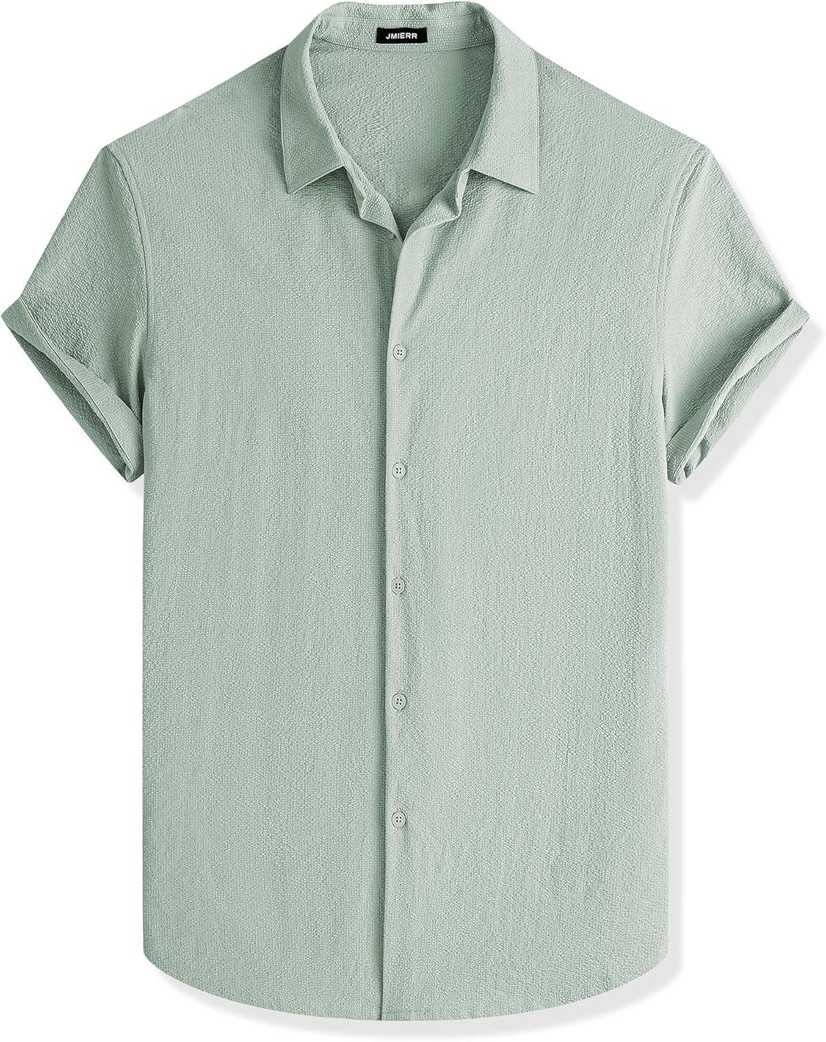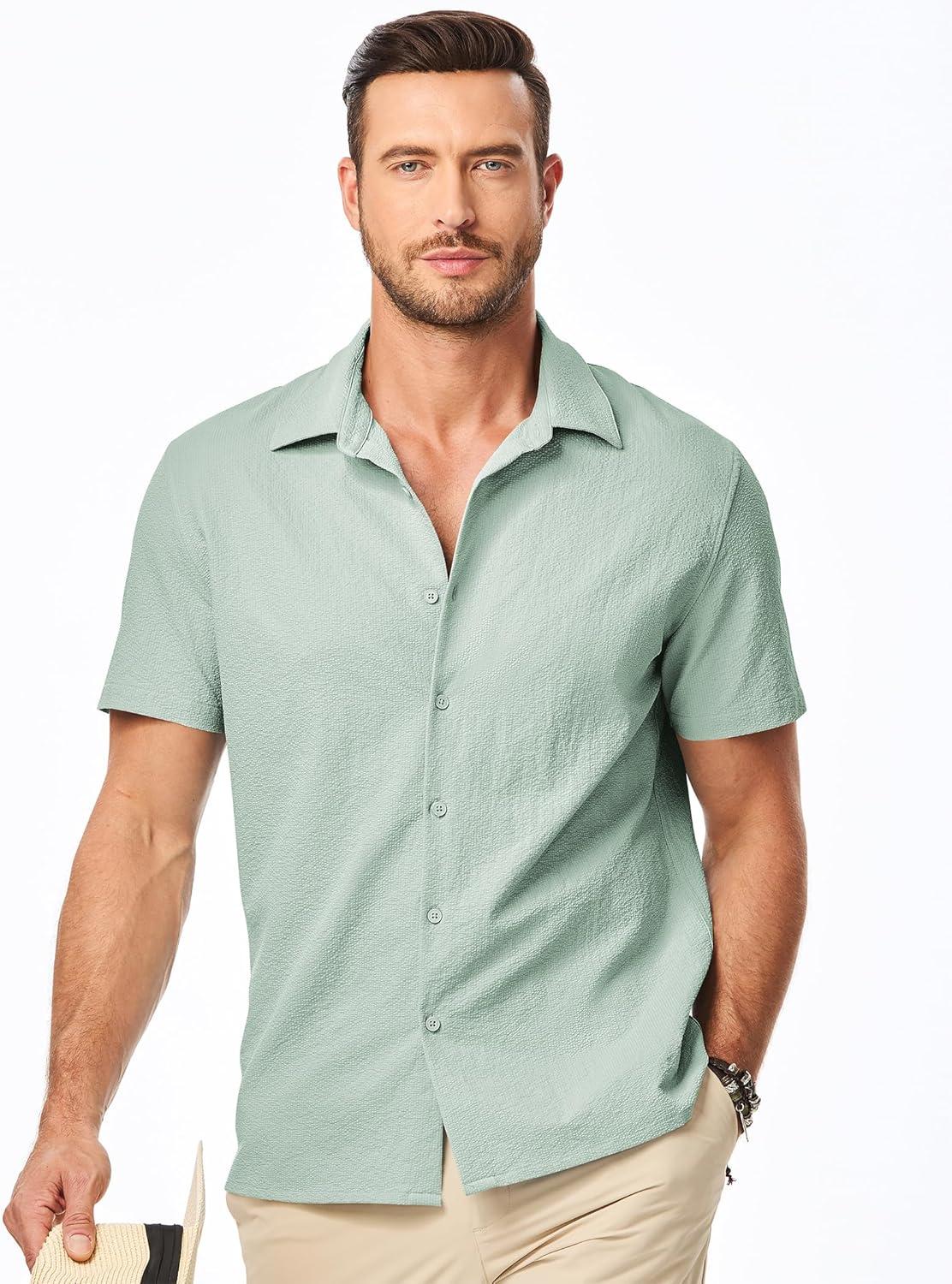 JMIERR Men’s Seersucker Shirts Short Sleeve Casual Button Down Shirt Beach Summer Vacation Wedding Tops(Light Green)