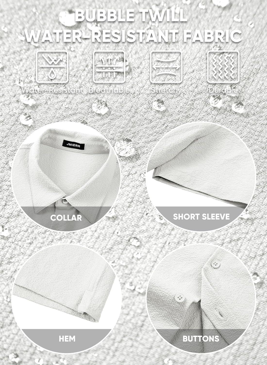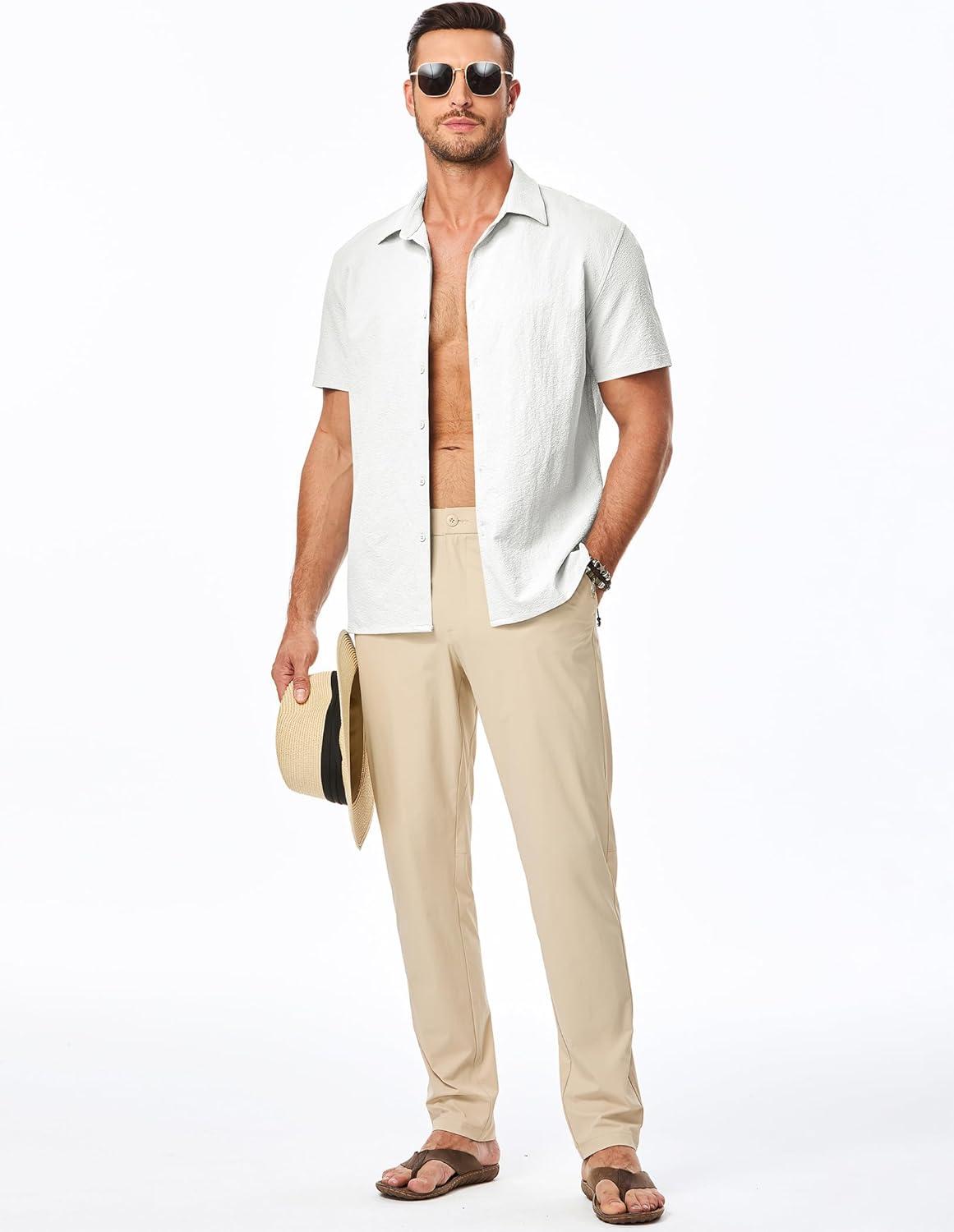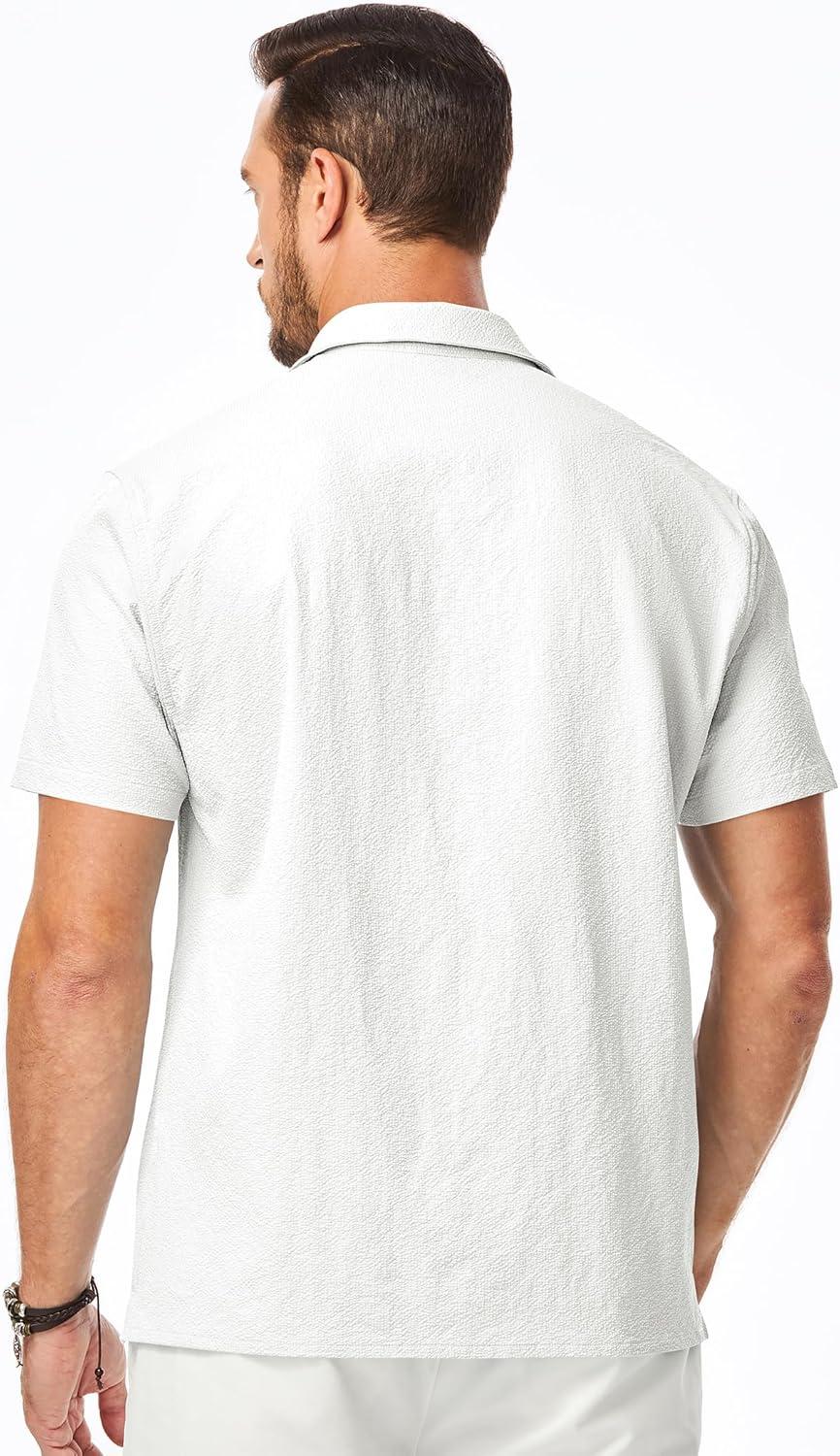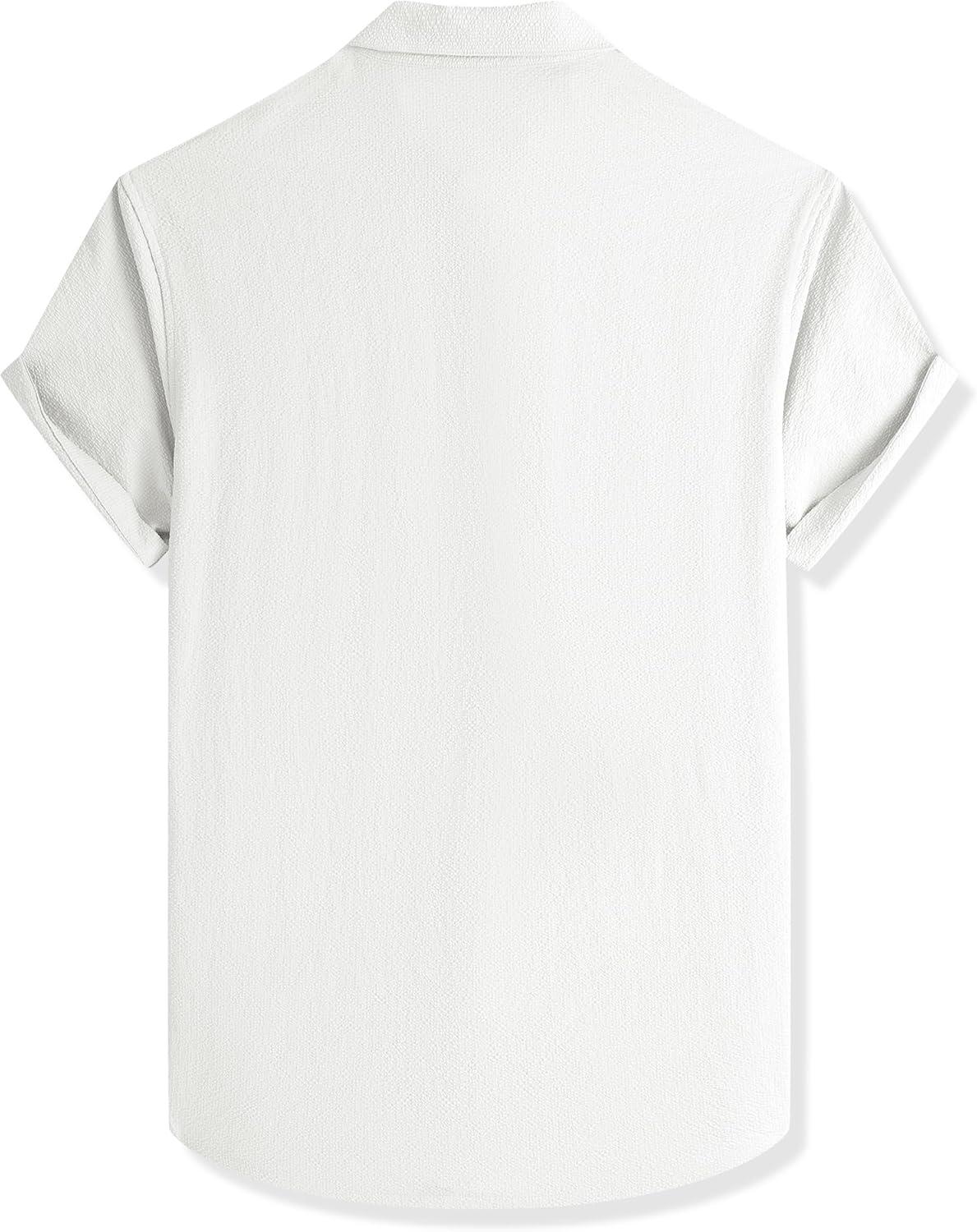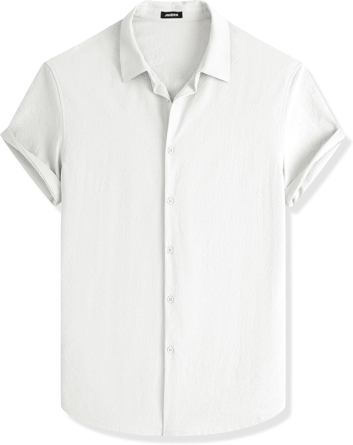 JMIERR Men’s Seersucker Shirts Short Sleeve Casual Button Down Shirt Beach Summer Vacation Wedding Tops(White)