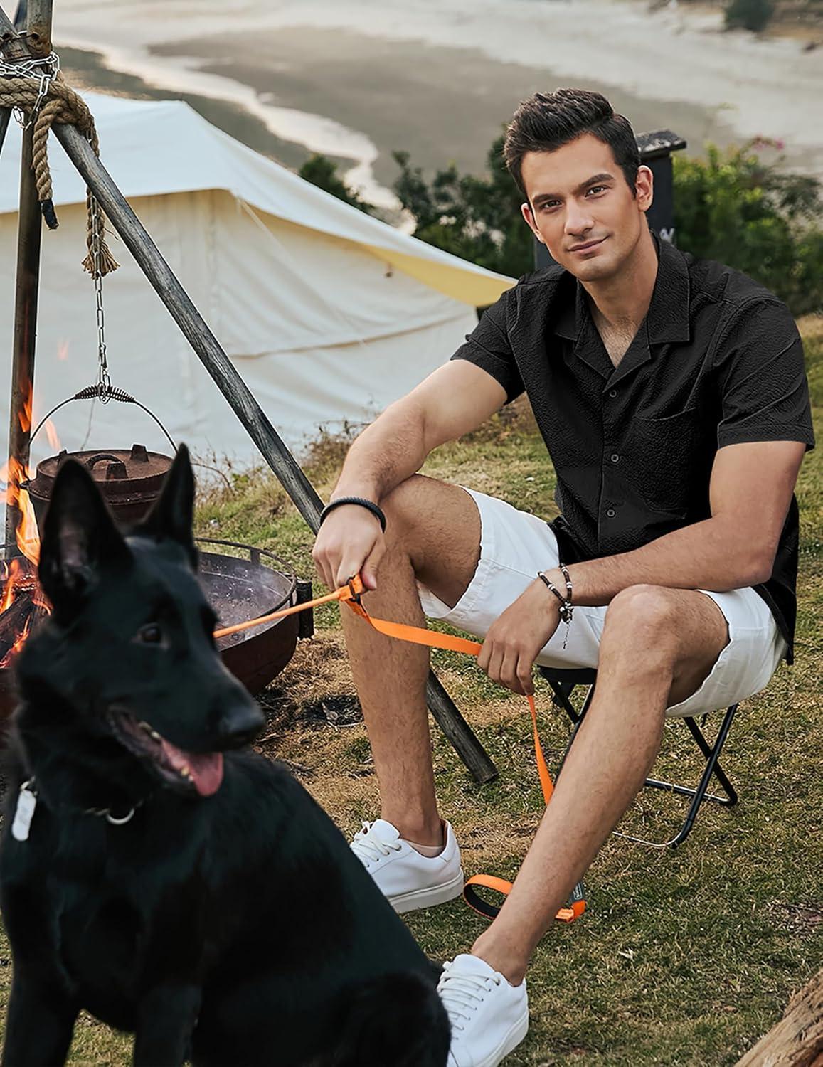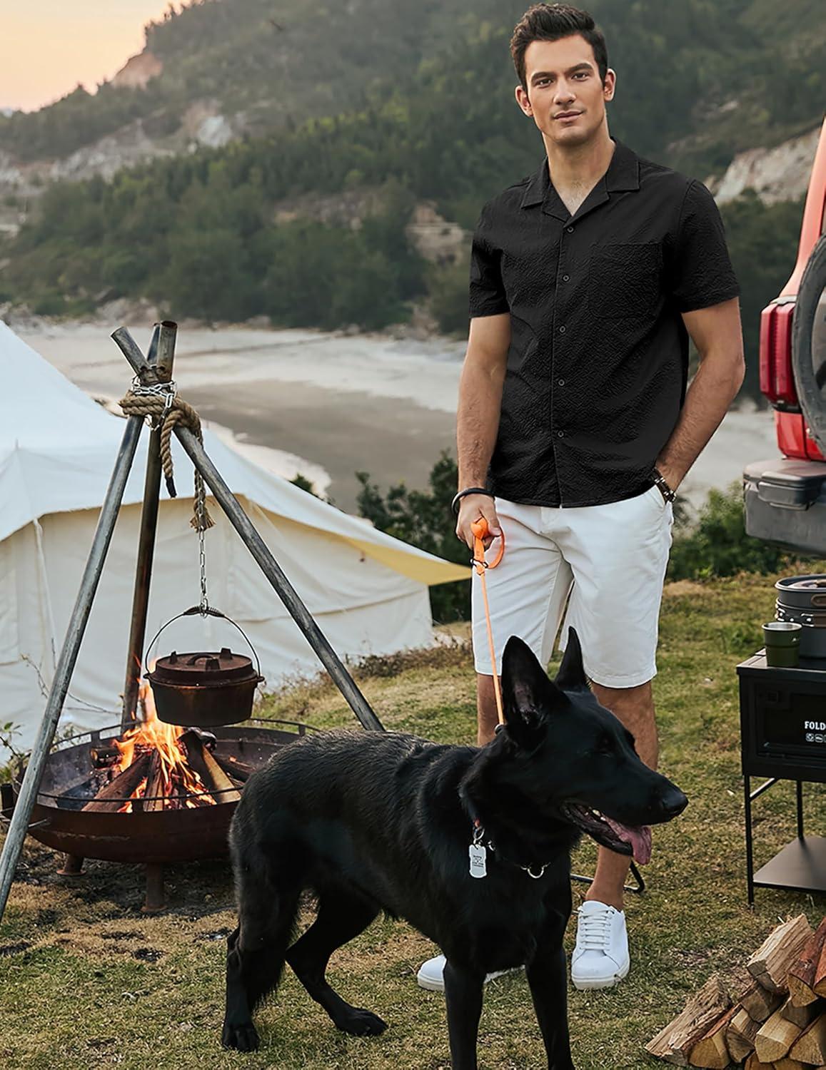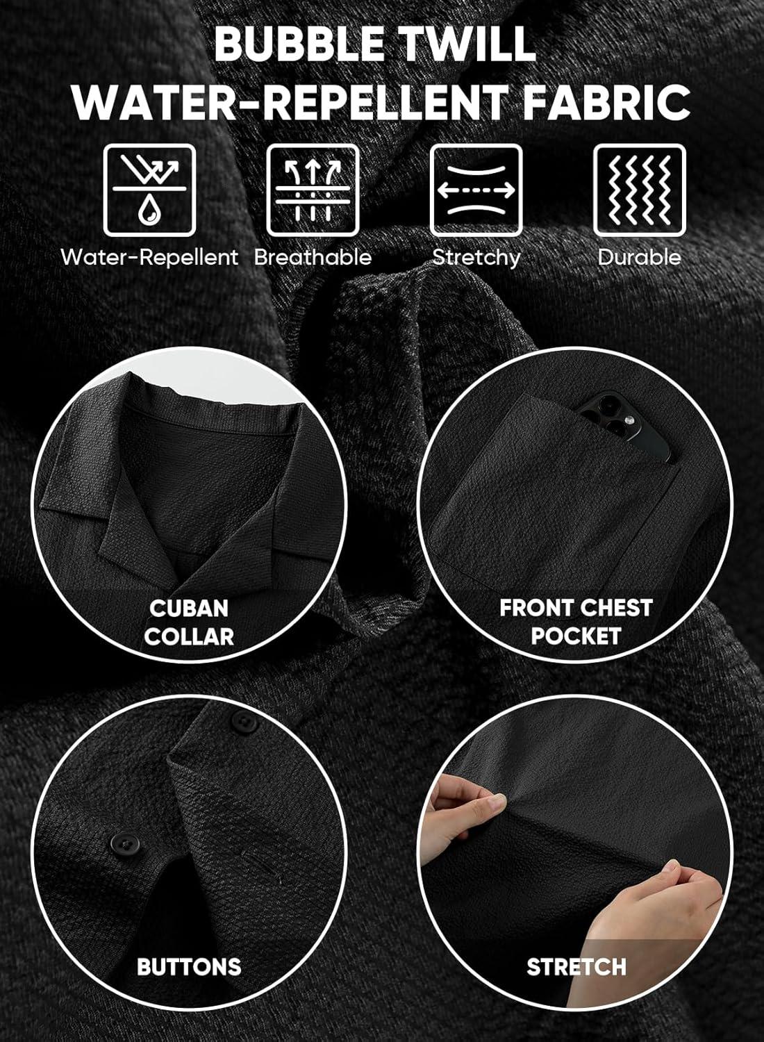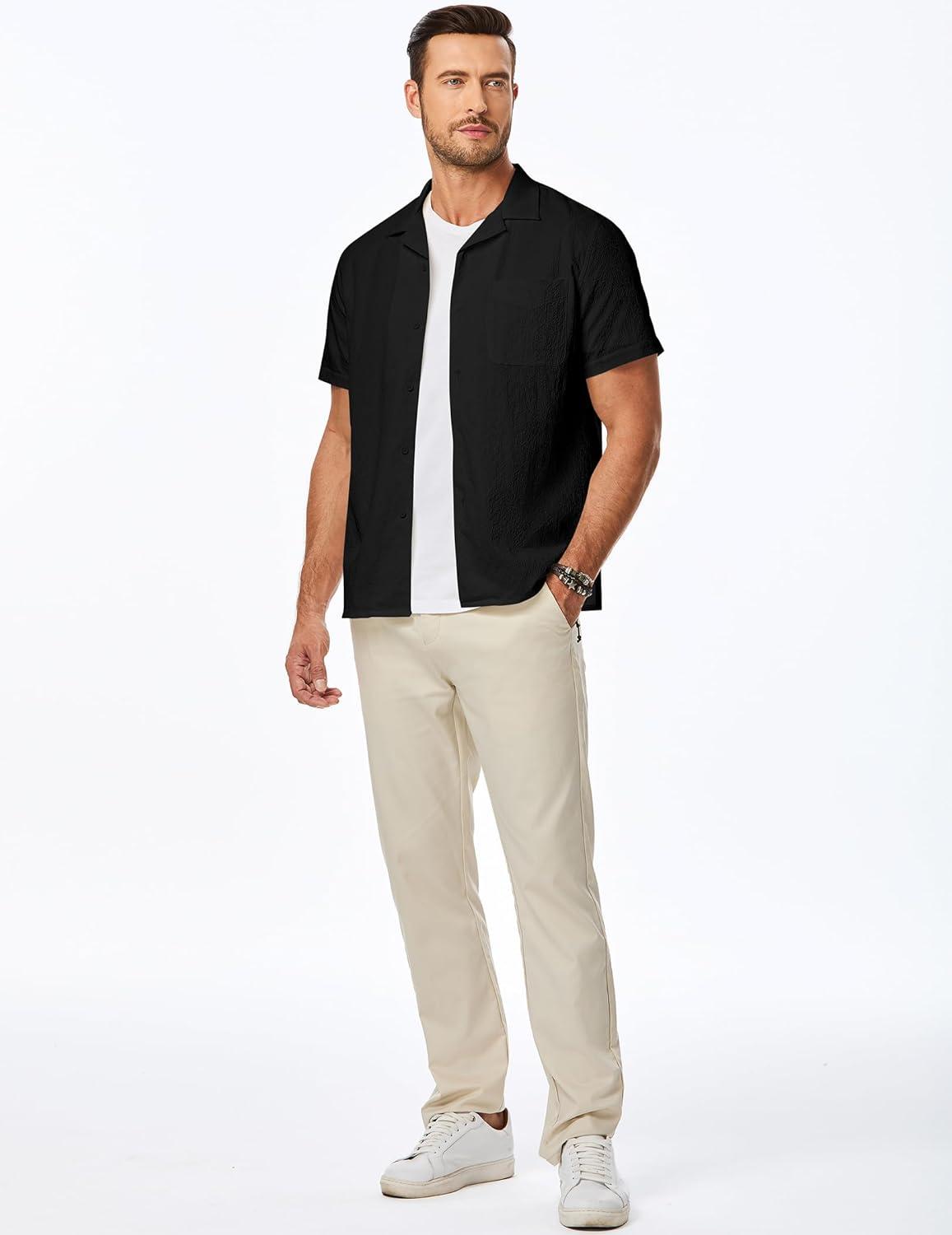 JMIERR Men’s Seersucker Shirts Short Sleeve Casual Shirts Button Down Shirt Beach Summer Vacation Wedding Shirt(Black)