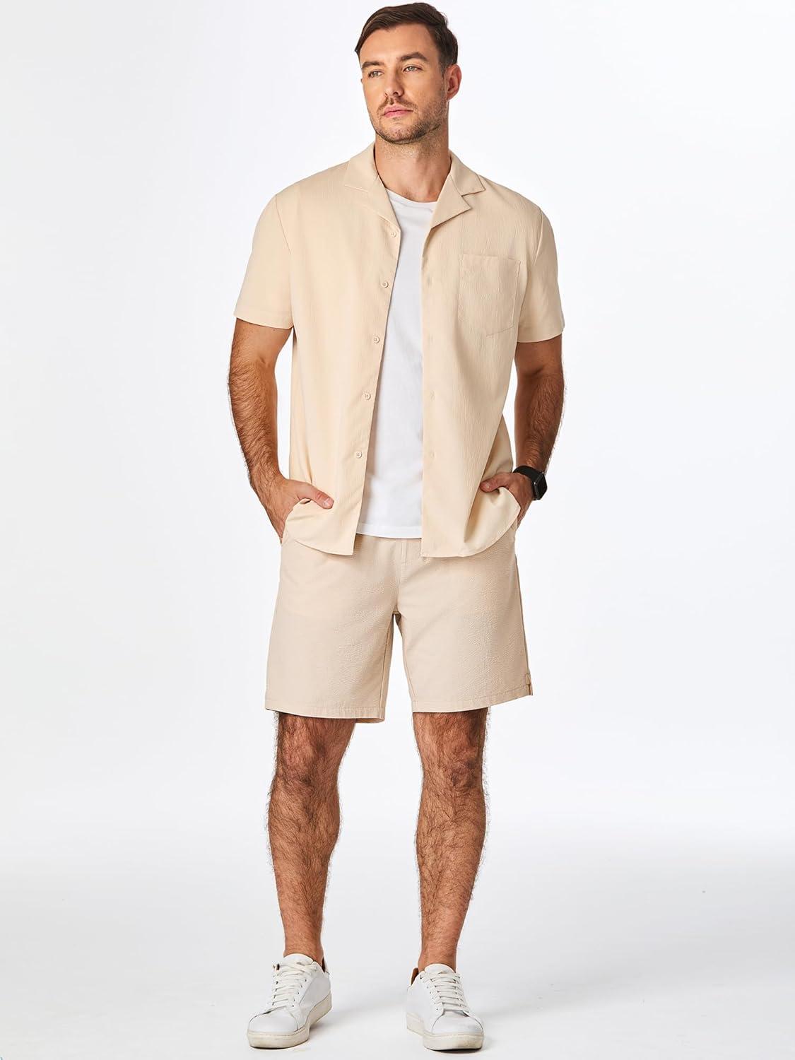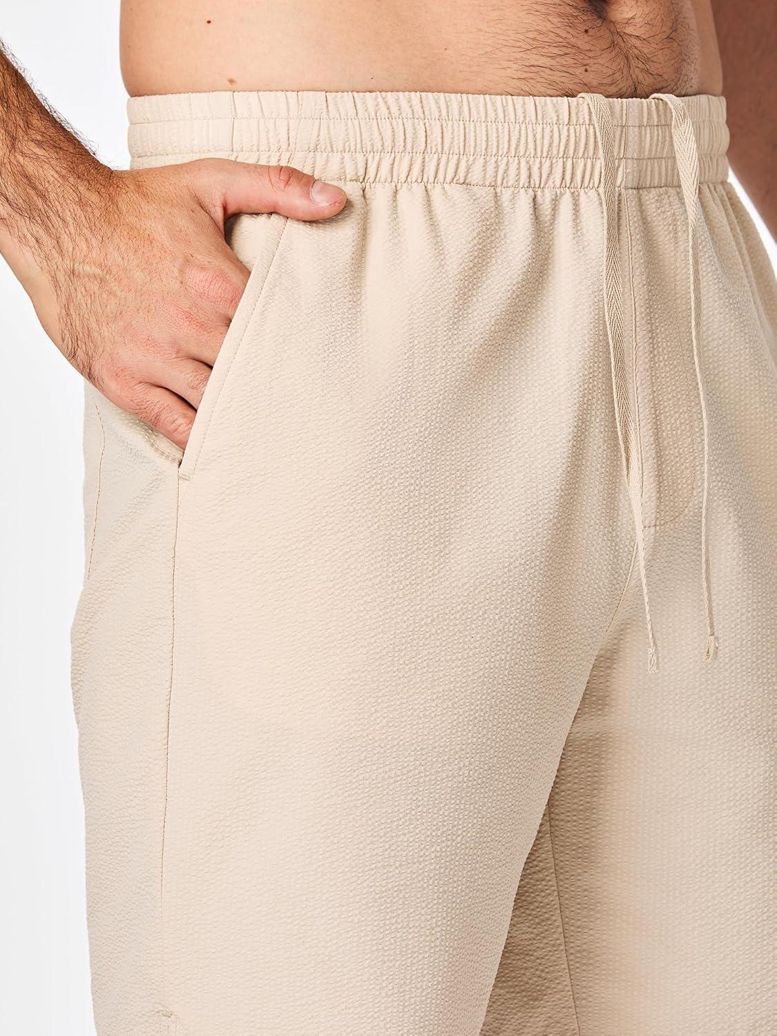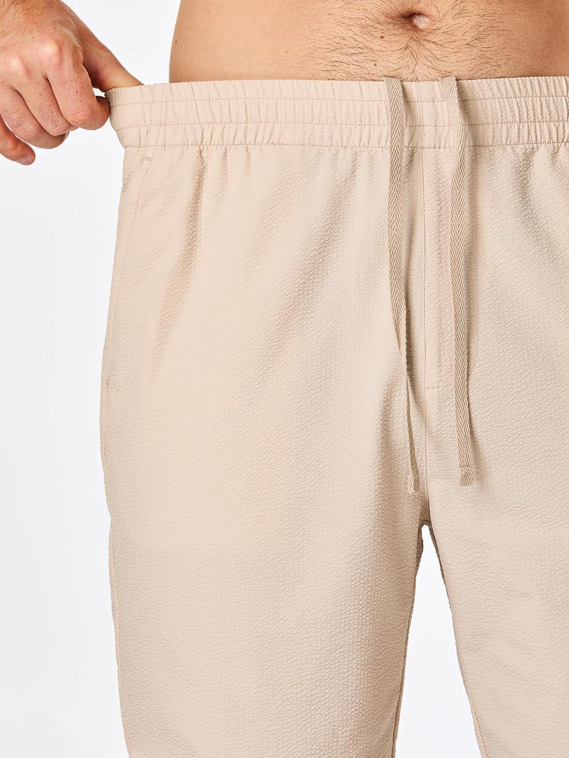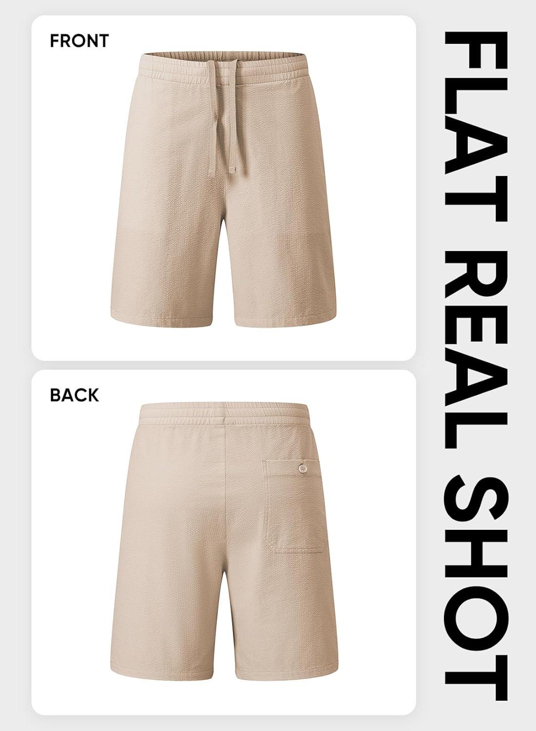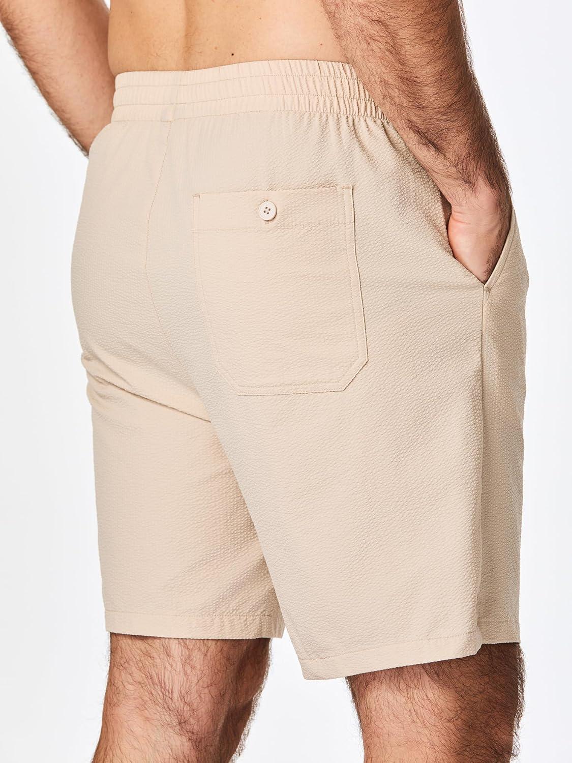 JMIERR Mens Seersucker Shorts Casual Stretch Elastic Waist Drawstring Summer Beach Short 7 inch Inseam with Pockets(Khaki)