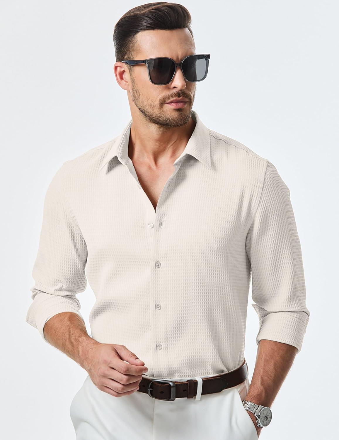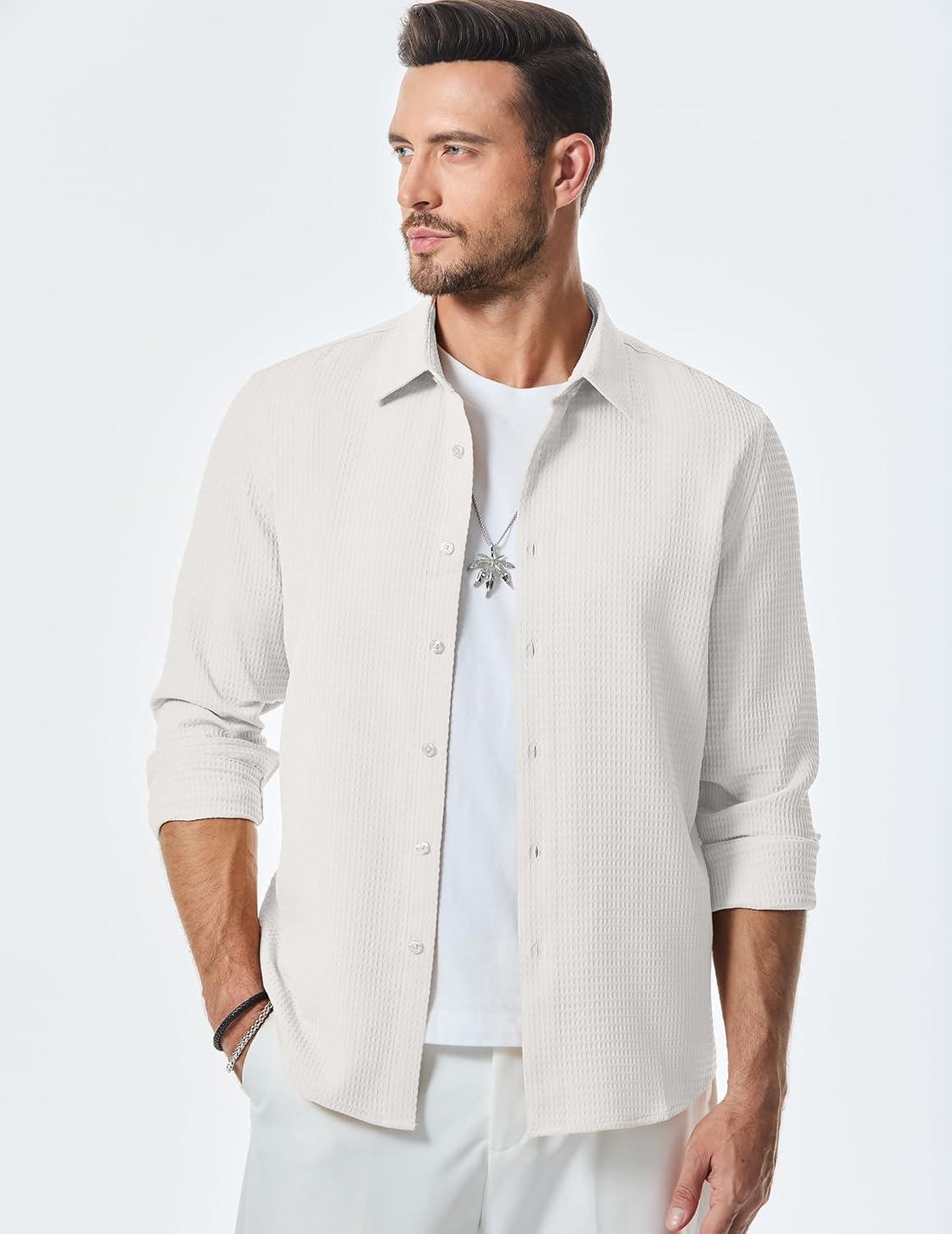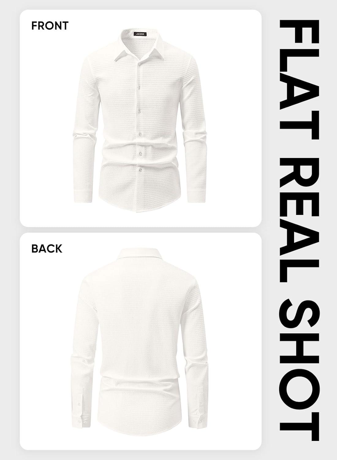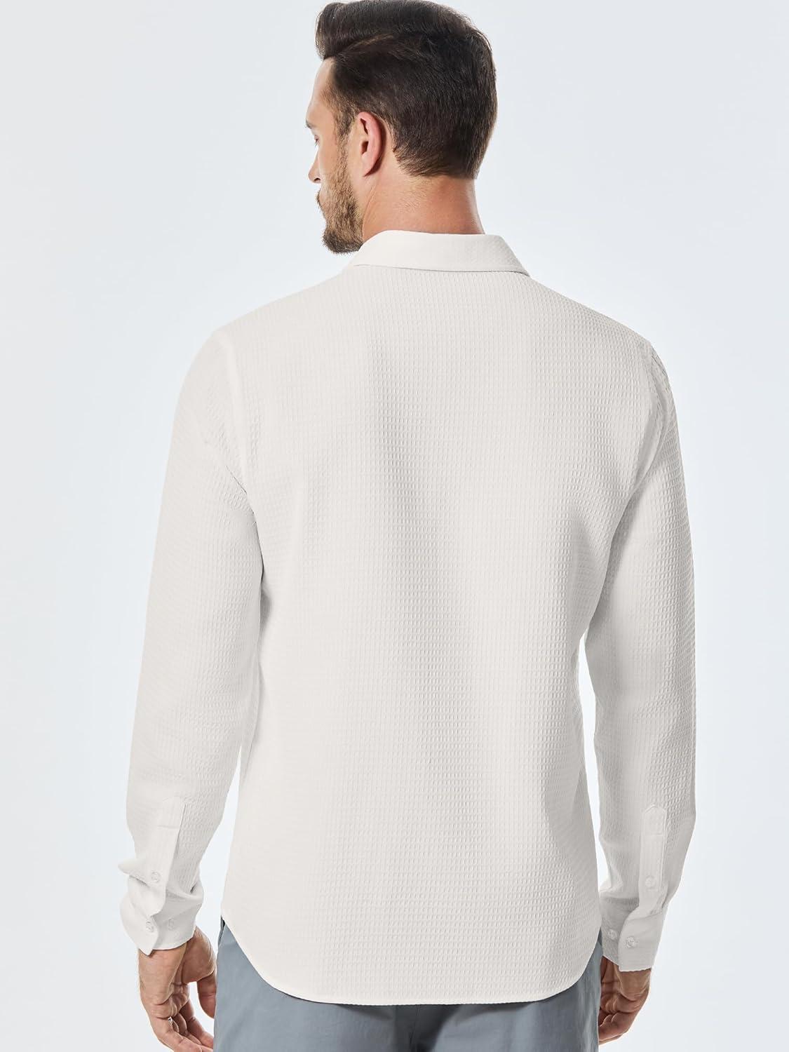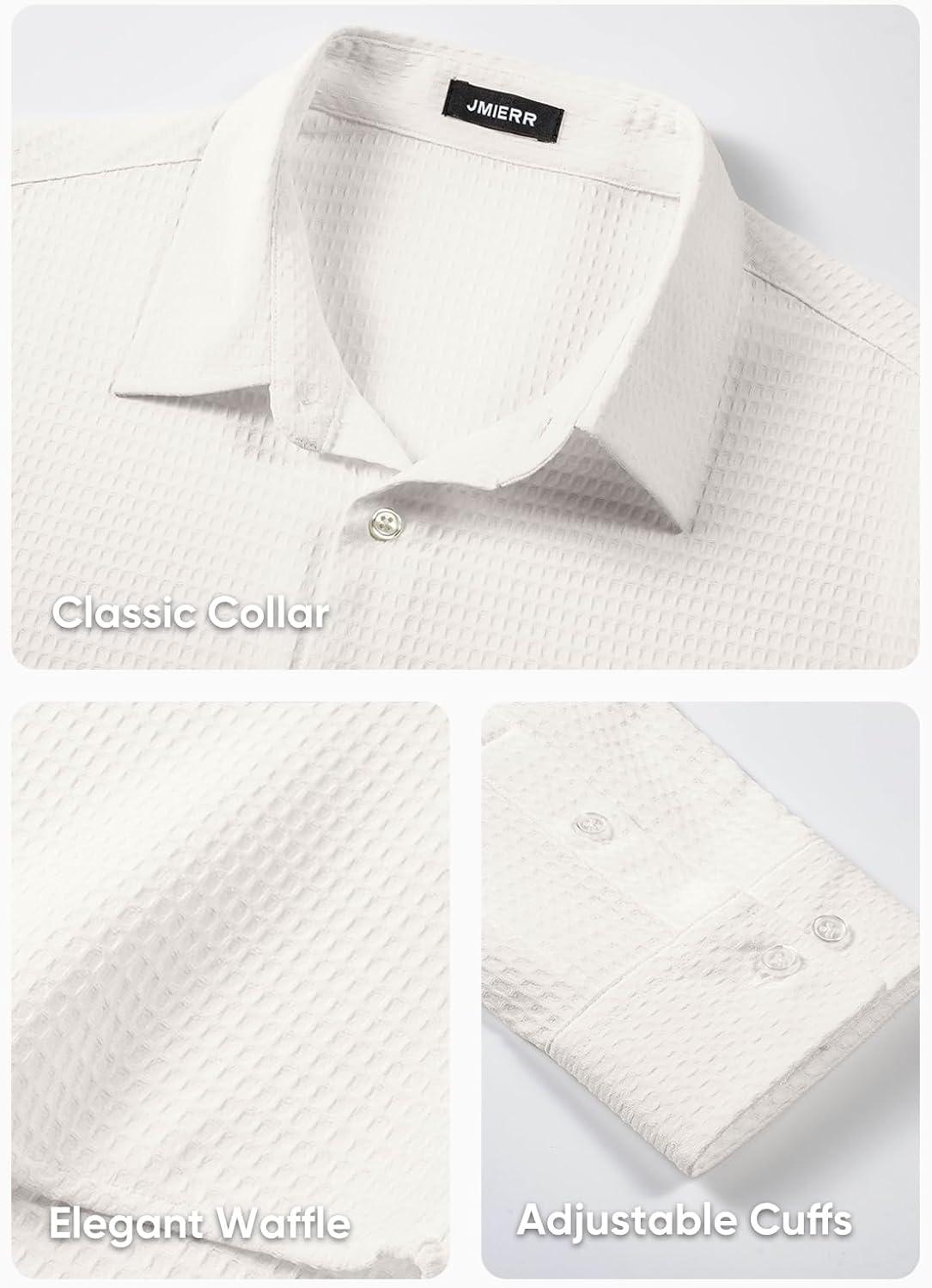 JMIERR Mens Shirt Waffle Button Down Shirts Long Sleeve Casual Work Dress Shirt(0 White)