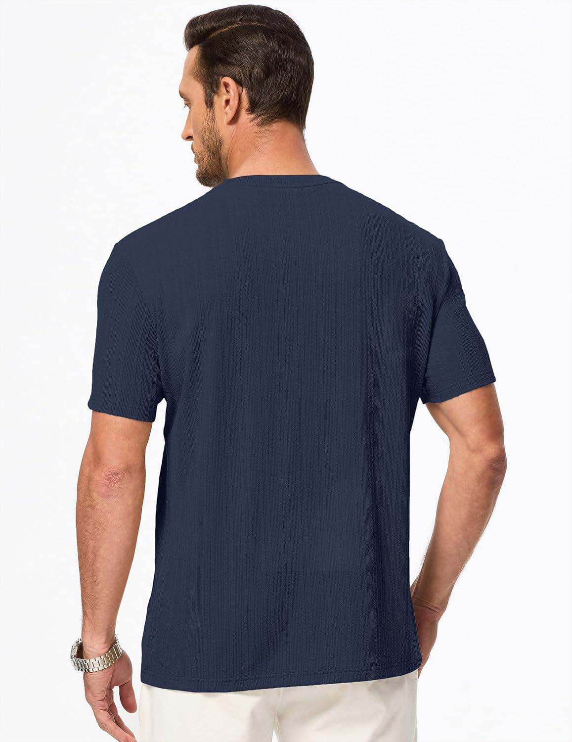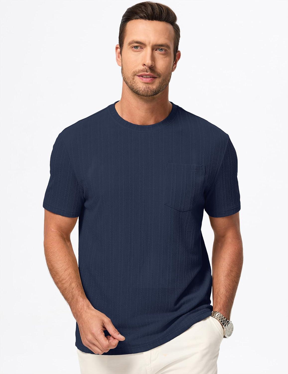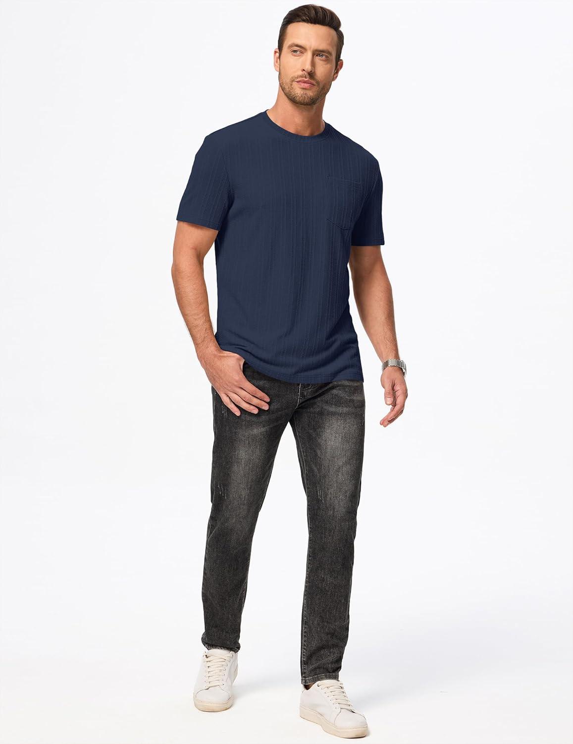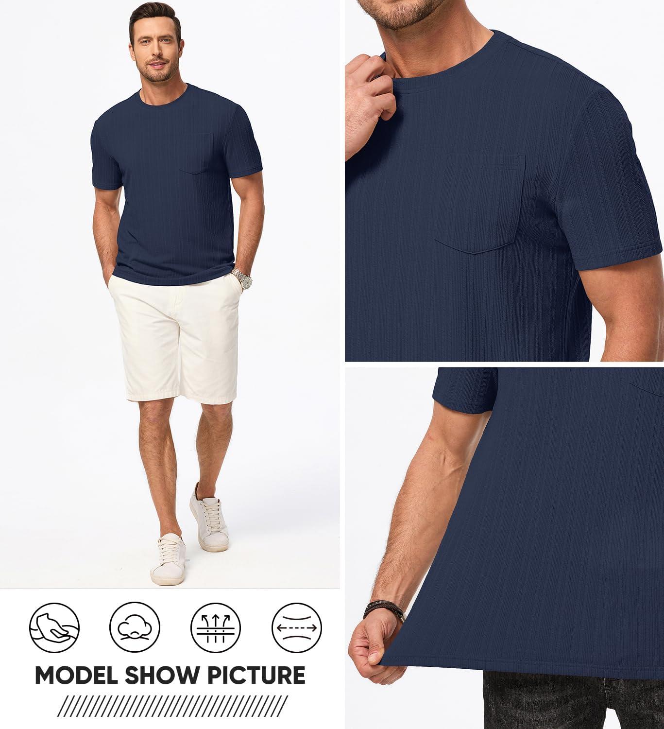 JMIERR Men’s Short Sleeve Shirts Casual Crewneck Pullover T-Shirt Stretch Textured Tee Shirts with Pocket(Blue)