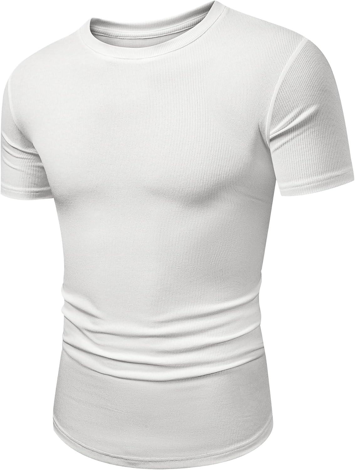 JMIERR Mens Short Sleeve T Shirt Summer Muscle Slim Fitted Crewneck Longline Tees Shirts for Gym Workout(1 White)