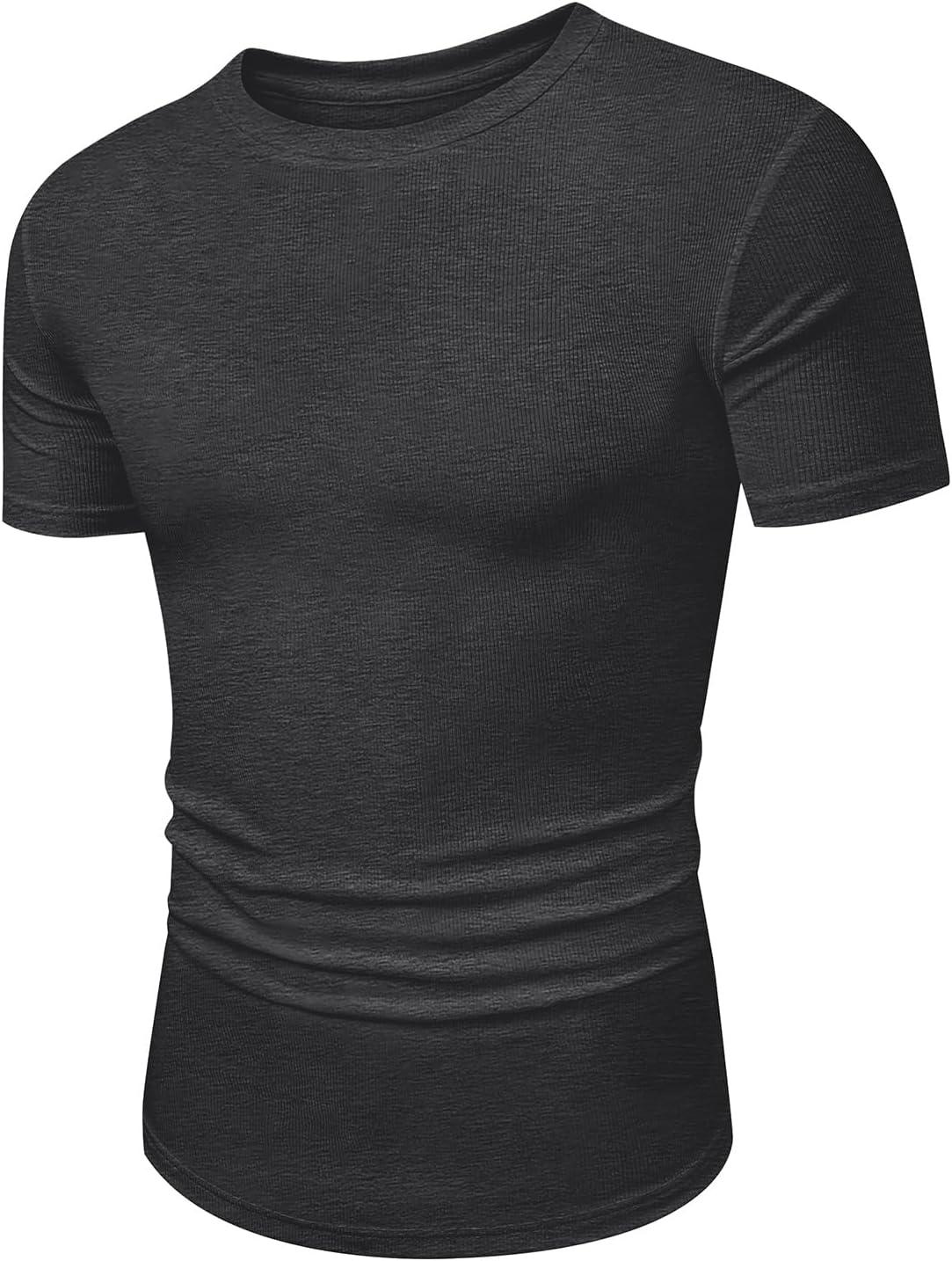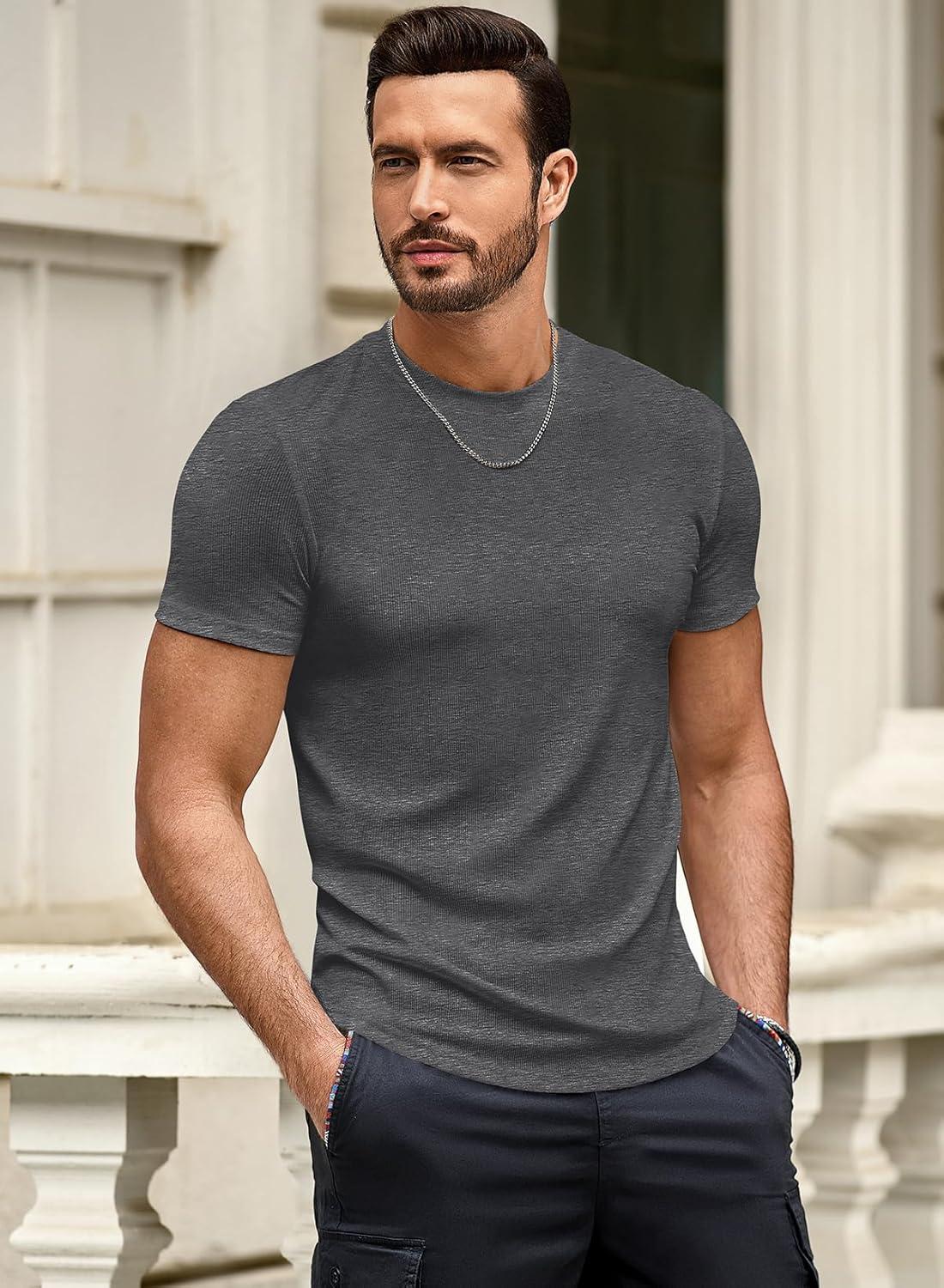 JMIERR Mens Short Sleeve T Shirt Summer Muscle Slim Fitted Crewneck Longline Tees Shirts for Gym Workout(A Dark Grey)