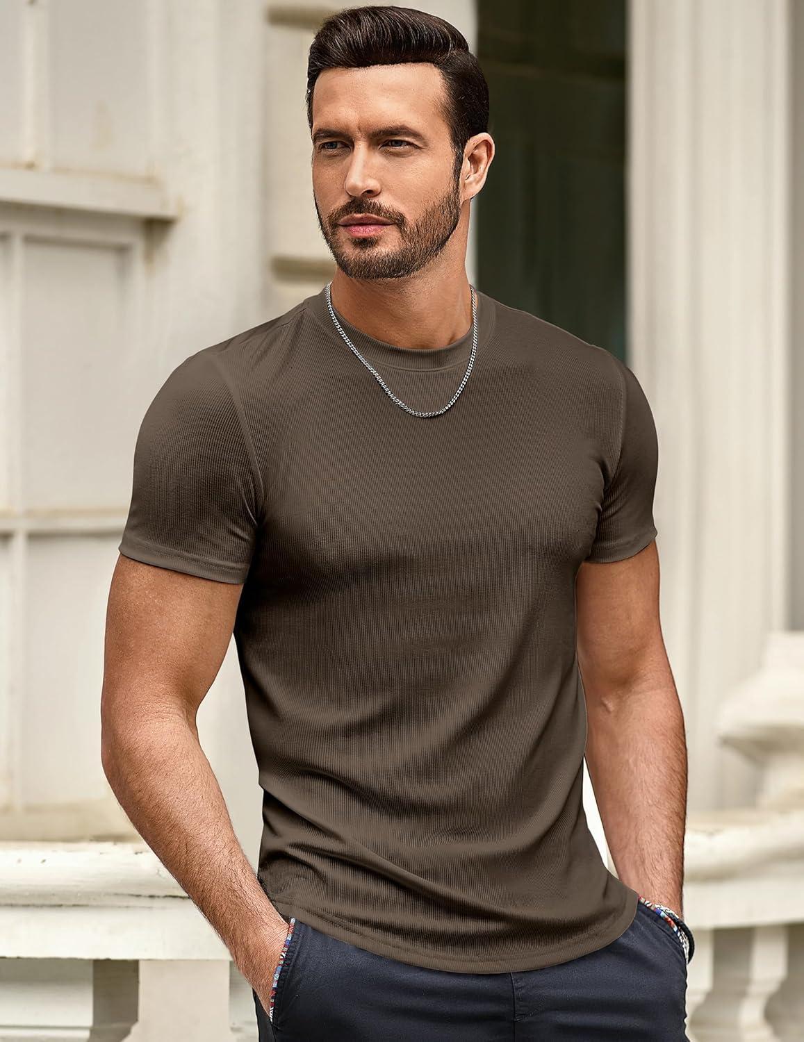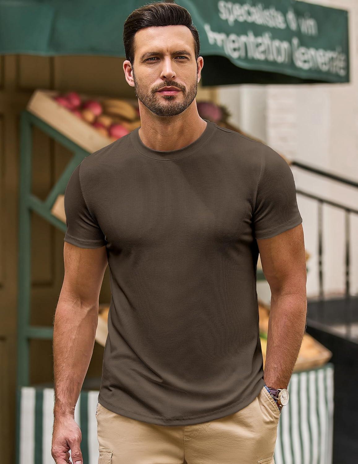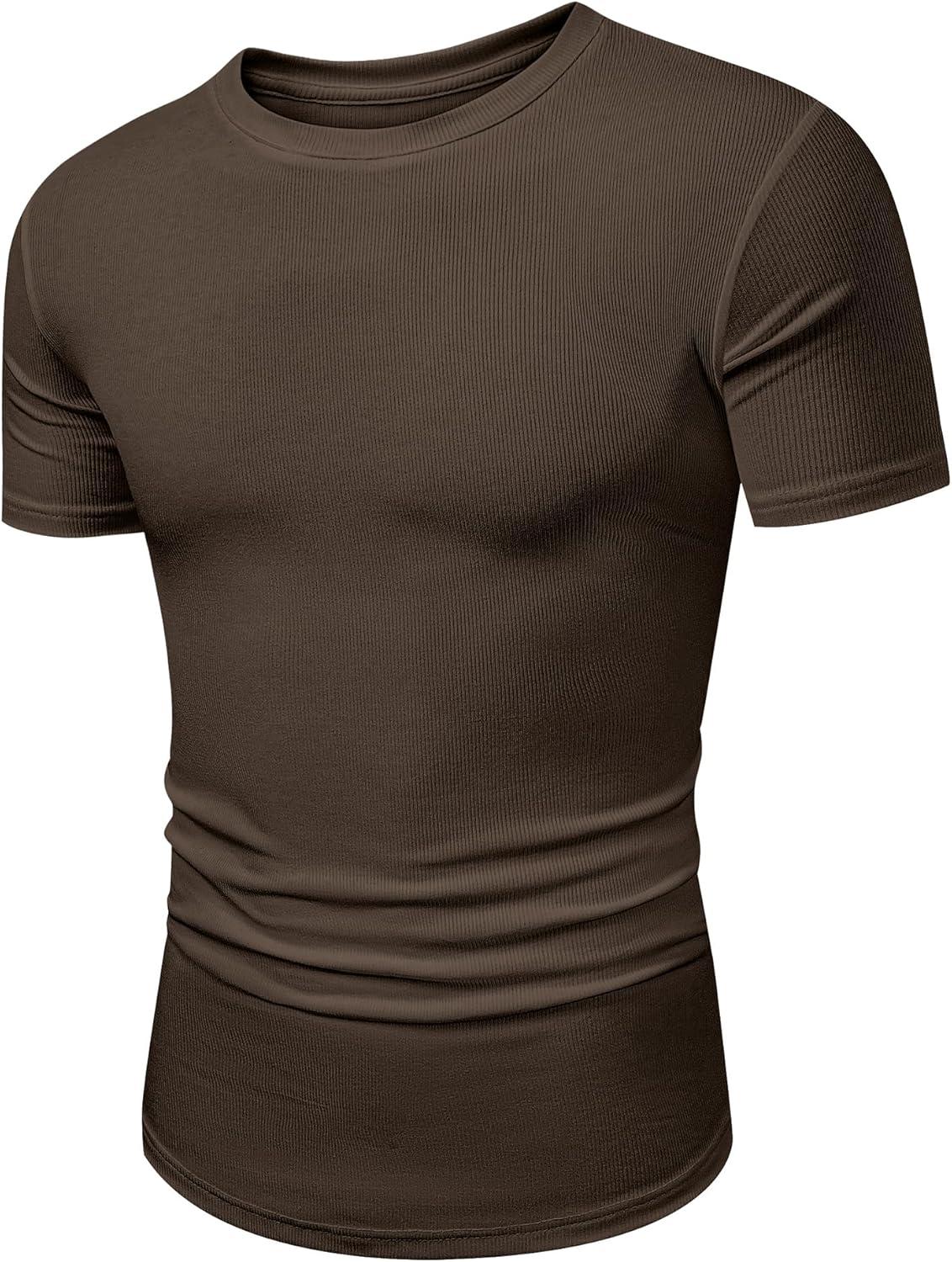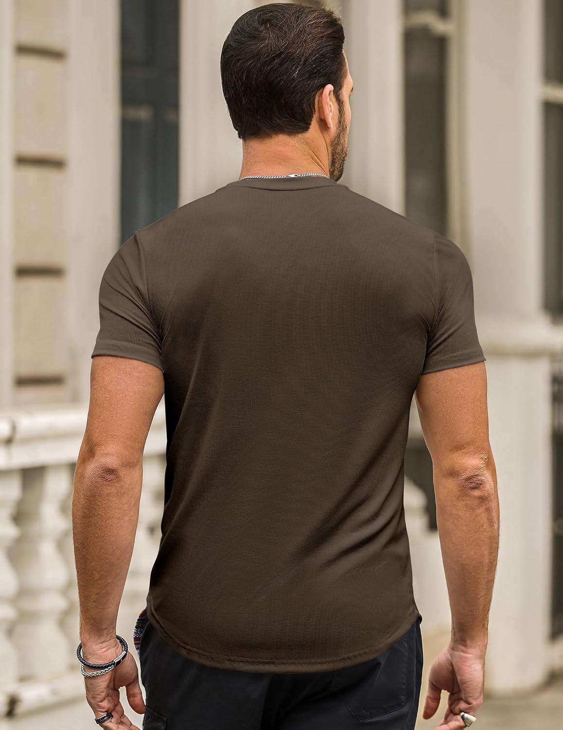 JMIERR Mens Short Sleeve T Shirt Summer Muscle Slim Fitted Crewneck Longline Tees Shirts for Gym Workout(D Dark Brown)