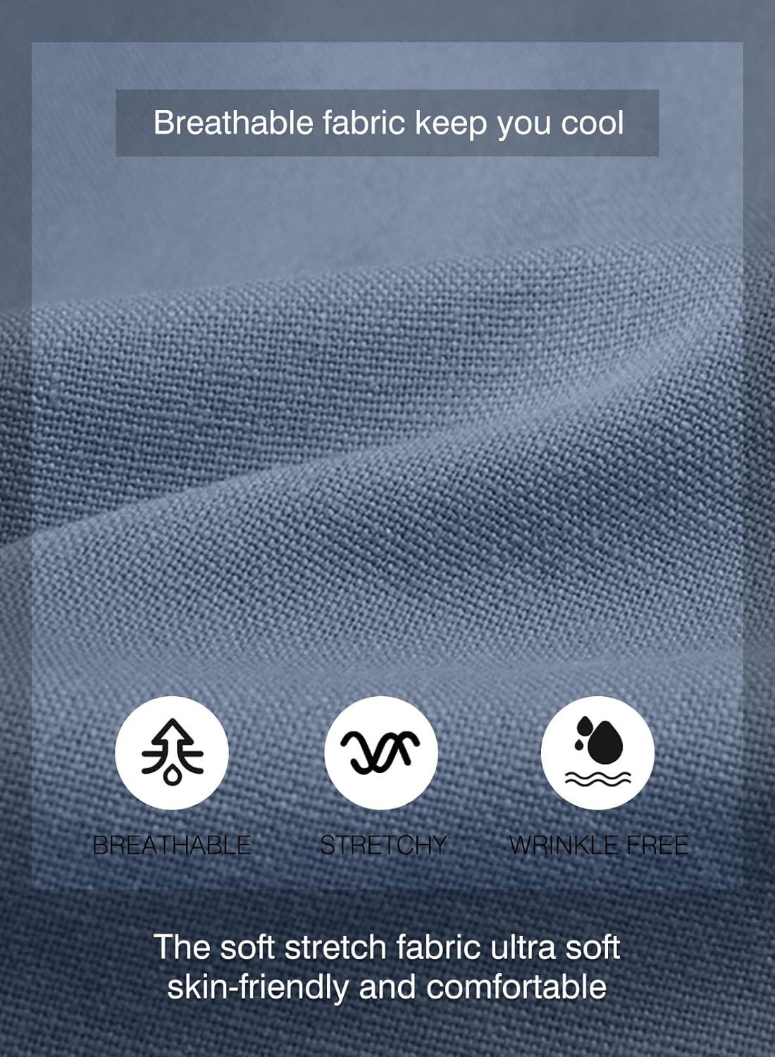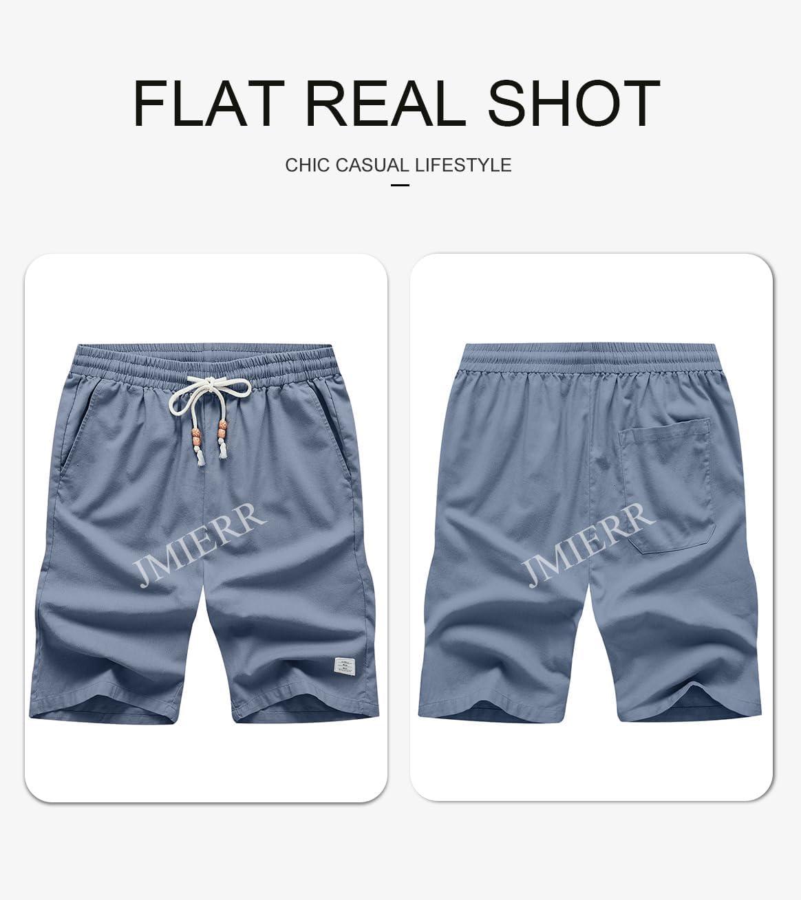 JMIERR Mens Shorts Linen Cotton 7″ Casual Elastic Waist Drawstring Lightweight Summer Beach Shorts with Pockets(Blue)