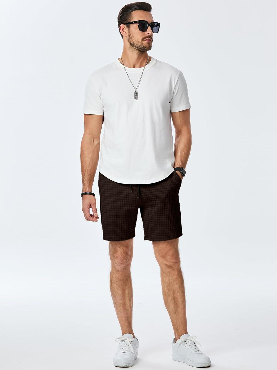 JMIERR Mens Sweat Shorts Casual Stretch Elastic Waist Waffle Workout Gym Short 7 inch Inseam Running Short with Pocket(Chicory Coffee)
