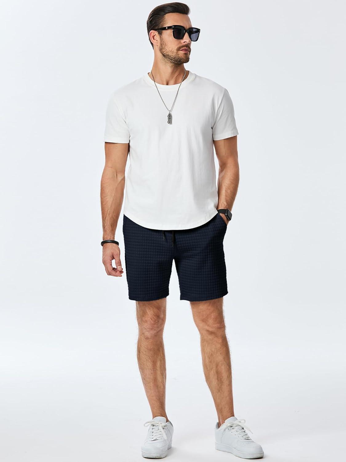 JMIERR Mens Sweat Shorts Casual Stretch Elastic Waist Waffle Workout Gym Short 7 inch Inseam Running Short with Pocket(Navy Blue)