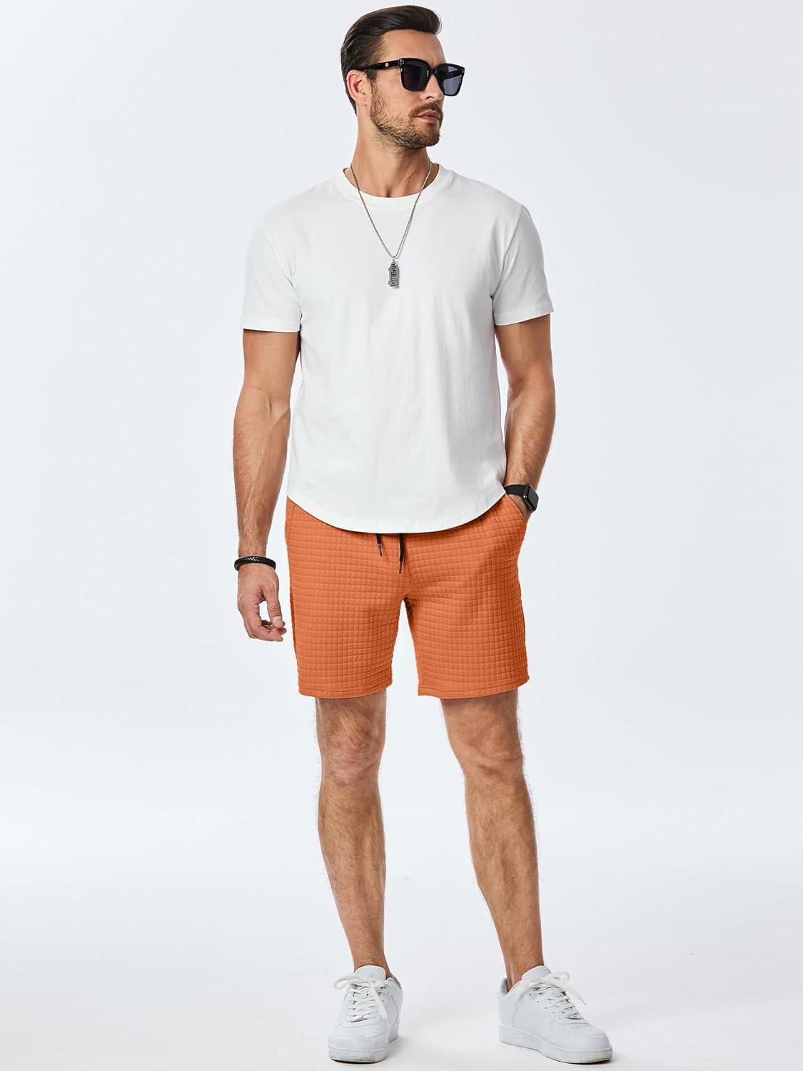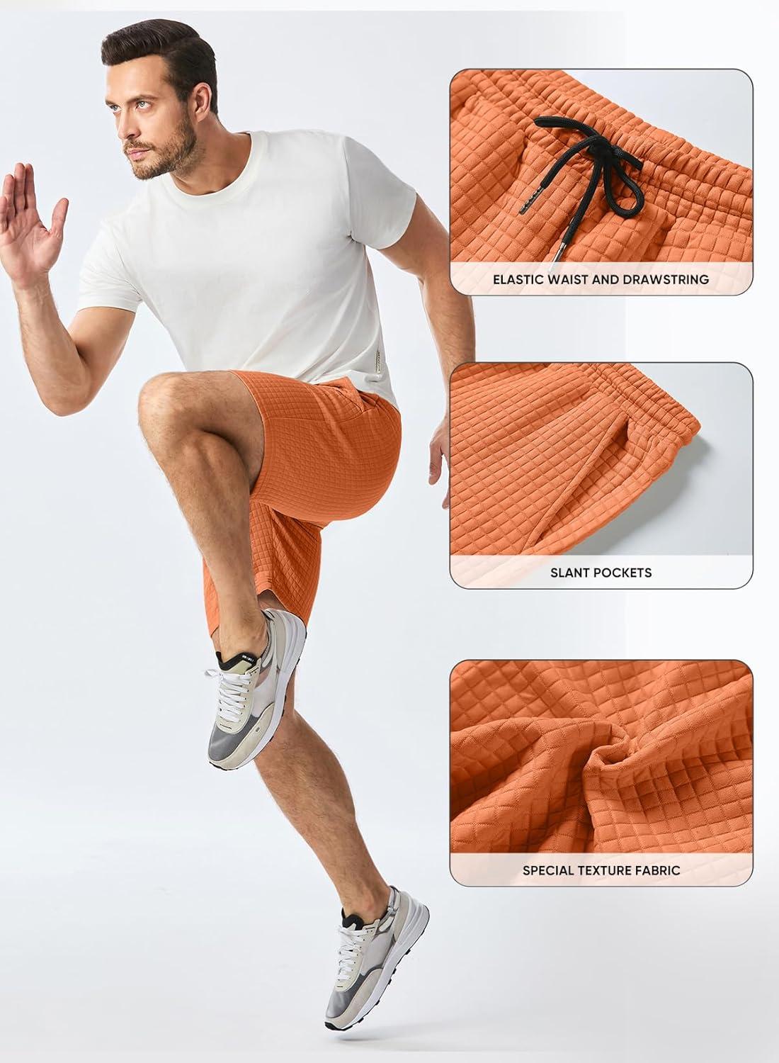 JMIERR Mens Sweat Shorts Casual Stretch Elastic Waist Waffle Workout Gym Short 7 inch Inseam Running Short with Pocket(Orange)