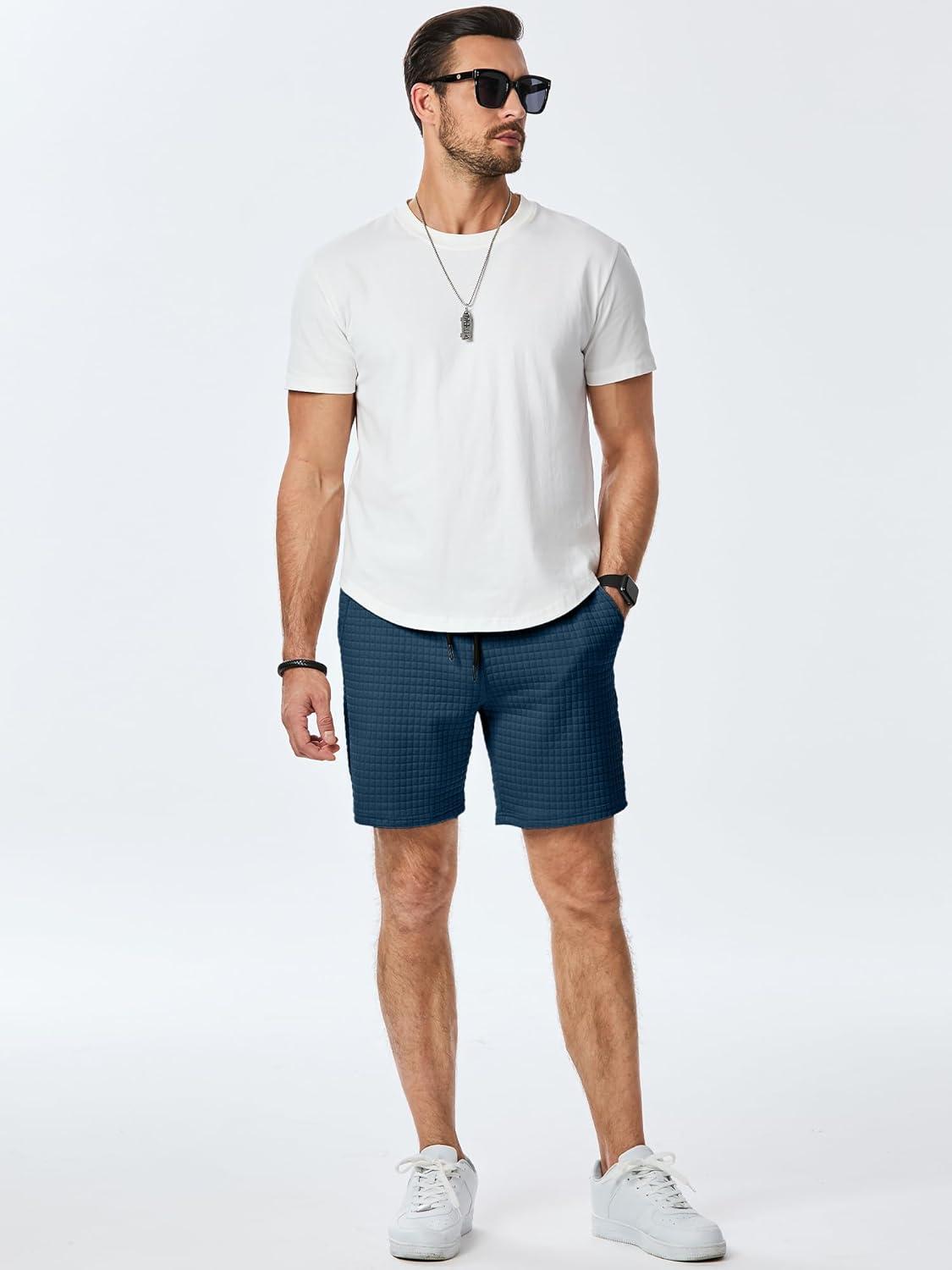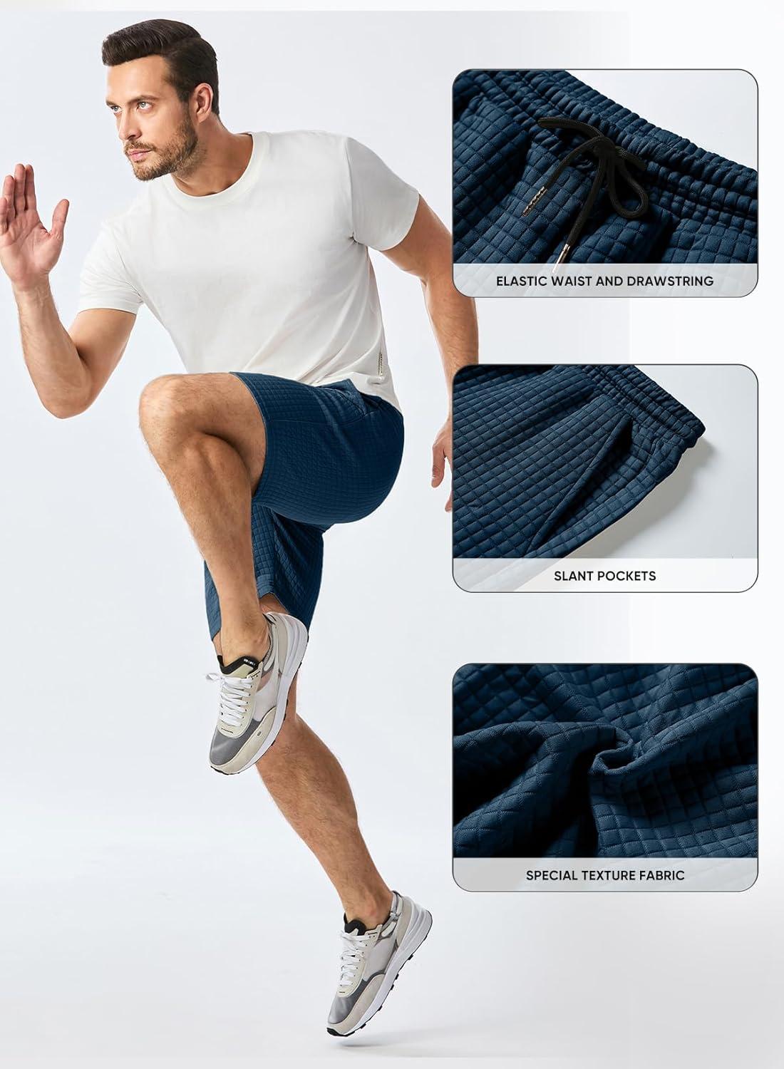 JMIERR Mens Sweat Shorts Casual Stretch Elastic Waist Waffle Workout Gym Short 7 inch Inseam Running Short with Pocket(Sail Blue)