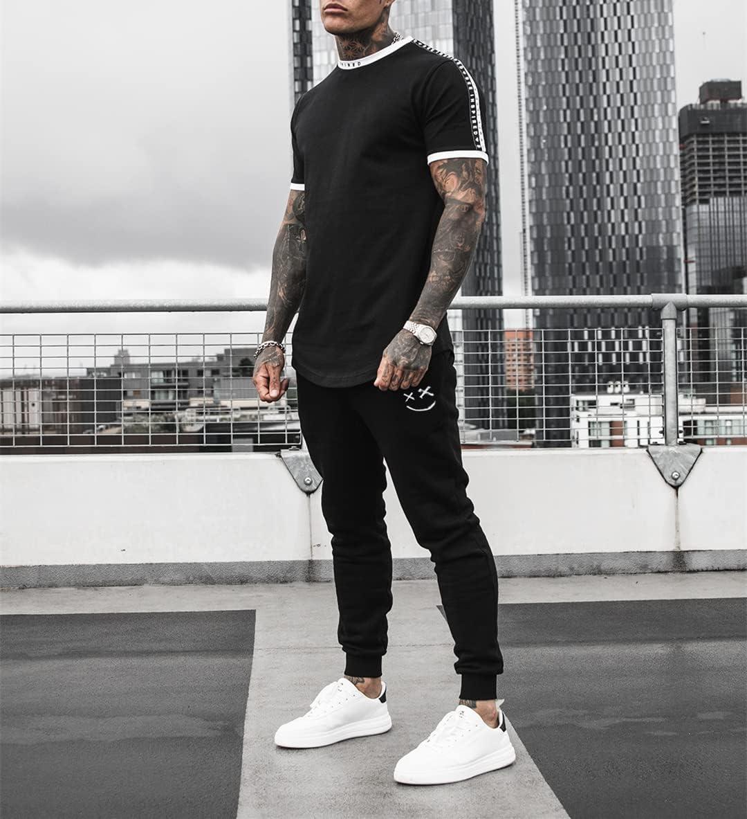 JMIERR Mens Sweatpants Tapered Gym Running Workout Pants Athletic Drawstring Joggers with Pockets(A Black)